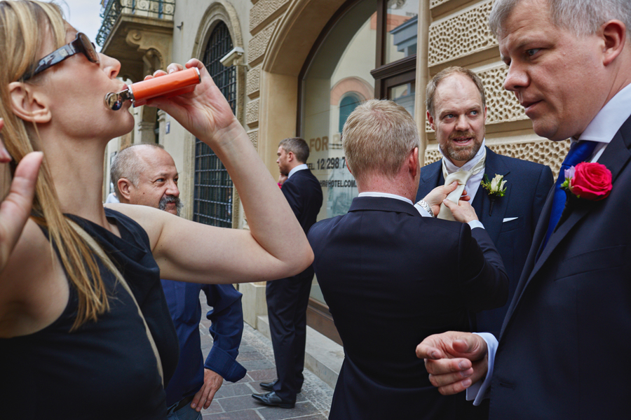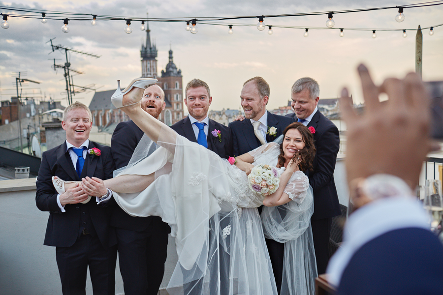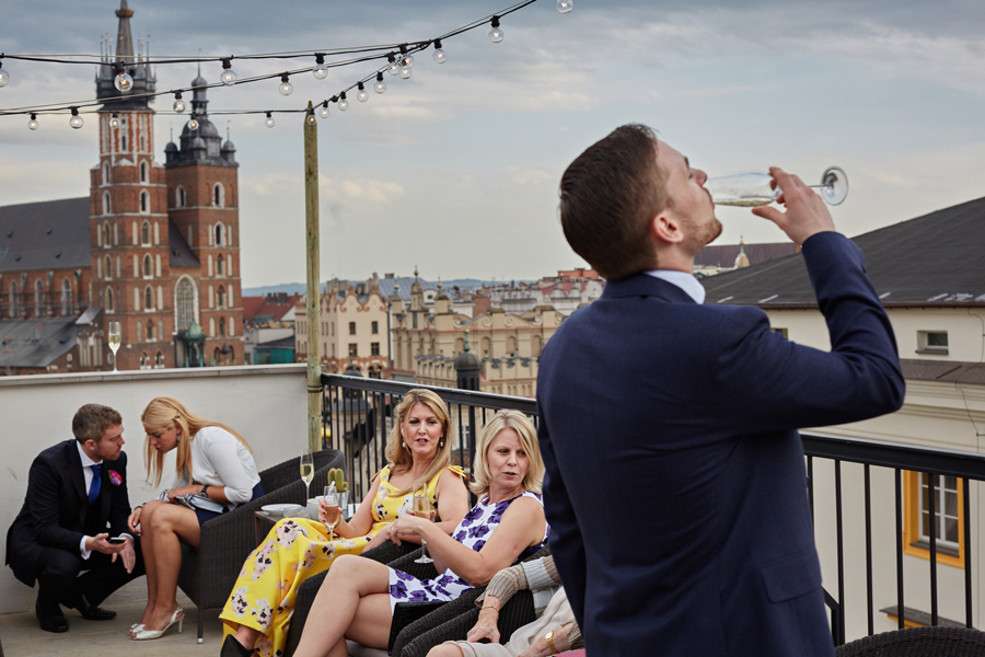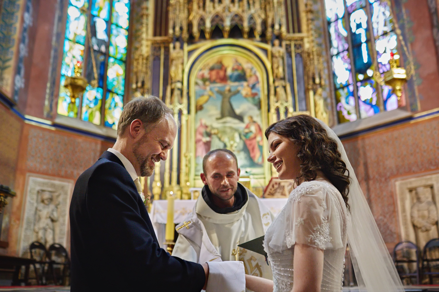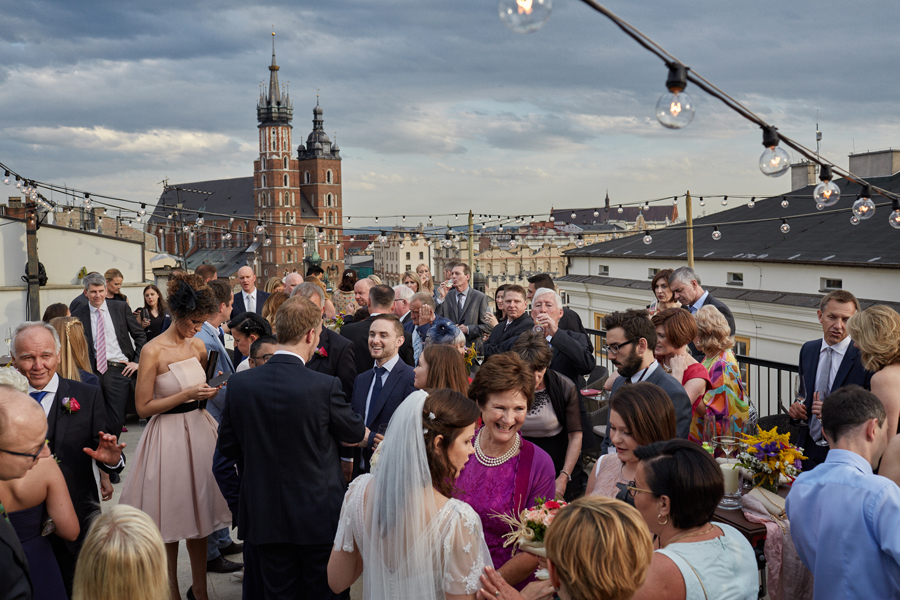 Zapraszamy na dużą dawkę pozytywnej energii, której dostarczyli Ada, Peter i ich goście. Fotografia ślubna obejmuje ceremonię która miała miejsce w Kościele oo. Franciszkanów. Uświetniła ją orkiestra zorganizowana przez Przemysława Firka. Przygotowania pary młodej, bankiet z widokiem na krakowską starówkę i przyjęcie weselne odbyły się w Hotelu Starym. Organizacją zajęły się niezastąpione Katarzyna Bugaj i Kinga Nowakowska z Raz w życiu. Przepiękne kwiatowe i owocowe dekoracje przygotowała Ewa Klimek.