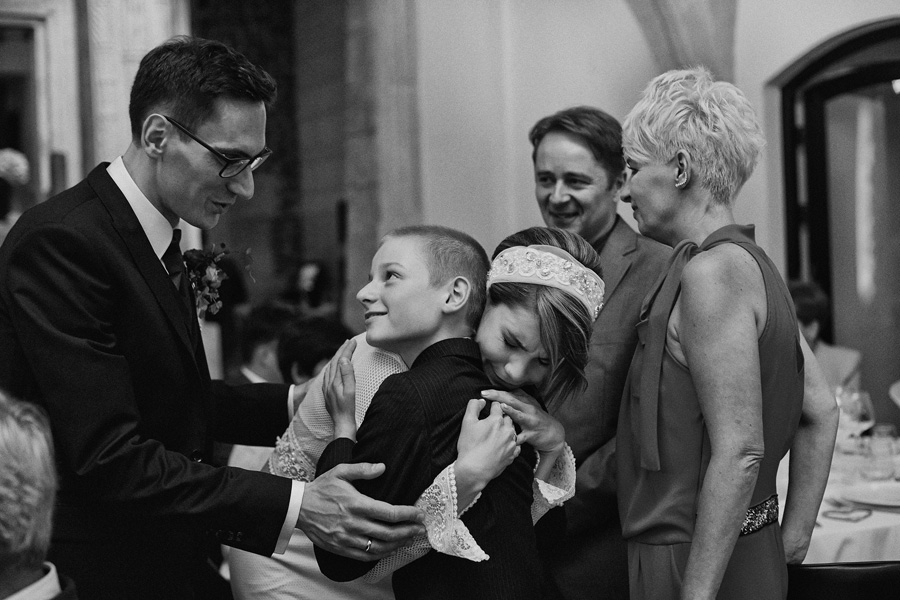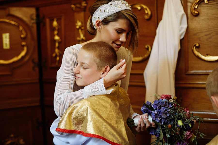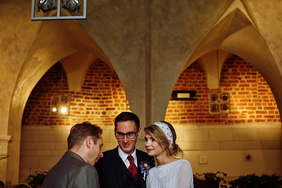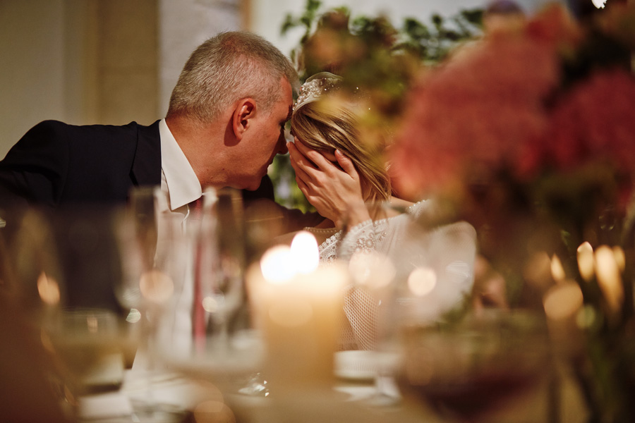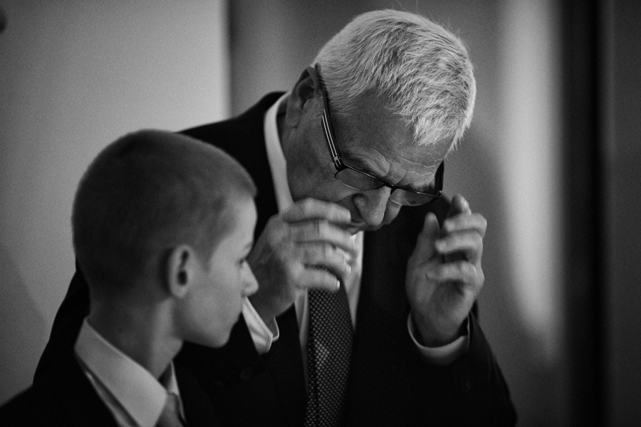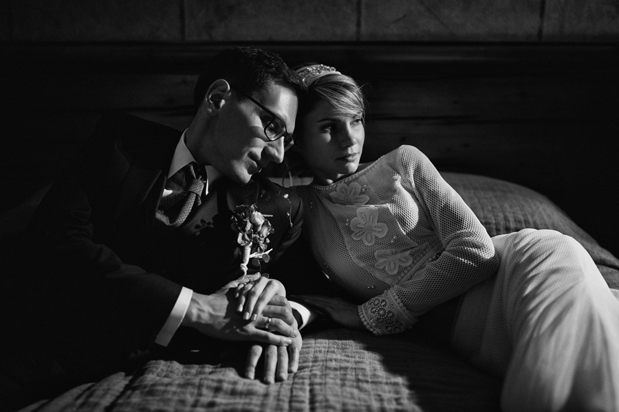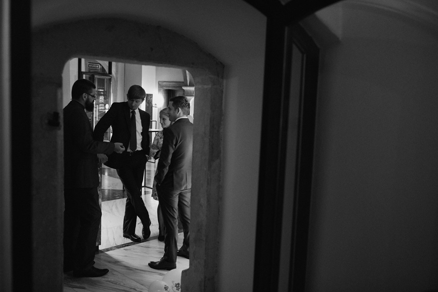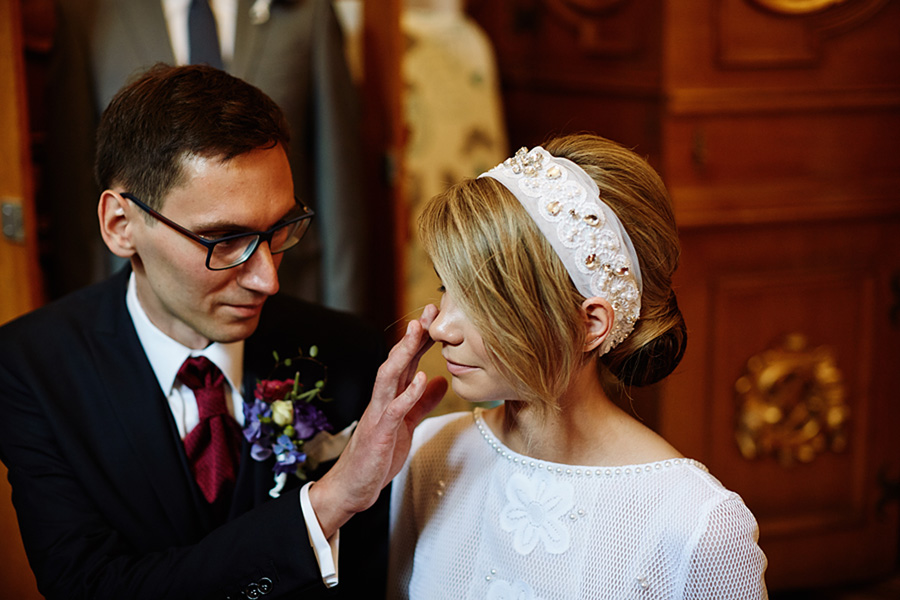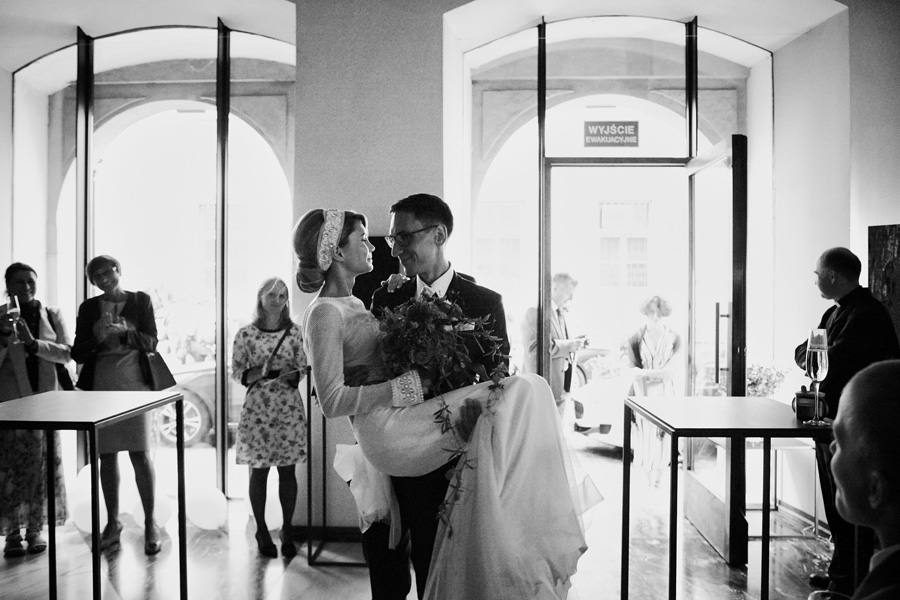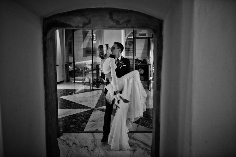 Ania jest absolutnie zjawiskowa. Niezwykle drobna, eteryczna blondynka – swoją stylizację ślubną opracowała sama. Nie ma w niej przepychu ani ekstrawagancji, ale muszę przyznać jest jedną z najpiękniejszych, jakie widziałam. Maciek jest tak w Ani zakochany, że widać to w każdym spojrzeniu i geście. A poza tym jest czystym dobrem. W Hotelu Starym było dużo łez, dużo uścisków, dużo przytulania. Nie było części tanecznej, więc mieliśmy więcej czasu, by porwać Anię i Maćka do ich apartamentu na kilka zdjęć, gdyż wcześniej niestety pogoda uniemożliwiła nam zdjęcia w plenerze. Część taneczna, weselna – przewidziana była dopiero na następny dzień, ale to już zupełnie historia. Dzień ślubu utrzymany w klasycznym stylu, tymczasem wesele w stylu rustykalnym, w prawdziwej wiejskiej posiadłości (która jest własnością rodziców Maćka). Modliliśmy się o pogodę, no i dostaliśmy – strugi deszczu, błoto, ziąb i naprawdę gorącą imprezę, nie mogło po prostu być inaczej. Relacja z niej zagości na naszym blogu, ale w postaci zupełnie osobnego wpisu, bo to, jak pisałam, inna historia, choć ta sama.