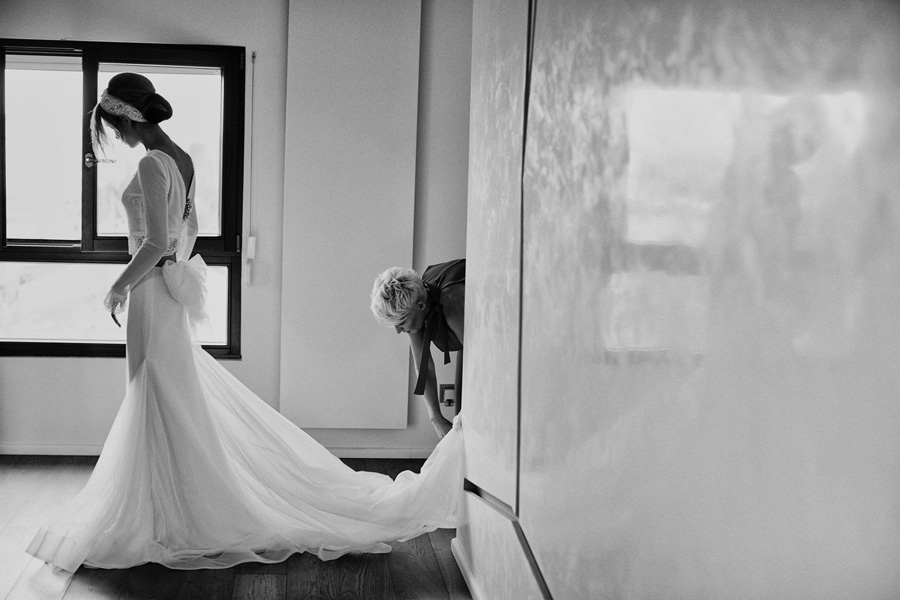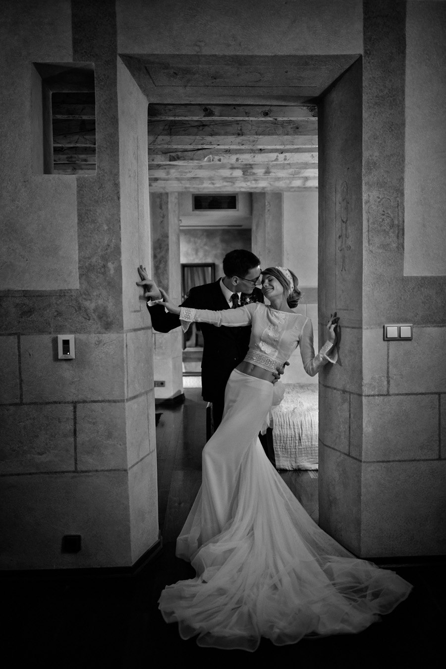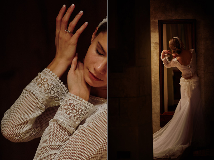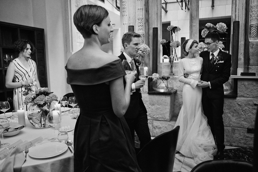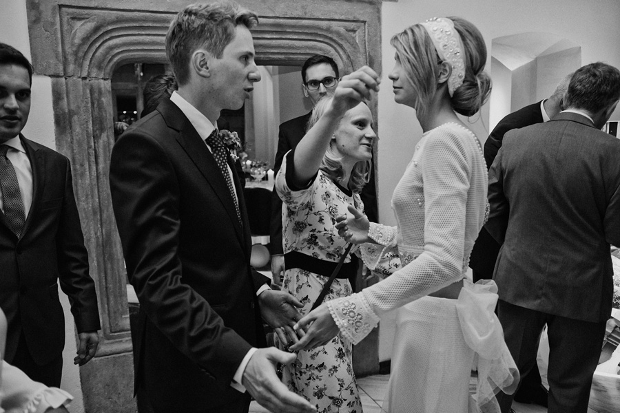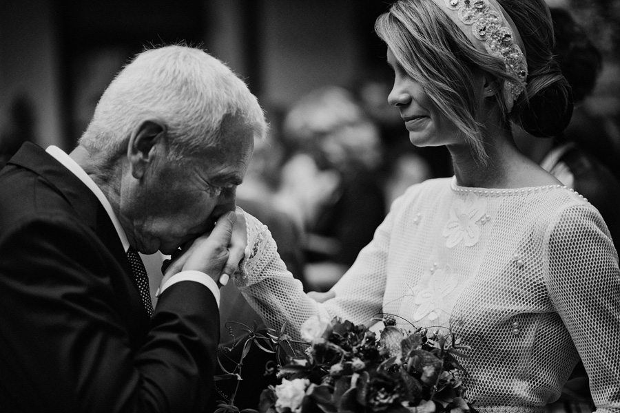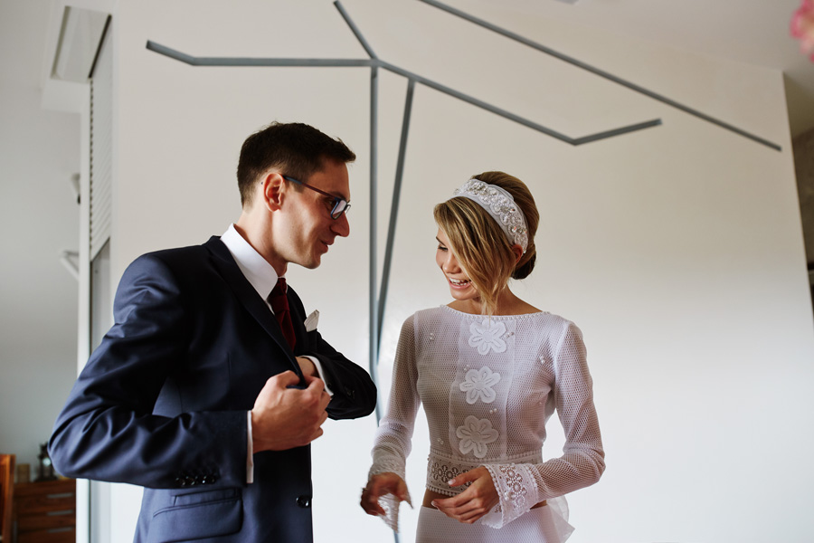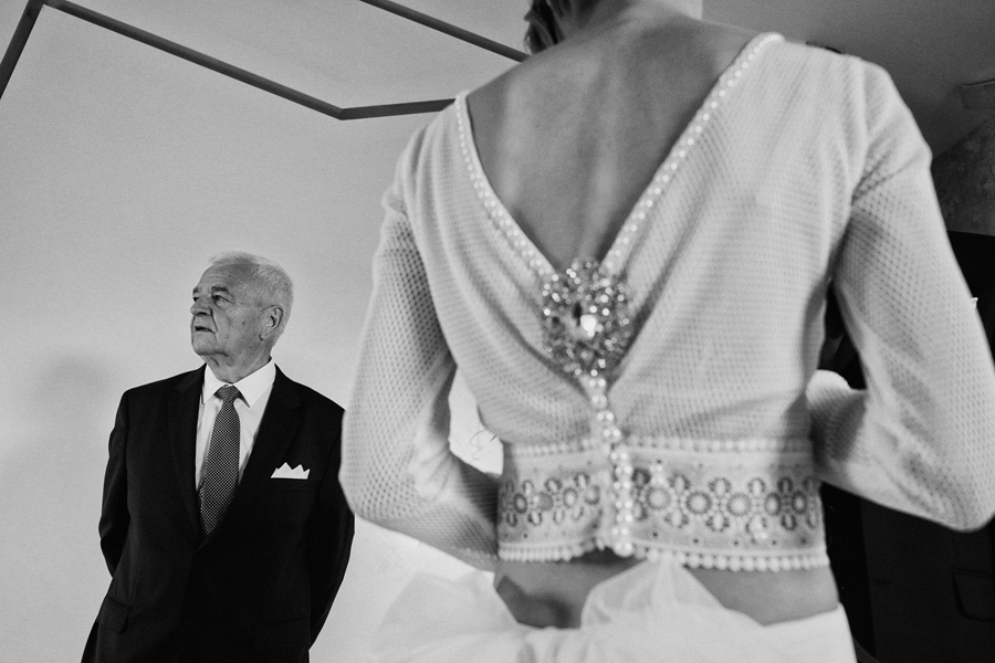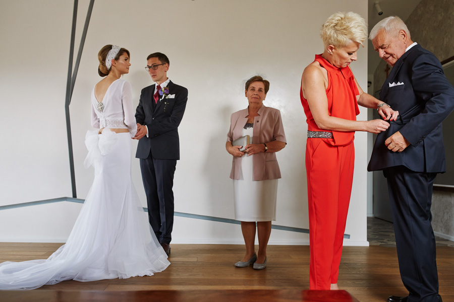 Ania jest absolutnie zjawiskowa. Niezwykle drobna, eteryczna blondynka – swoją stylizację ślubną opracowała sama. Nie ma w niej przepychu ani ekstrawagancji, ale muszę przyznać jest jedną z najpiękniejszych, jakie widziałam. Maciek jest tak w Ani zakochany, że widać to w każdym spojrzeniu i geście. A poza tym jest czystym dobrem. W Hotelu Starym było dużo łez, dużo uścisków, dużo przytulania. Nie było części tanecznej, więc mieliśmy więcej czasu, by porwać Anię i Maćka do ich apartamentu na kilka zdjęć, gdyż wcześniej niestety pogoda uniemożliwiła nam zdjęcia w plenerze. Część taneczna, weselna – przewidziana była dopiero na następny dzień, ale to już zupełnie historia. Dzień ślubu utrzymany w klasycznym stylu, tymczasem wesele w stylu rustykalnym, w prawdziwej wiejskiej posiadłości (która jest własnością rodziców Maćka). Modliliśmy się o pogodę, no i dostaliśmy – strugi deszczu, błoto, ziąb i naprawdę gorącą imprezę, nie mogło po prostu być inaczej. Relacja z niej zagości na naszym blogu, ale w postaci zupełnie osobnego wpisu, bo to, jak pisałam, inna historia, choć ta sama.