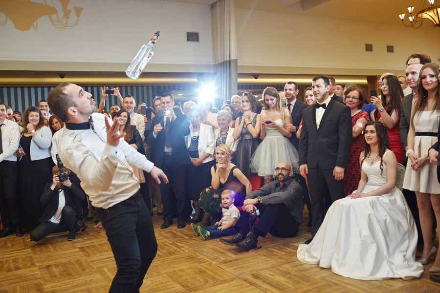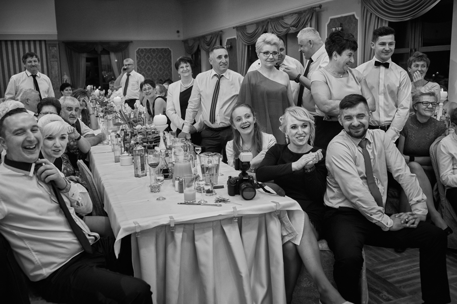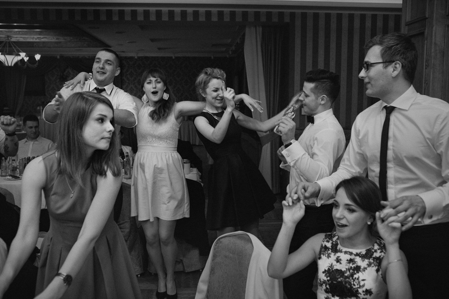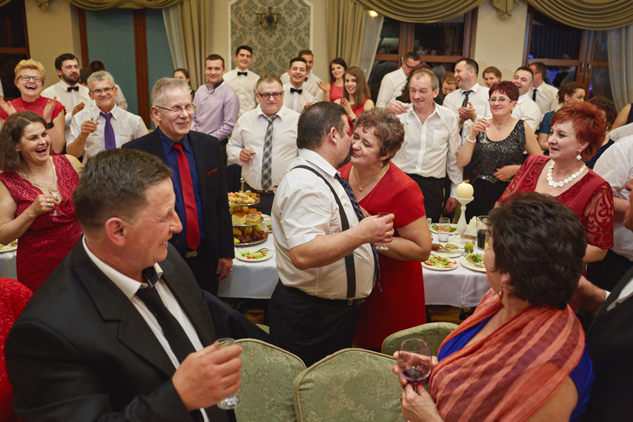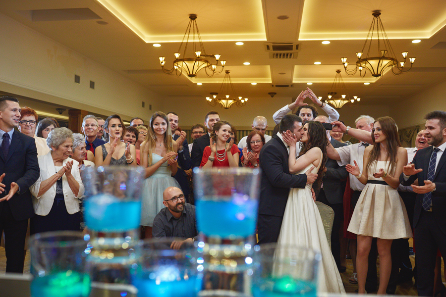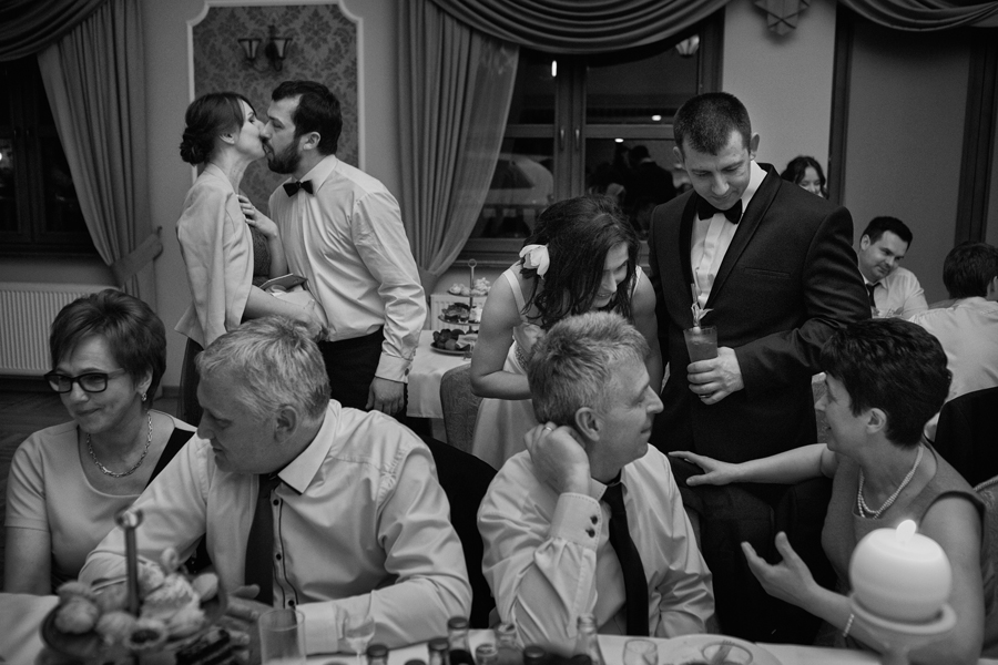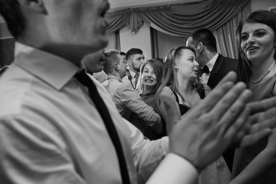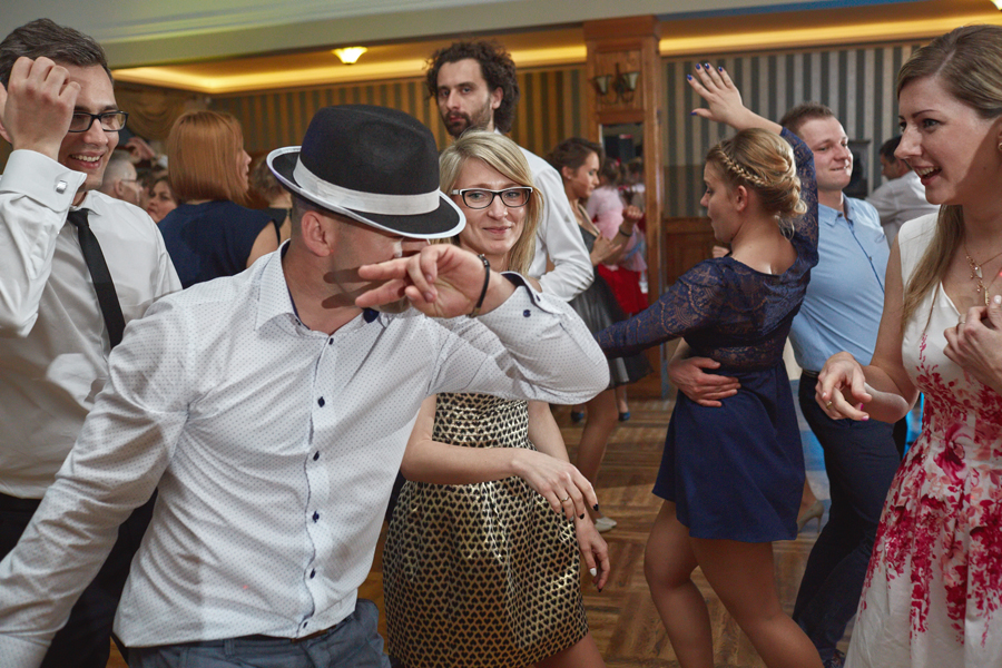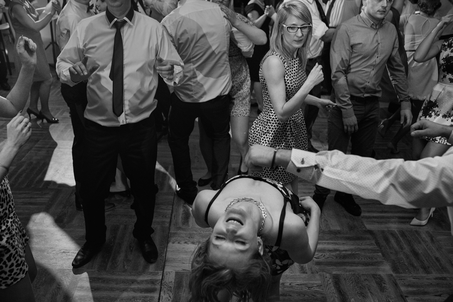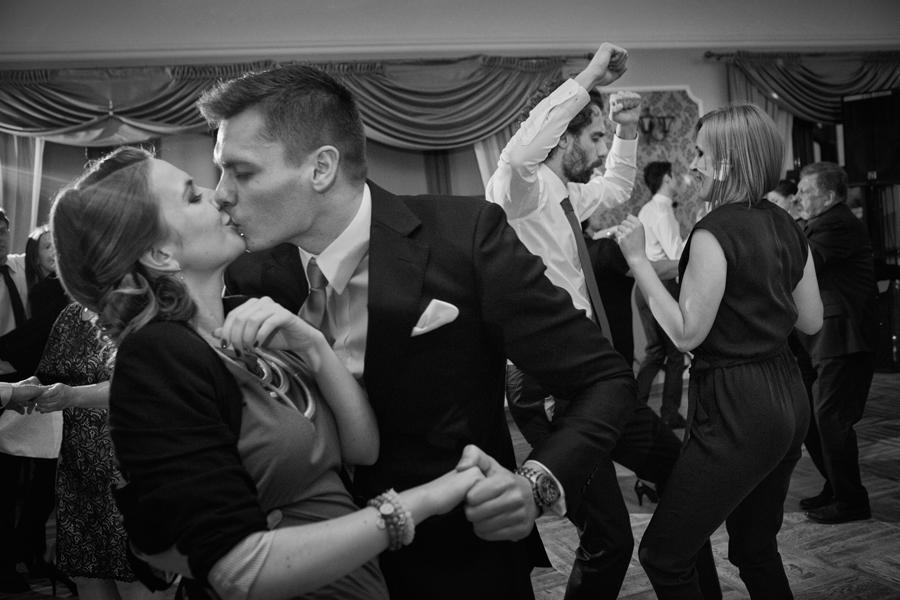 Znamy Wojtka od lat. Jest znakomitym fotografem, pomocnym i serdecznym kolegą. Bardzo wielkiem komplementem dla nas było to, że zaprosił nas na swój ślub jako swoich fotografów ślubnych. Zawsze w takich sytuacjach trochę trudniej jest o dystans, więc nie chcę się rozpisywać, żeby nie popłynąć na fali patosu. Trudniej też o dystans w wyborze zdjęć. Jest ich tu niemało, bo ponad 130, ale śmiało można obwiniać o to Wojtka, bo to on zapewnił taką ilość atrakcji wybierając świetny zespół, zapraszając niesamowitego barmana, który zrobił najlepszy pokaz, jaki kiedykolwiek widziałam, a wreszcie – robiąc taneczne show dla Ani. Last but not least za fantastyczną zabawę i mnóstwo okazji do robienia dobrych zdjęć odpowiedzialność ponoszą też goście, wspaniali, roztańczeni, pełni energii i pozytywnych emocji.
