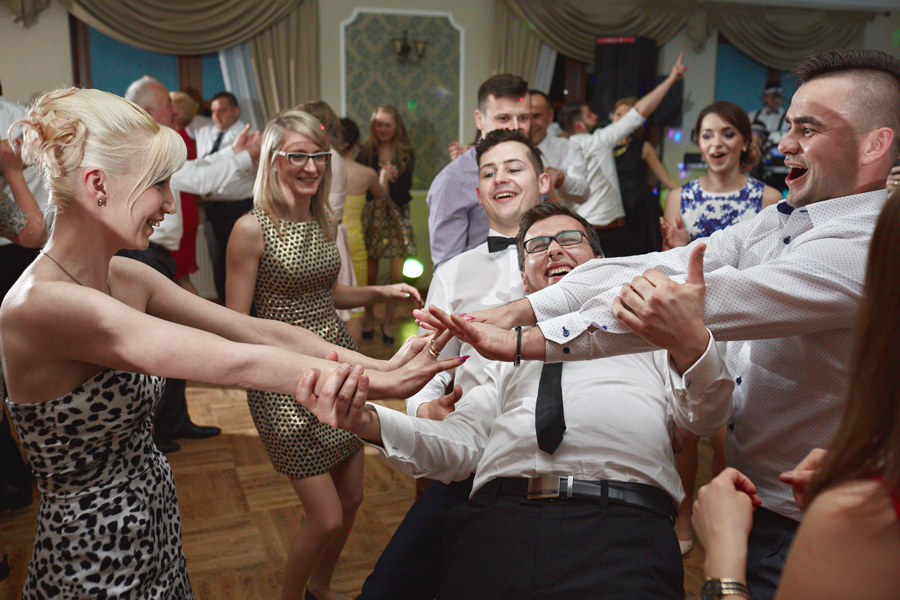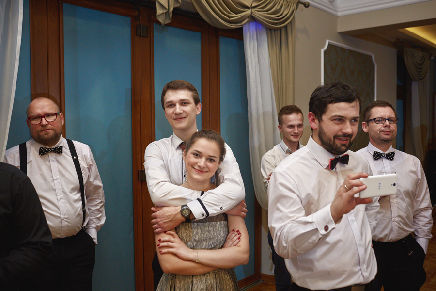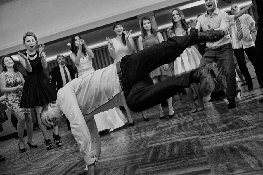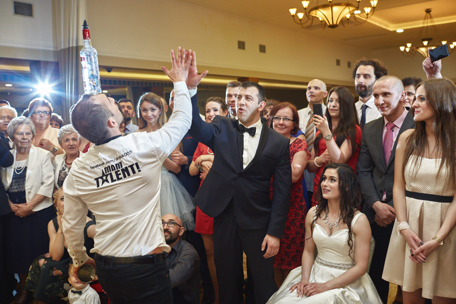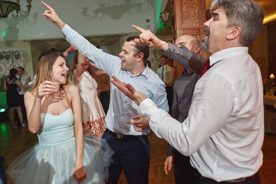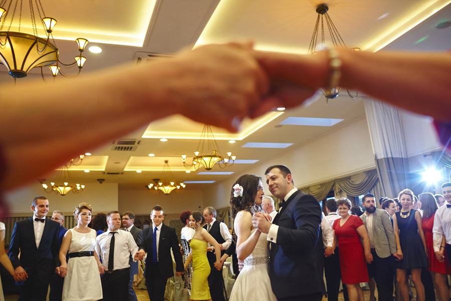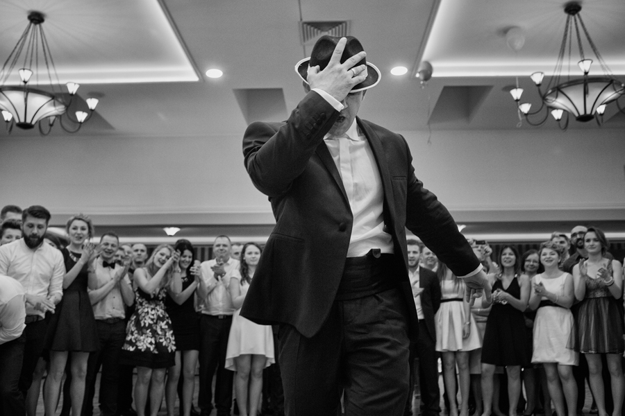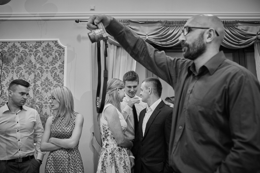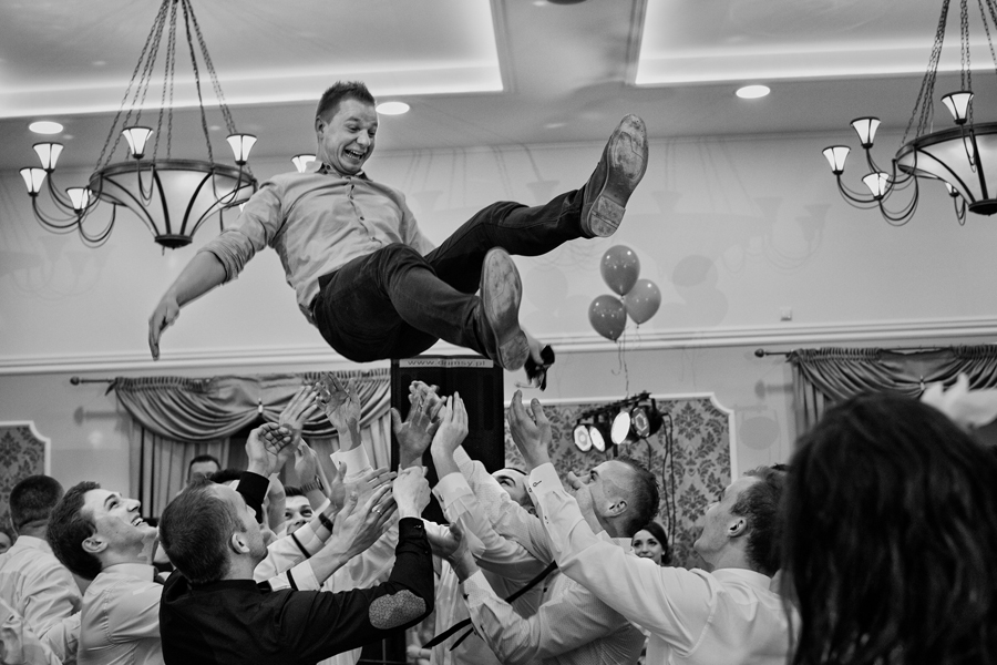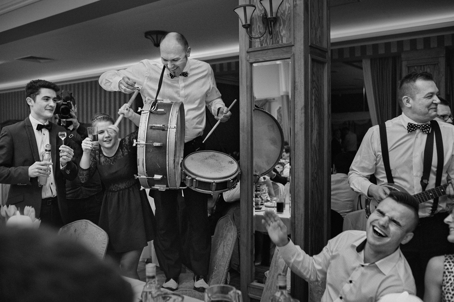 Znamy Wojtka od lat. Jest znakomitym fotografem, pomocnym i serdecznym kolegą. Bardzo wielkiem komplementem dla nas było to, że zaprosił nas na swój ślub jako swoich fotografów ślubnych. Zawsze w takich sytuacjach trochę trudniej jest o dystans, więc nie chcę się rozpisywać, żeby nie popłynąć na fali patosu. Trudniej też o dystans w wyborze zdjęć. Jest ich tu niemało, bo ponad 130, ale śmiało można obwiniać o to Wojtka, bo to on zapewnił taką ilość atrakcji wybierając świetny zespół, zapraszając niesamowitego barmana, który zrobił najlepszy pokaz, jaki kiedykolwiek widziałam, a wreszcie – robiąc taneczne show dla Ani. Last but not least za fantastyczną zabawę i mnóstwo okazji do robienia dobrych zdjęć odpowiedzialność ponoszą też goście, wspaniali, roztańczeni, pełni energii i pozytywnych emocji.