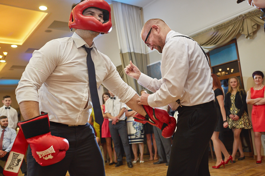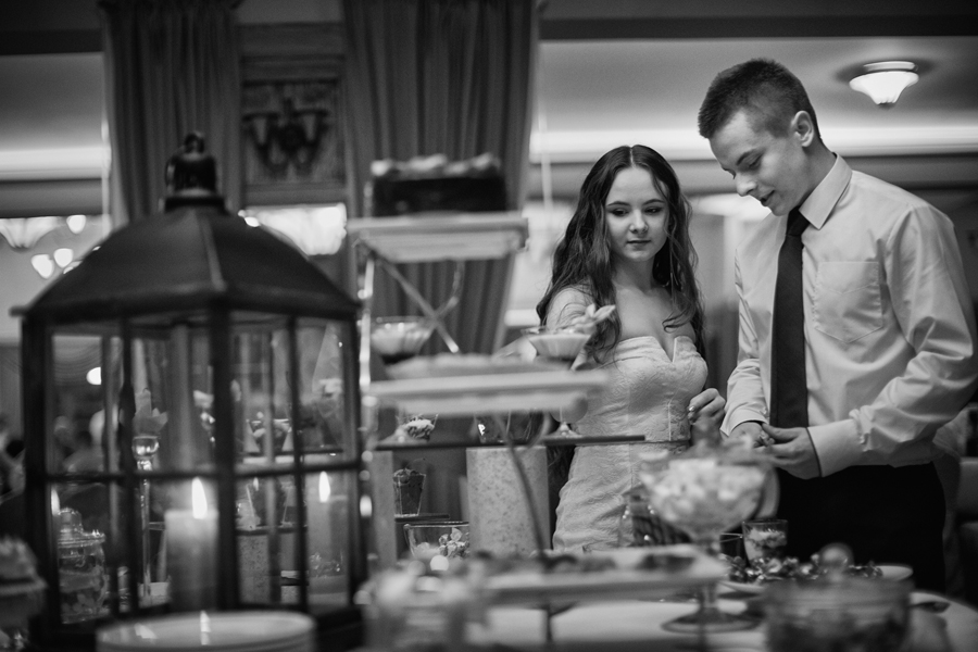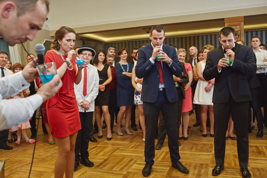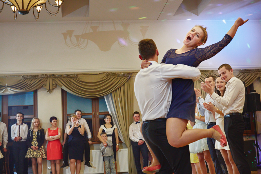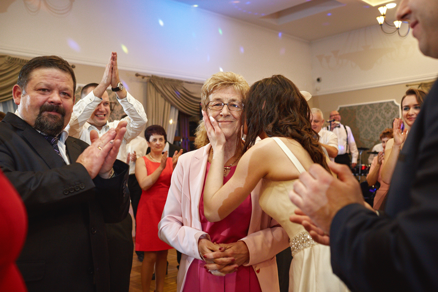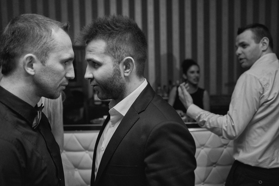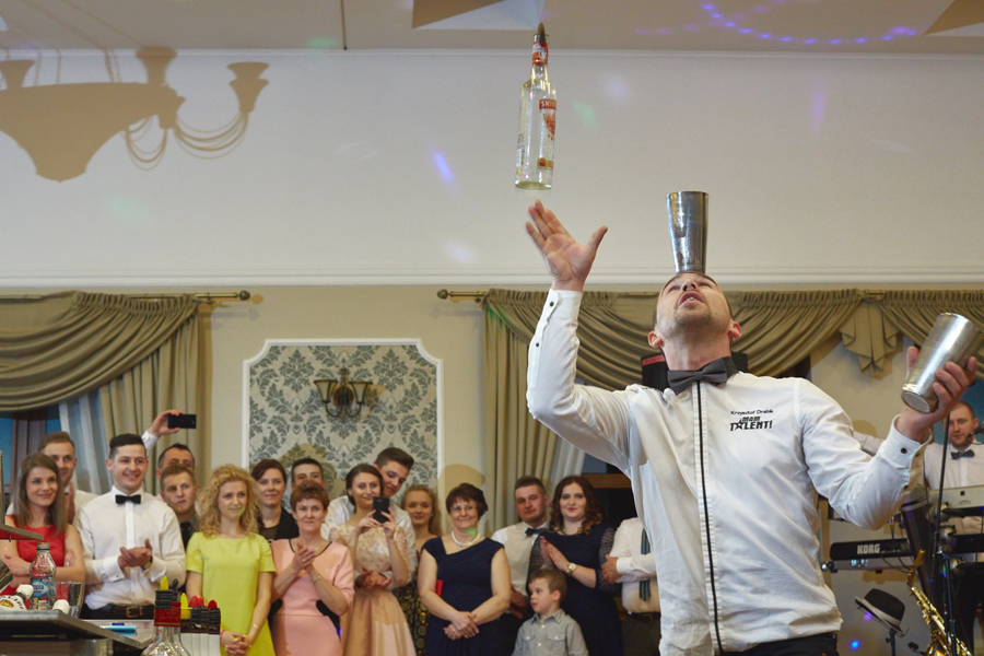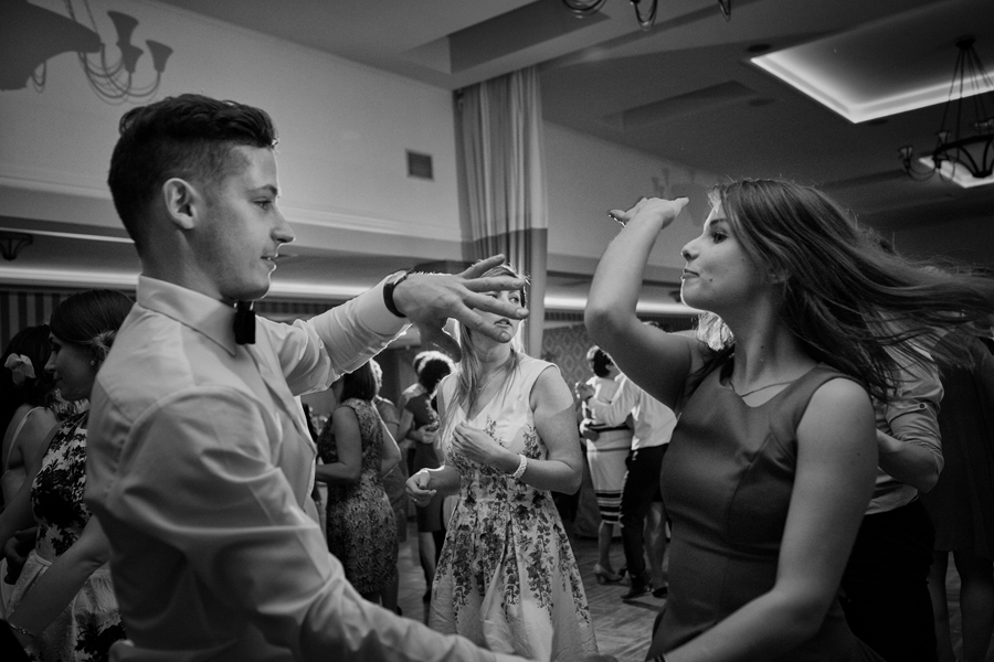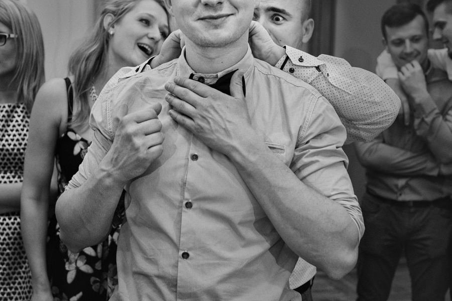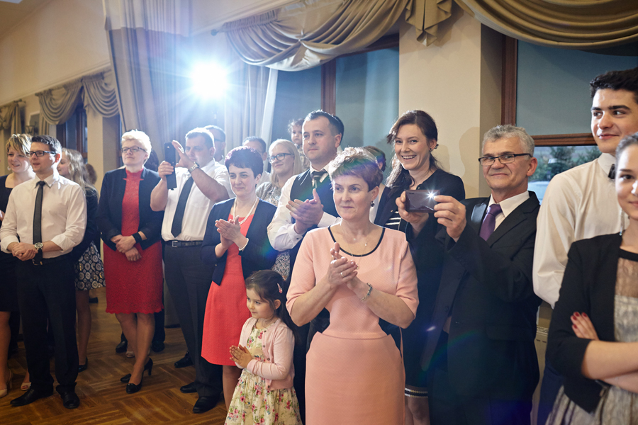 Znamy Wojtka od lat. Jest znakomitym fotografem, pomocnym i serdecznym kolegą. Bardzo wielkiem komplementem dla nas było to, że zaprosił nas na swój ślub jako swoich fotografów ślubnych. Zawsze w takich sytuacjach trochę trudniej jest o dystans, więc nie chcę się rozpisywać, żeby nie popłynąć na fali patosu. Trudniej też o dystans w wyborze zdjęć. Jest ich tu niemało, bo ponad 130, ale śmiało można obwiniać o to Wojtka, bo to on zapewnił taką ilość atrakcji wybierając świetny zespół, zapraszając niesamowitego barmana, który zrobił najlepszy pokaz, jaki kiedykolwiek widziałam, a wreszcie – robiąc taneczne show dla Ani. Last but not least za fantastyczną zabawę i mnóstwo okazji do robienia dobrych zdjęć odpowiedzialność ponoszą też goście, wspaniali, roztańczeni, pełni energii i pozytywnych emocji.