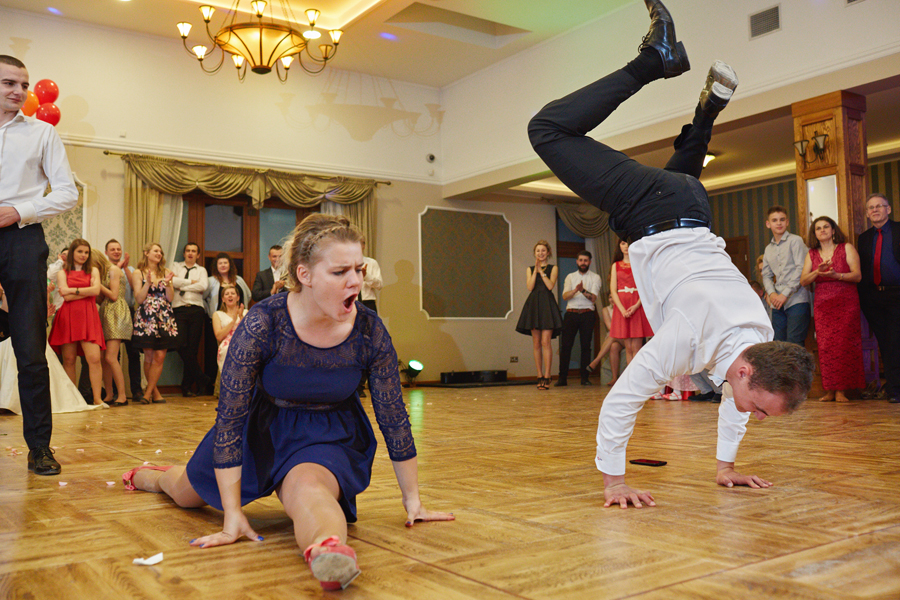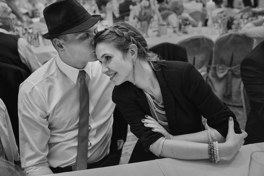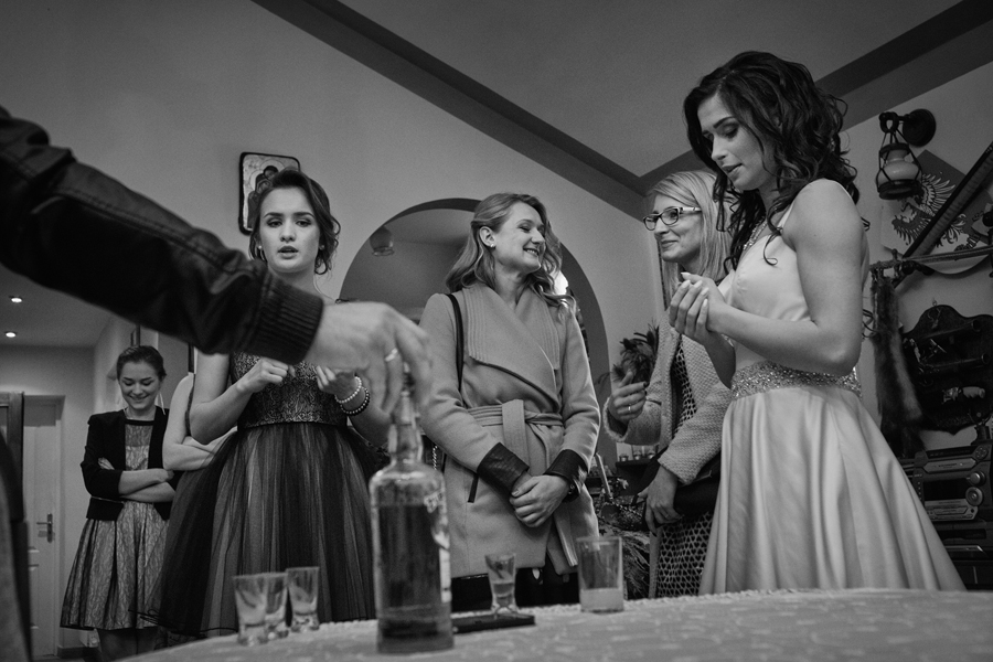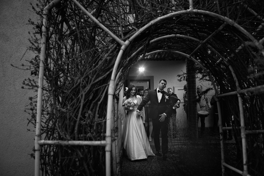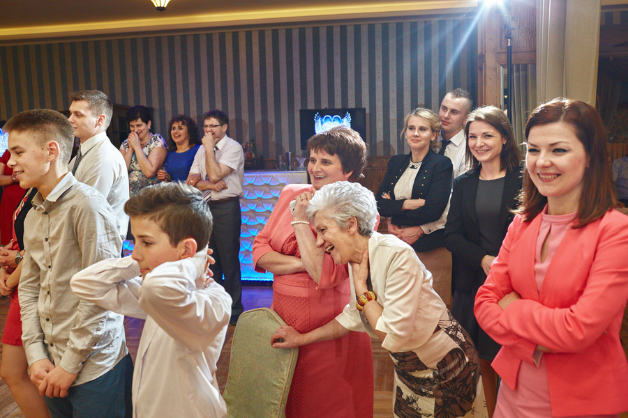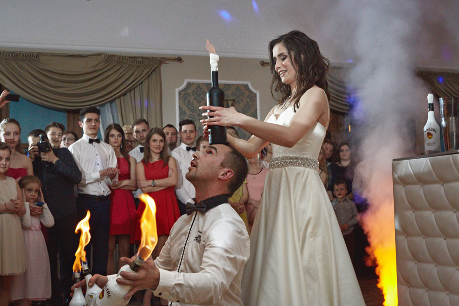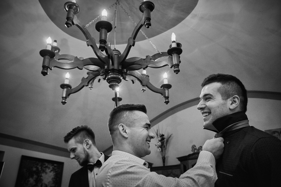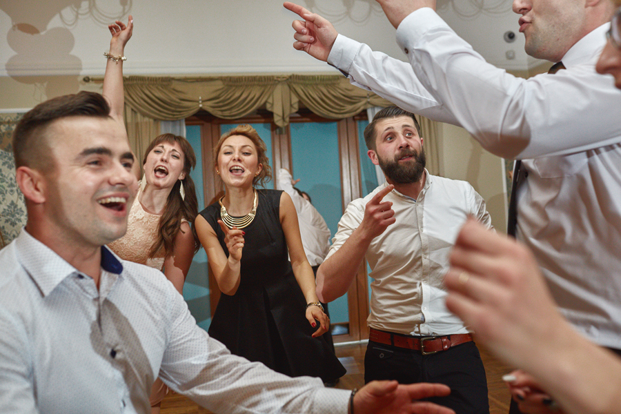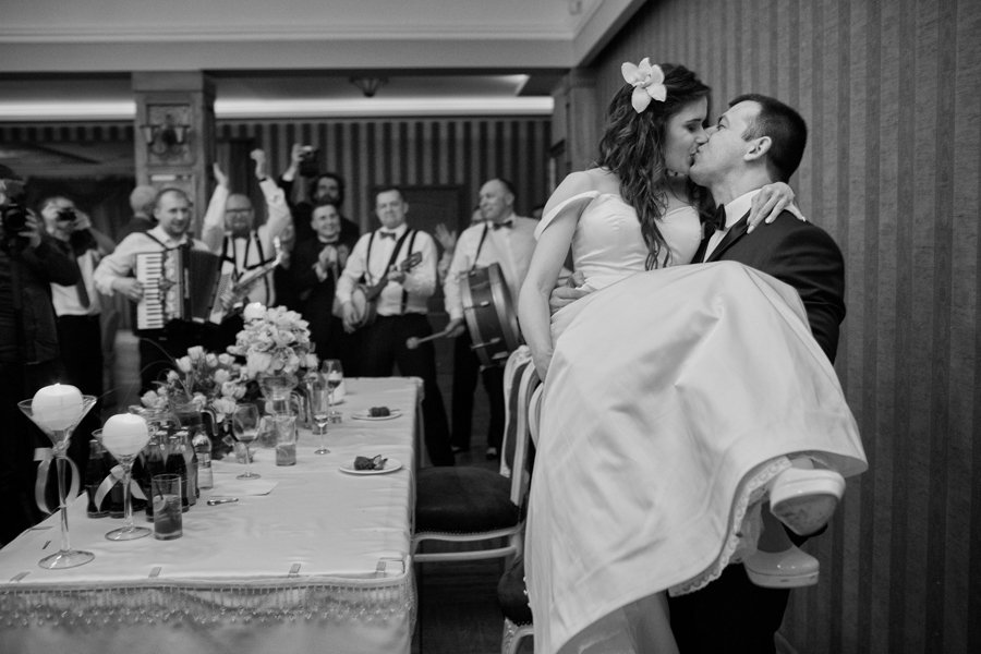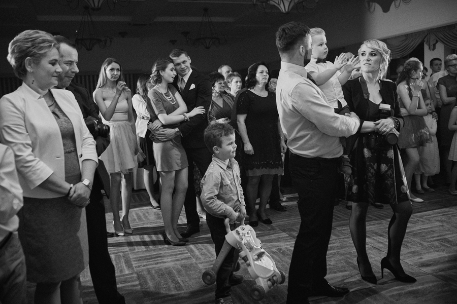 Znamy Wojtka od lat. Jest znakomitym fotografem, pomocnym i serdecznym kolegą. Bardzo wielkiem komplementem dla nas było to, że zaprosił nas na swój ślub jako swoich fotografów ślubnych. Zawsze w takich sytuacjach trochę trudniej jest o dystans, więc nie chcę się rozpisywać, żeby nie popłynąć na fali patosu. Trudniej też o dystans w wyborze zdjęć. Jest ich tu niemało, bo ponad 130, ale śmiało można obwiniać o to Wojtka, bo to on zapewnił taką ilość atrakcji wybierając świetny zespół, zapraszając niesamowitego barmana, który zrobił najlepszy pokaz, jaki kiedykolwiek widziałam, a wreszcie – robiąc taneczne show dla Ani. Last but not least za fantastyczną zabawę i mnóstwo okazji do robienia dobrych zdjęć odpowiedzialność ponoszą też goście, wspaniali, roztańczeni, pełni energii i pozytywnych emocji.