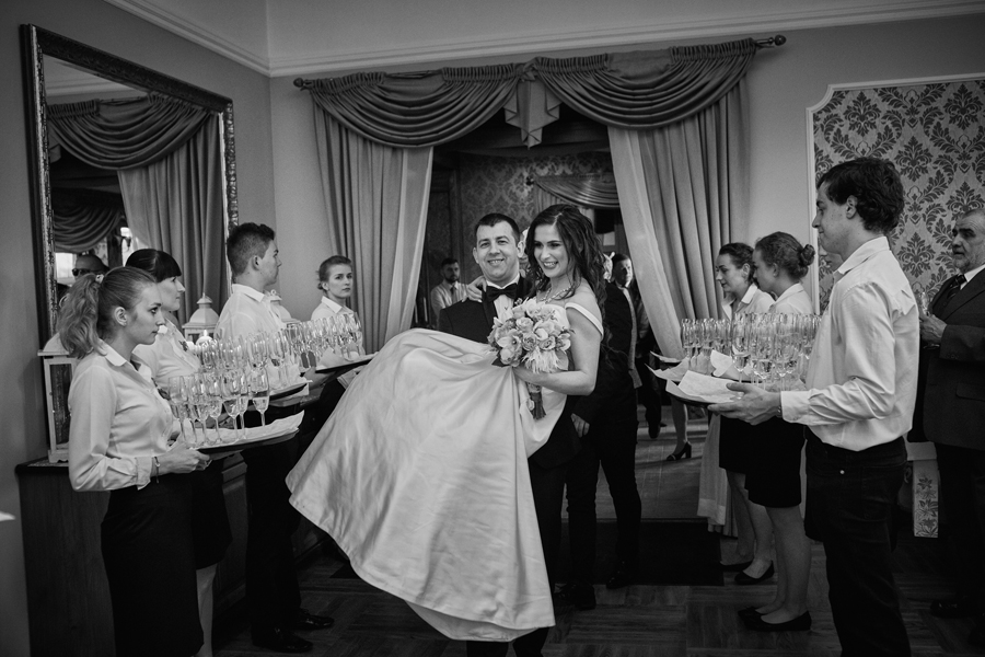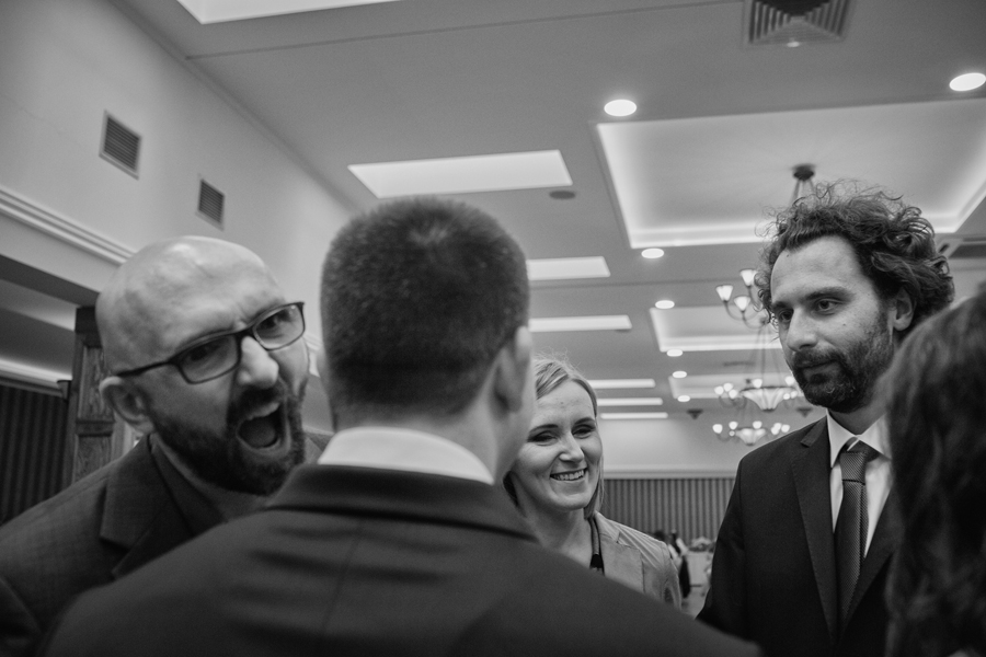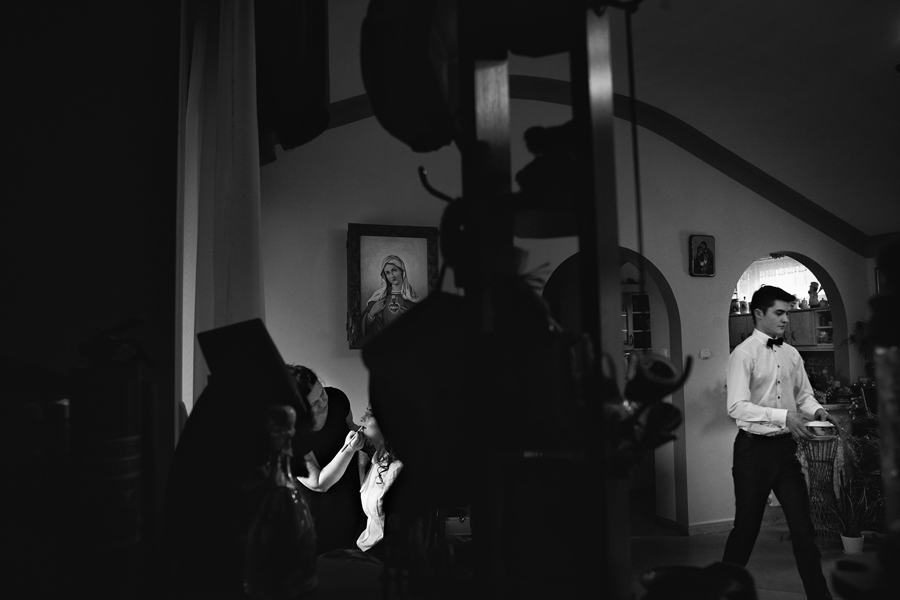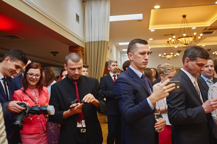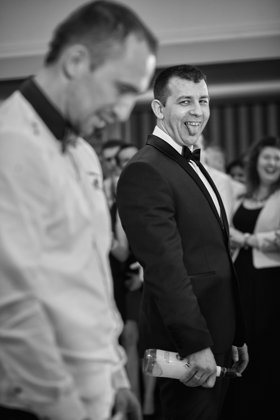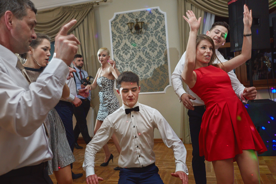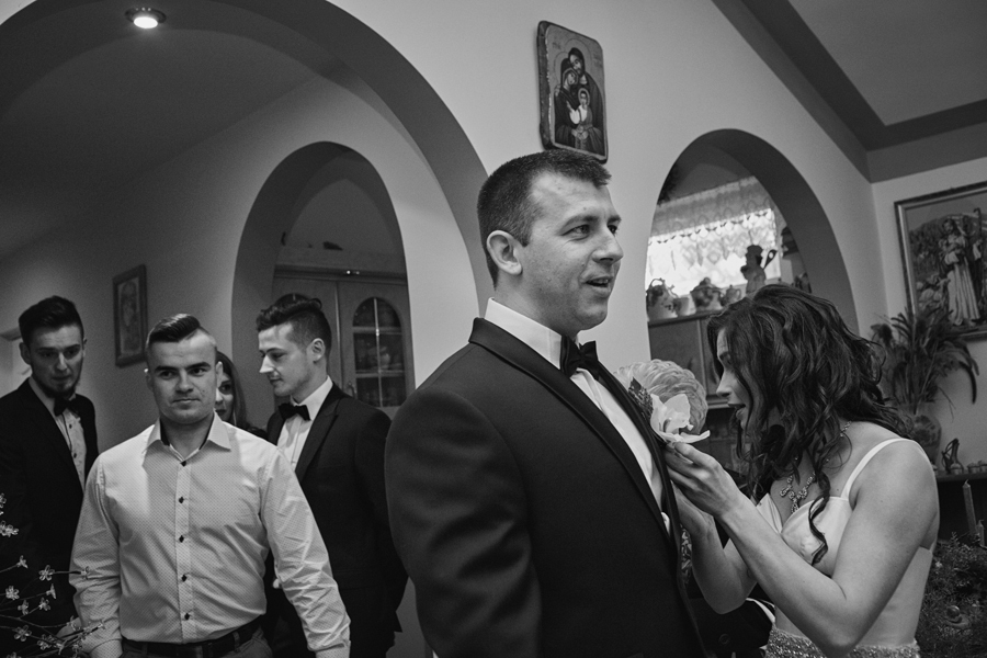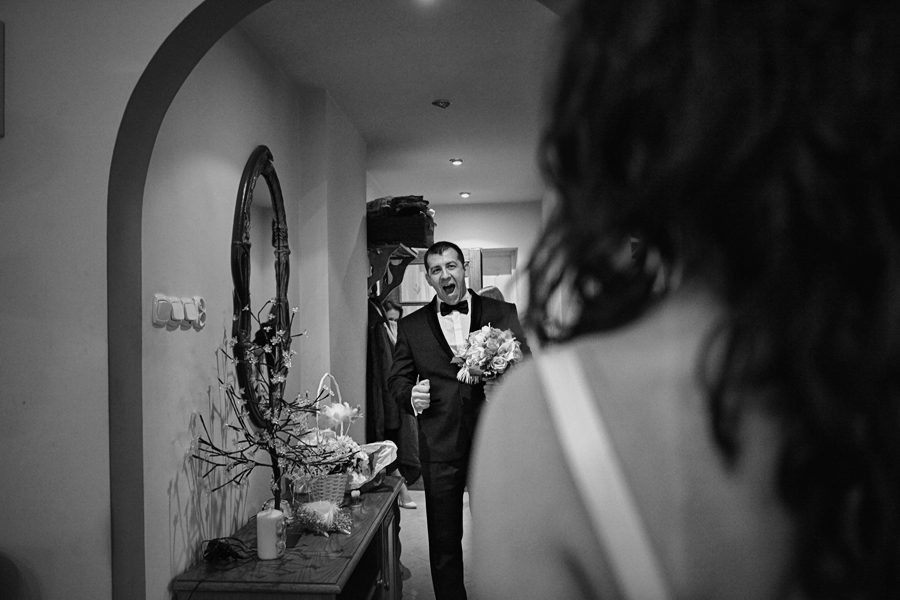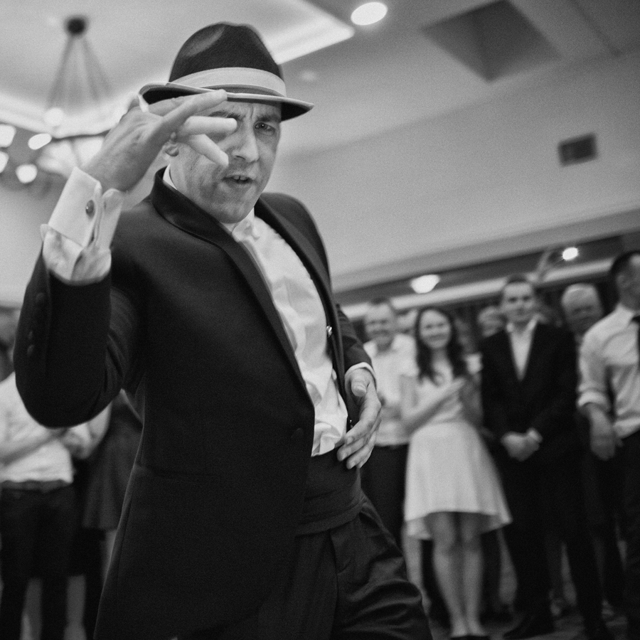 Znamy Wojtka od lat. Jest znakomitym fotografem, pomocnym i serdecznym kolegą. Bardzo wielkiem komplementem dla nas było to, że zaprosił nas na swój ślub jako swoich fotografów ślubnych. Zawsze w takich sytuacjach trochę trudniej jest o dystans, więc nie chcę się rozpisywać, żeby nie popłynąć na fali patosu. Trudniej też o dystans w wyborze zdjęć. Jest ich tu niemało, bo ponad 130, ale śmiało można obwiniać o to Wojtka, bo to on zapewnił taką ilość atrakcji wybierając świetny zespół, zapraszając niesamowitego barmana, który zrobił najlepszy pokaz, jaki kiedykolwiek widziałam, a wreszcie – robiąc taneczne show dla Ani. Last but not least za fantastyczną zabawę i mnóstwo okazji do robienia dobrych zdjęć odpowiedzialność ponoszą też goście, wspaniali, roztańczeni, pełni energii i pozytywnych emocji.