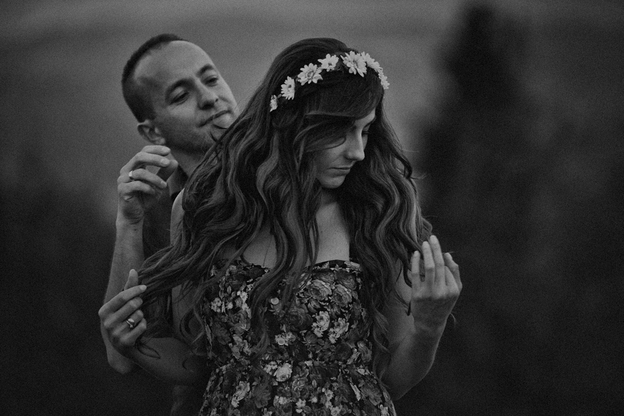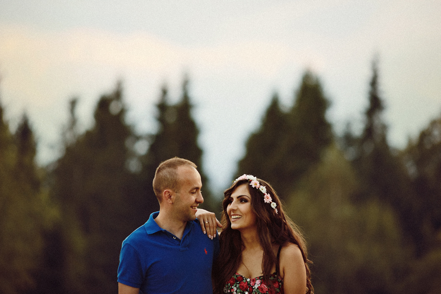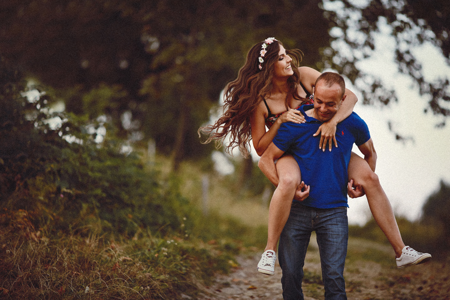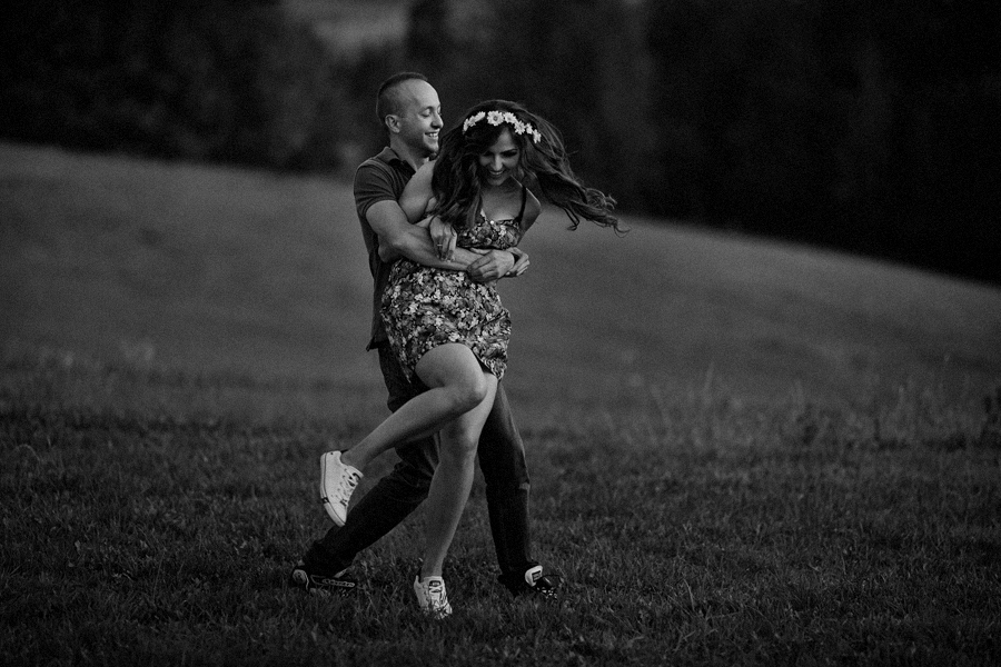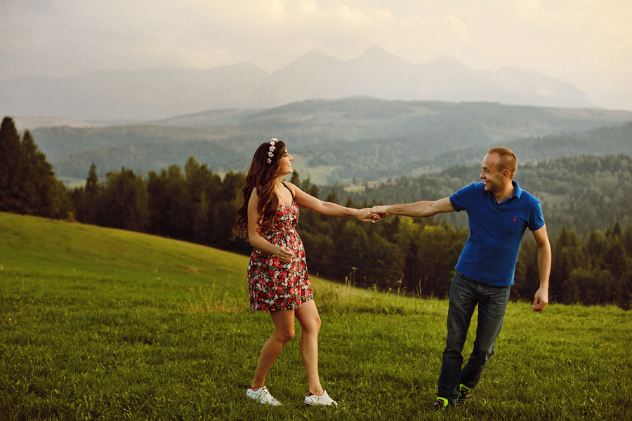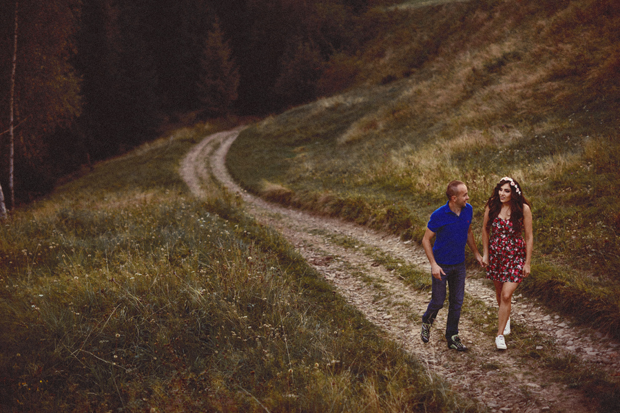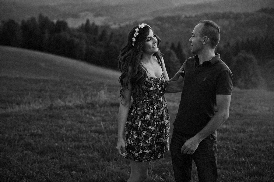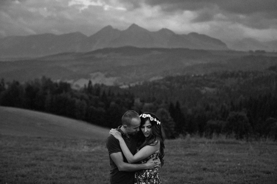 Fotografia ślubna, jak każda branża, ma swój język i, co za tym idzie, swój własny słownik. Są sesje ślubne i sesje narzeczeńskie, sesje intymne, sesje partnerskie – można by pewnie jeszcze co najmniej kilka typów takich sesji wymyślić i nazwać. Tymczasem, moim zdaniem, nazwa nie ma żadnego znaczenia i mówię to jako filolog, z premedytacją. W przypadku zdjęć, nie tylko zdjęć ślubnych, ale zdjęć w ogóle – odłóżmy słownik na półkę, zapomnijmy o całej tej nomenklaturze, która już niedługo będzie się piętrzyć grubymi tomami. To, co jest ważne, to człowiek po drugiej stronie obiektywu i wykonanie dla niego dobrego portretu. Tylko tyle i aż tyle. I nieważne, czy będą to zdjęcia ślubne, czy nieślubne, czy wykona je fotograf ślubny, który przecież nade wszystko jest PO PROSTU fotografem – liczy się dobry portret, który przetrwa próbę czasu. Przed wami Gosia i Przemek w swoim ukochanym, naturalnym środowisku, czyli Górale na tle Tatr.
