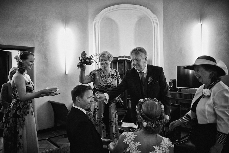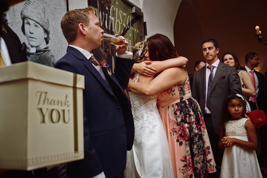 W zasadzie jedyna sensowna odpowiedź, jaka mi się nasuwa, to zatrudnienie konsultantów ślubnych :). Niemniej jednak nie musi to być jedyny sposób na uniknięcie przedślubnej gorączki. W przypadku wesela Bereniki i Roba, organizacją zajęły się nieocenione Kinga i Kasia z Raz w życiu. Zatrudnienie konsultantów ślubnych wcale jednak nie oznaczało, że para młoda nie miała swojego udziału w organizacji. Może to właśnie dlatego nie zwariowali (nie licząc oczywiście szaleństwa na parkiecie) :). Ponadto duża ilość drobnych zajęć i jednocześnie fakt, że kto inny sprawował pieczę nad całością, sprawiły, że byli tego dnia spokojni, uśmiechnięci i pełni energii.