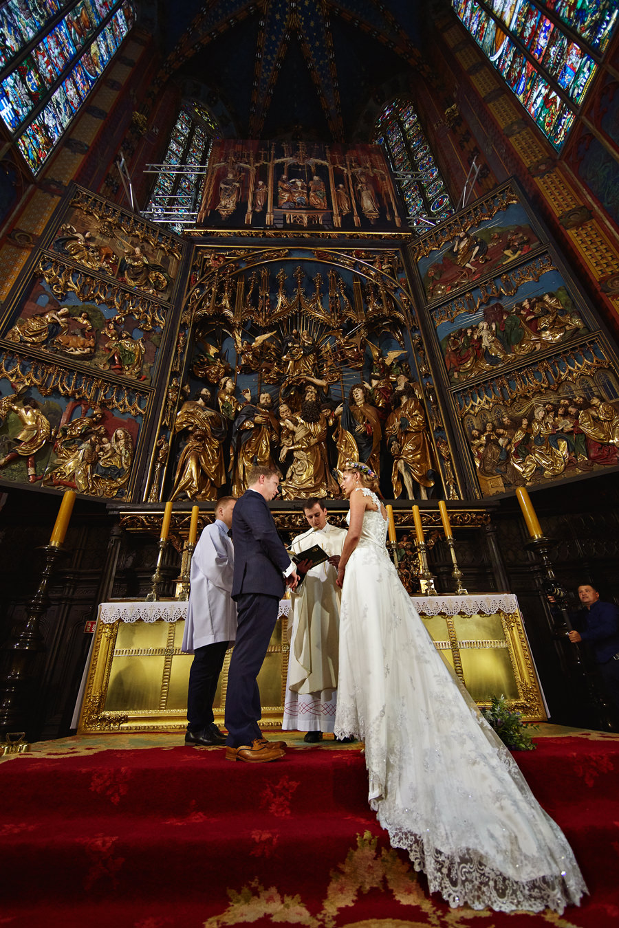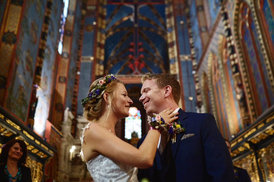 Uwielbiam zabytkowe kościoły. Czasem jednak obawiam się, że te najsłynniejsze kościoły krakowskie mogą przytłoczyć nieco relacje między ludźmi. Podniosła, patetyczna atmosfera wnętrz nie pozostaje bez wpływu na ludzkie emocje. Ale w tym przypadku zdecydowanie tak się nie stało. Przede wszystkim otwartość Bereniki i Roba miała na to wpływ, następnie wspaniałe spersonalizowane kazanie, a w końcu również dzieci, które z patosu wnętrz bazyliki nie robiły sobie absolutnie nic i doskonale się bawiły :).