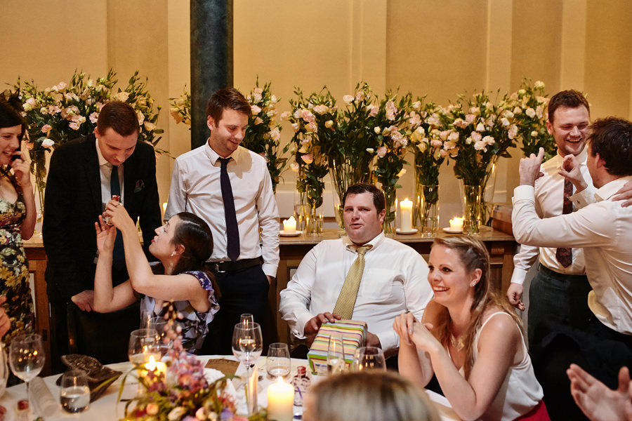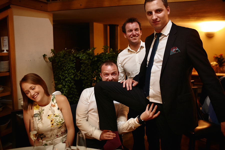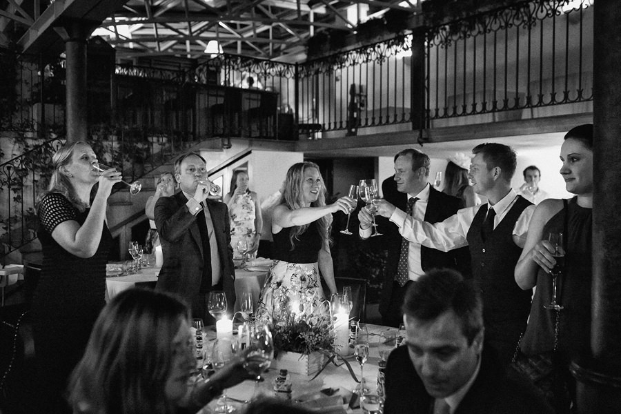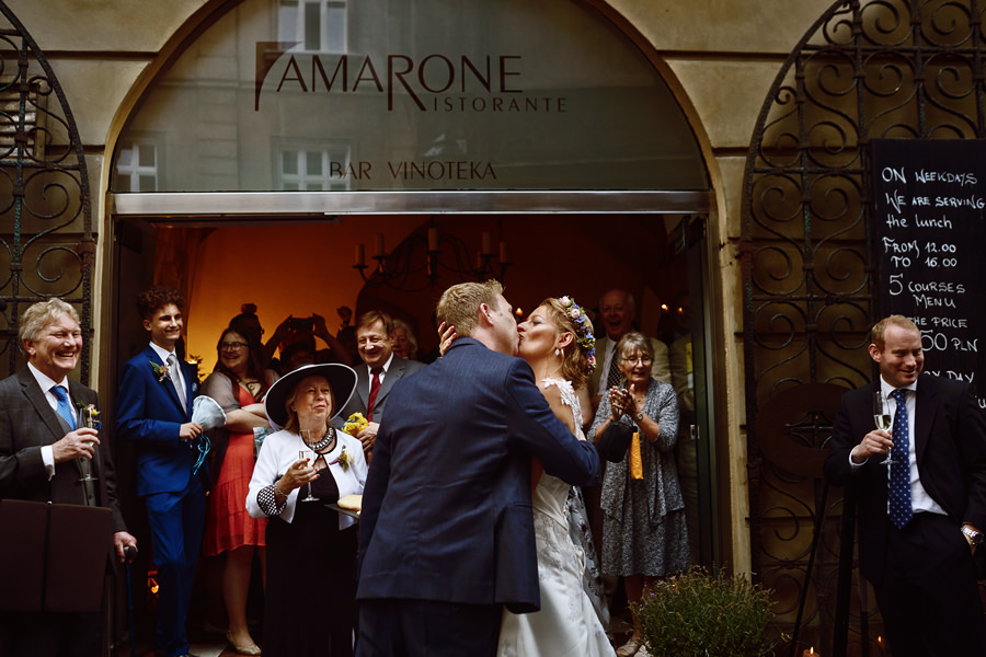 Po ceremonii zaślubin Berenika i Rob odbyli wycieczkę dorożką po starym mieście, dając tym samym czas gościom weselnym na dotarcie do hotelu. Tam czekały już na nich napoje i przekąski, aby umilić im oczekiwanie na przyjazd Bereniki i Roba. Warto mieć na uwadze, że agenda wesel międzynarodowych różni się od polskich. Powitanie, życzenia i gratulacje to stały punkt w obu przypadkach. Jednakże w czasie obiadu przewidziane są zwykle przemówienia, które wygłaszają najbliższe parze młodej osoby. Dlatego właśnie celebracja głównego posiłku zajmuje czasem nawet trzy godziny. Następnie część oficjalna się kończy, a zaczyna się imprezowe szaleństwo.