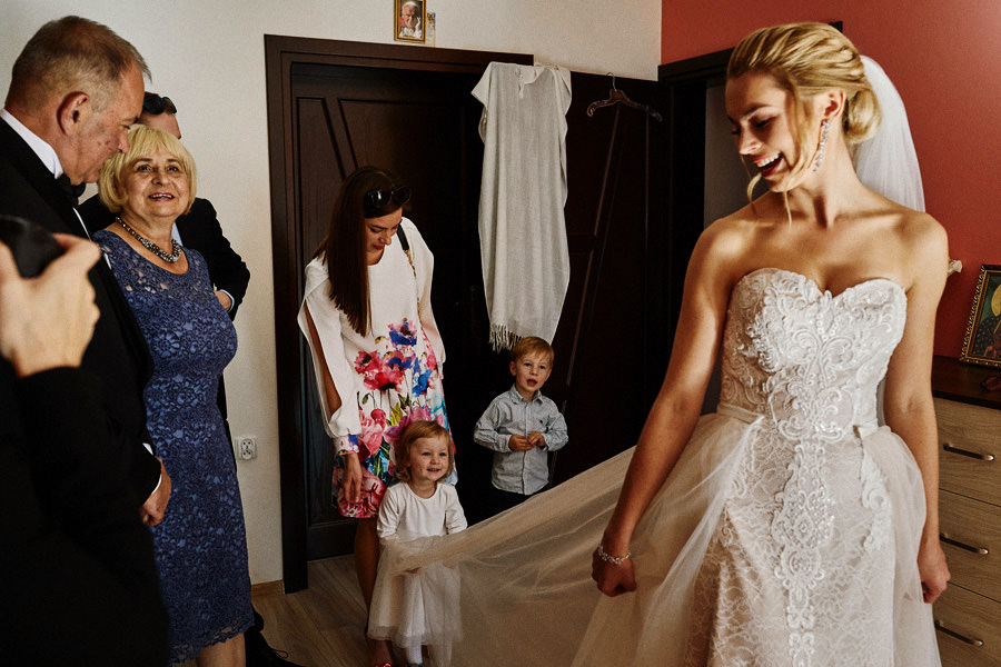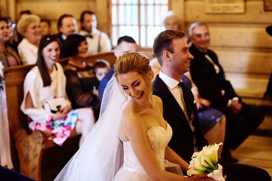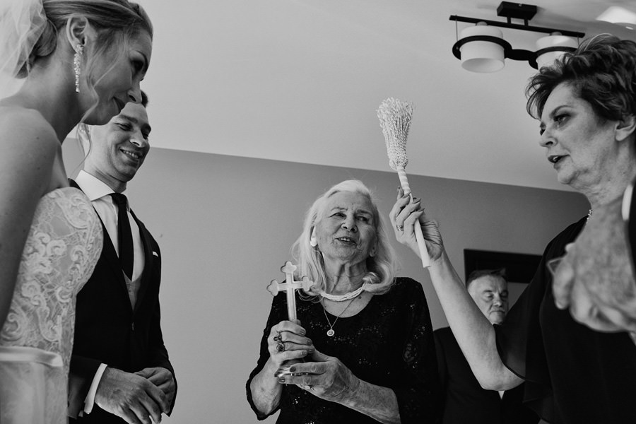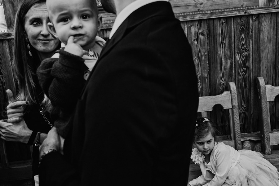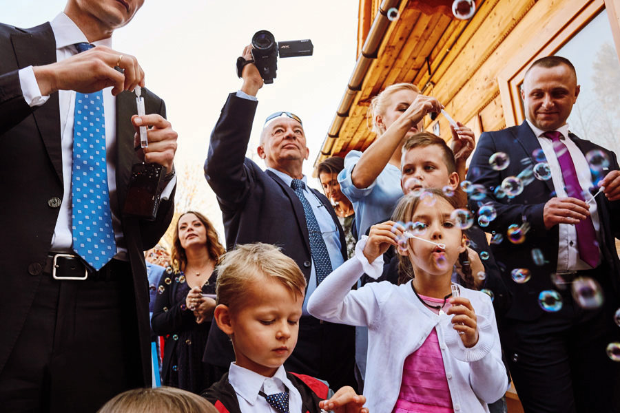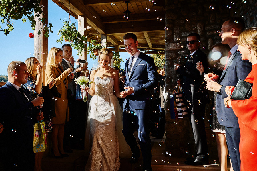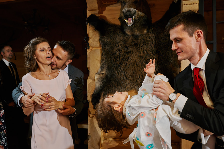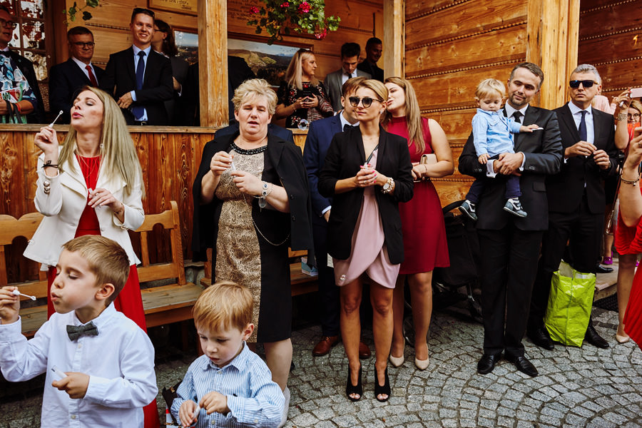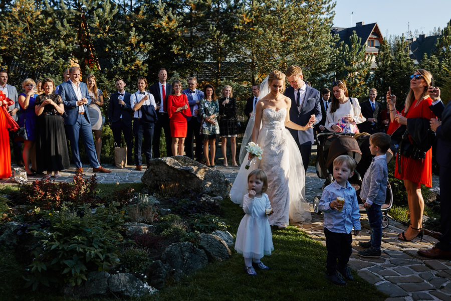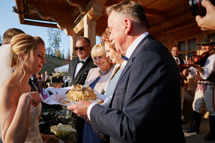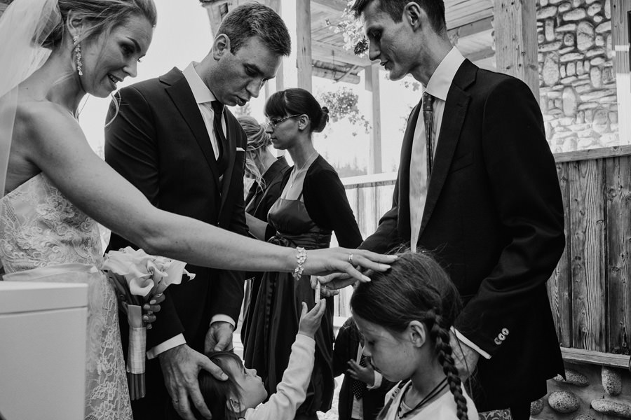Podhalańska zabudowa jest dość rozmaita, natomiast z pewnością łatwo jest zachować spójność stylistyczną, jeśli planuje się ślub i wesele w tych okolicach. Nasza para zdecydowała się wziąć ślub w maleńkim, pięknym, drewnianym kościółku – prowadzonym przez ojców Dominikanów. Przyjęto ich tam z niezwykłą życzliwością. Dzięki temu ślub był pełen emocji, a góralska architektura stanowiła miłe oku tło do zdjęć.