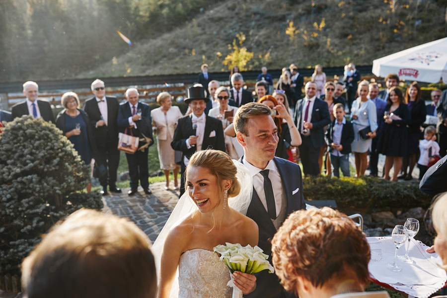 Lubię takie pomysły, kiedy para młoda stwierdza, że po prostu porwie całą swoją rodzinę i znajomych w miejsce, z którego tak łatwo do domu nie wrócą. Gdzie zupełnie oderwą się od zgiełku codziennych spraw i na dwa dni skupią się po prostu na dobrej zabawie. Natalia i Łukasz wybrali miejsce kierując się sentymentem. Małe Ciche było miejscem, gdzie się poznali lata temu, podczas wyjazdu. Ucieczka z miasta, by pobrać się i zrobić wesele na Podhalu nie była więc tylko praktyczną decyzją, ale w tle była jeszcze romantyczna historia. A skoro miały to być podhalańskie klimaty, czy można wyobrazić sobie porę lepszą, niż jesień?
