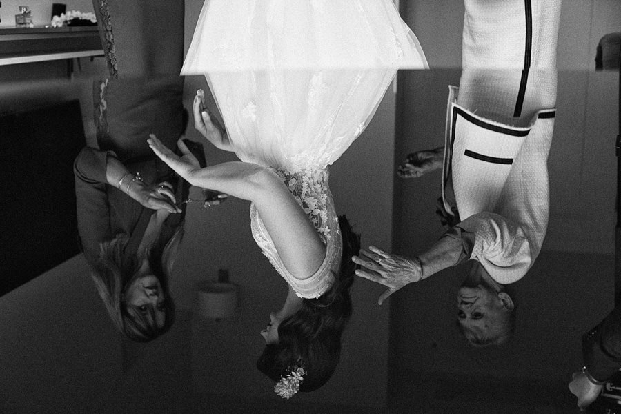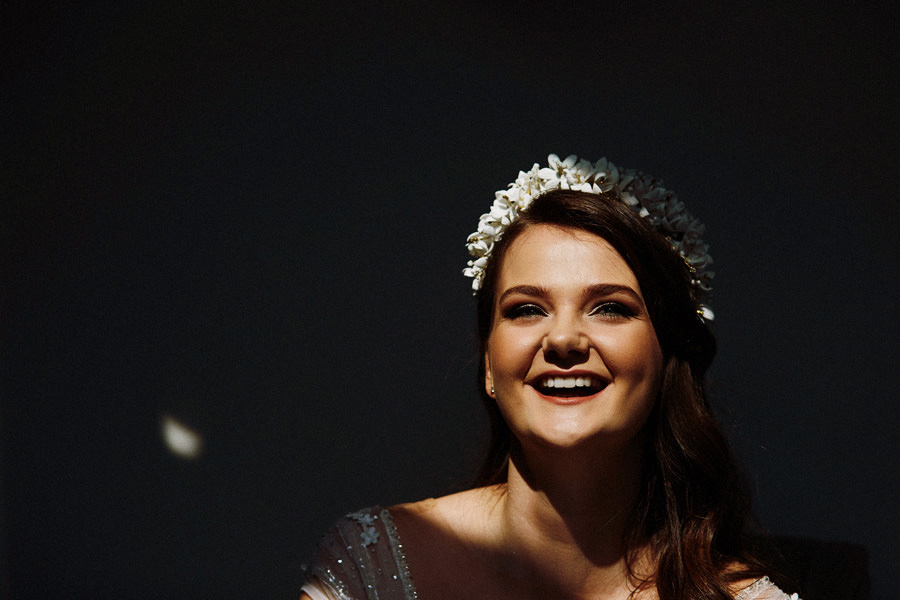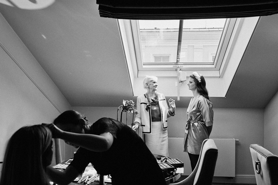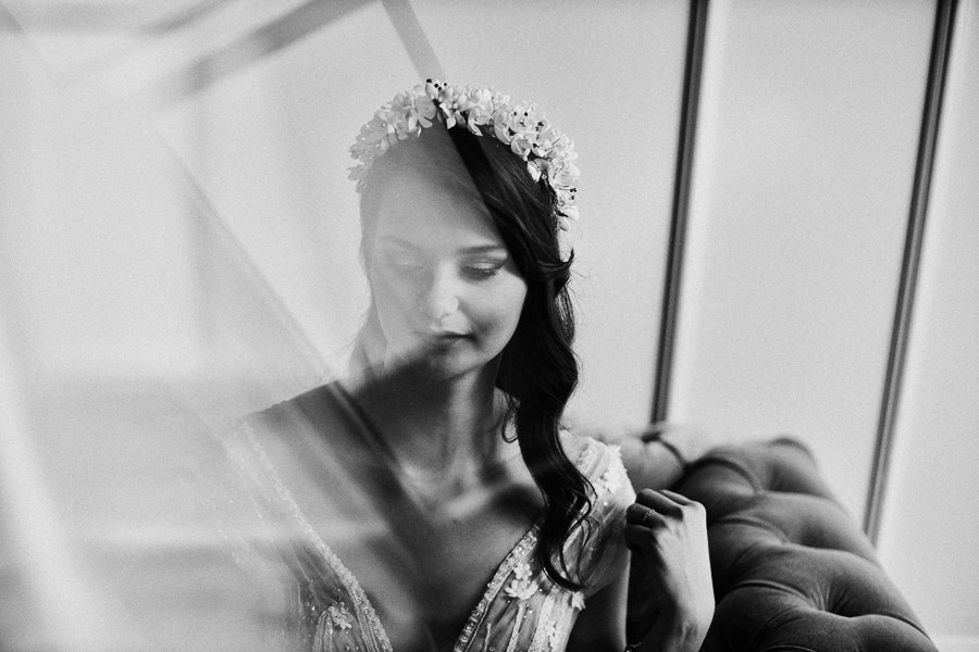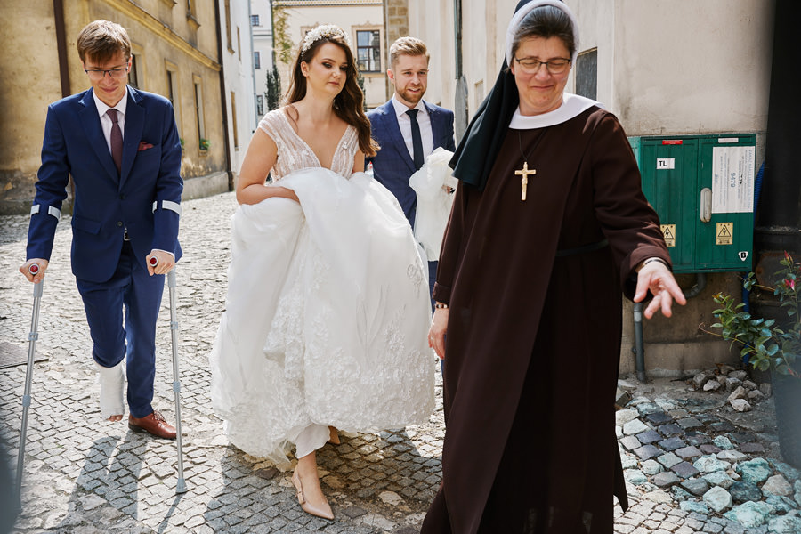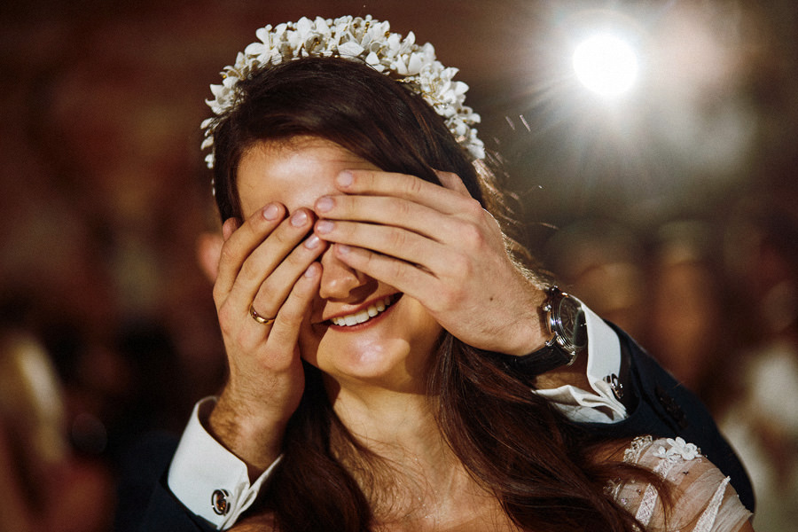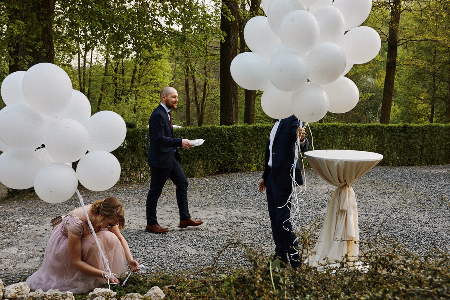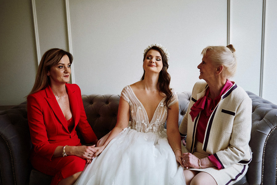 Reportaż to dynamika, wieloplany, interakcje między ludźmi, gdzie każde zdjęcie do osobna historia, ale razem to historia doskonała. Tak sobie to wyobrażamy. Tymczasem są też sytuacje, że jest bardzo kameralnie, nie ma bieganiny, jest za to uważność. Czasem fotograf daje się wciągnąć w chaos, a czasem jest po to, żeby nie mącić ciszy. Zanim będzie przysięga, zanim zacznie się wesele na zamku w Korzkwi, jest potrzebny ten moment wyciszenia, spokojnego startu. Czy udało się pokazać spokój? 🙂