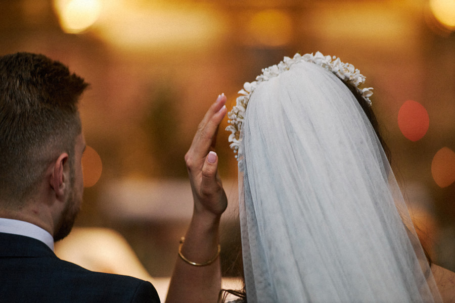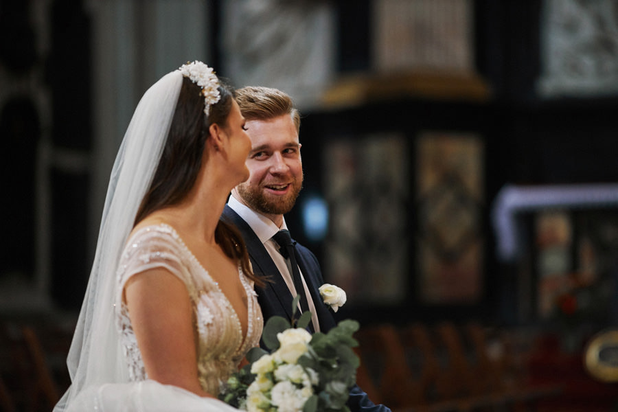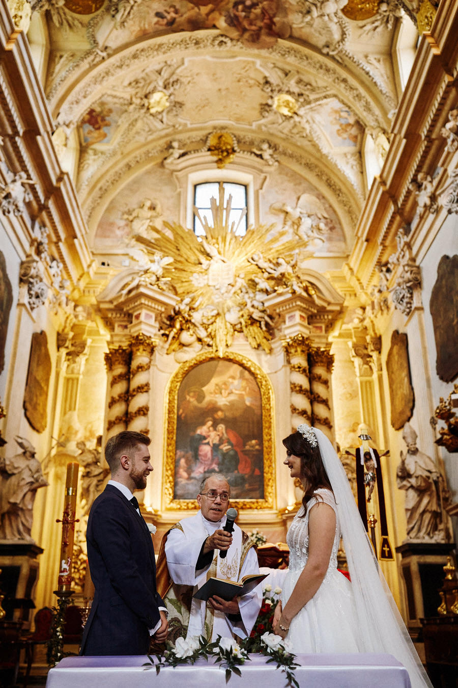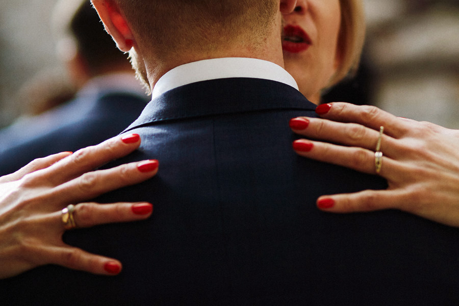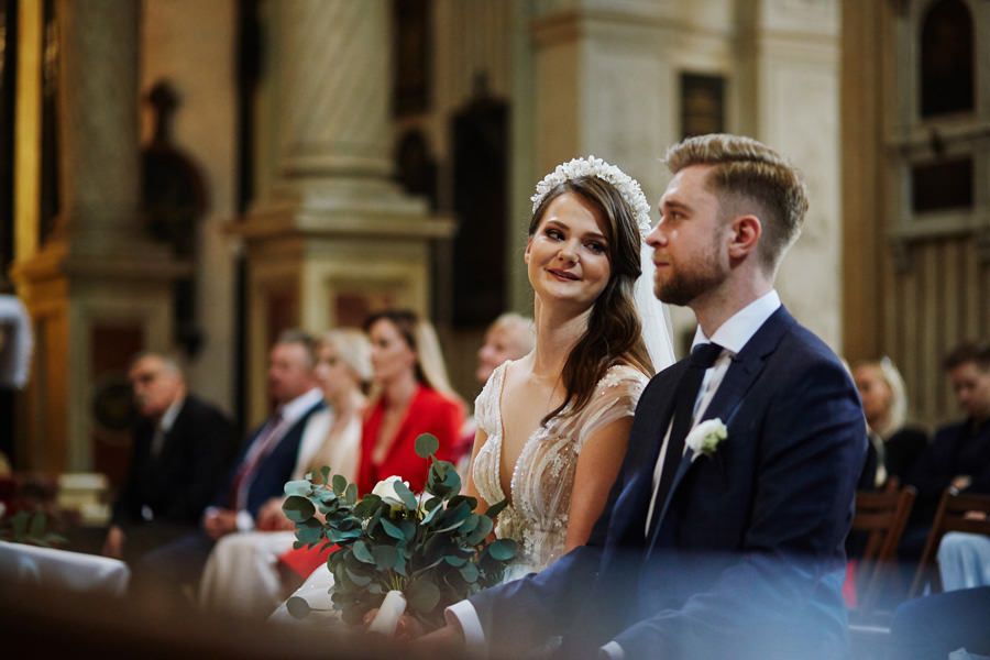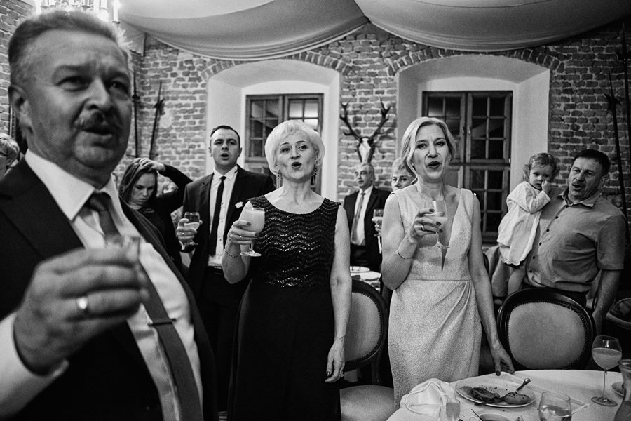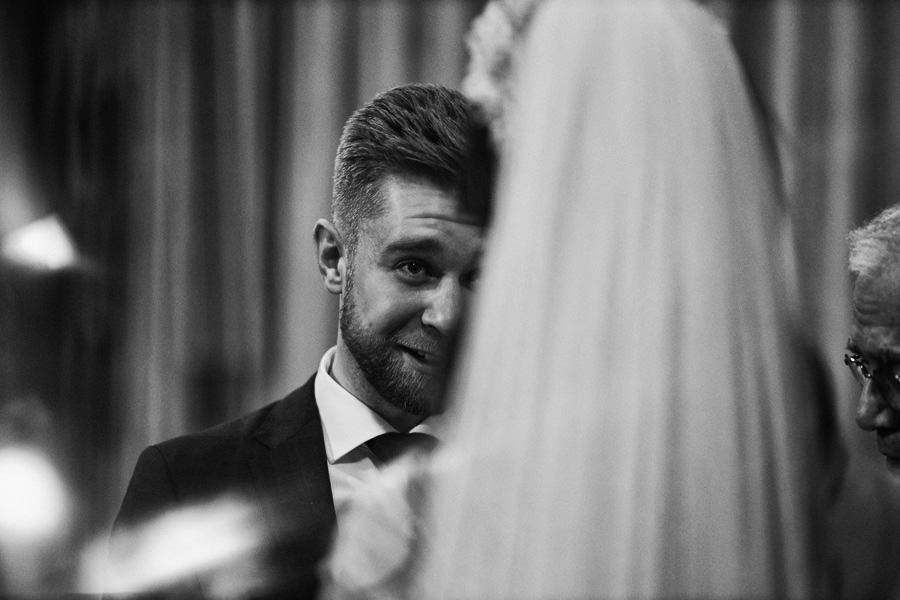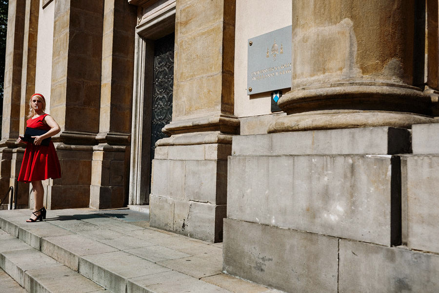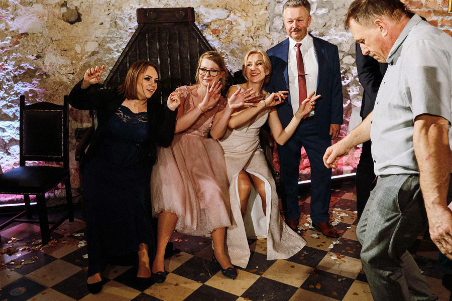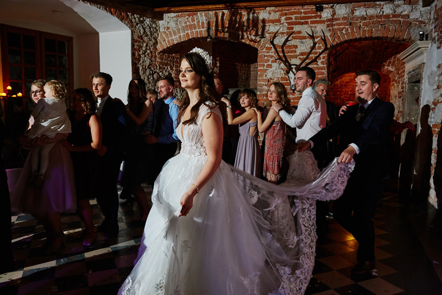 Kraków słynie z pięknych kościołów, ale wśród nich święta Anna to zdecydowanie moja ulubiona świątynia. Wszystko tu jest doskonałe – barokowy przepych równoważony jest strzelistością i lekkością wnętrza, a światło jest tak malarskie, że zdjęcia wyglądają jak obrazy. Zuzanna i Mateusz przysięgali otoczeni miłością. Ich przysięga była pełna emocji, a jej świadkowie mocno poruszeni. To te momenty, gdy fotograf naprawdę czuje, że ma świetną pracę – fantastycznie jest przyglądać się szczęściu. Zwłaszcza gdy w perspektywie jest wesele na zamku w Korzkwi!