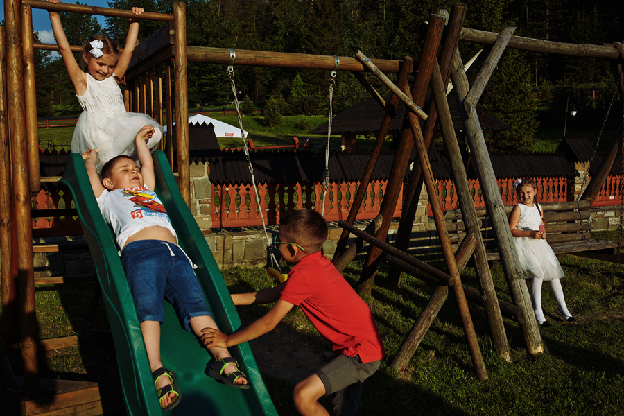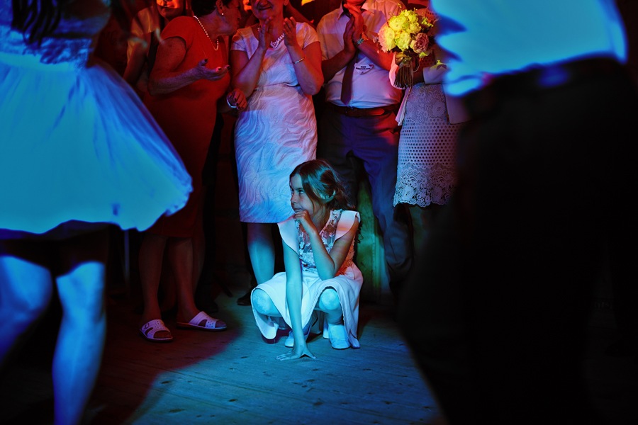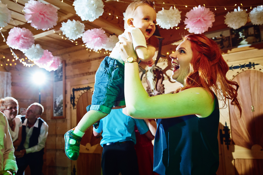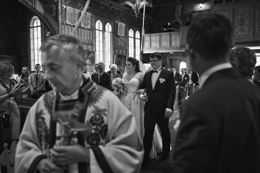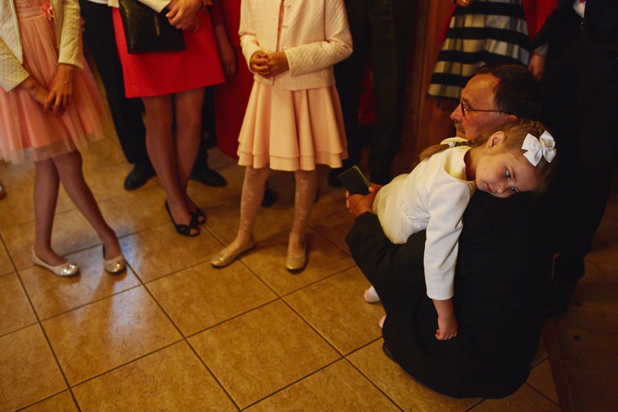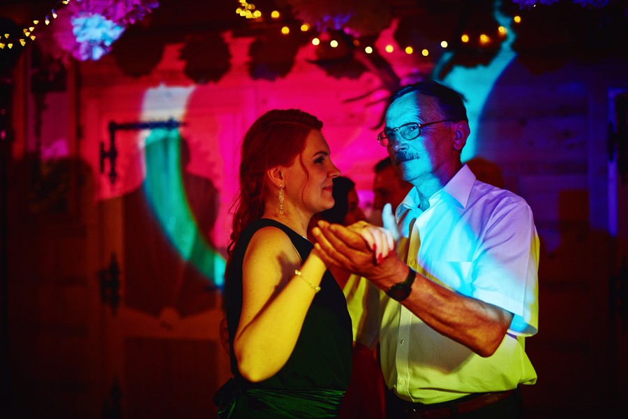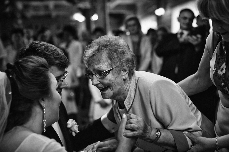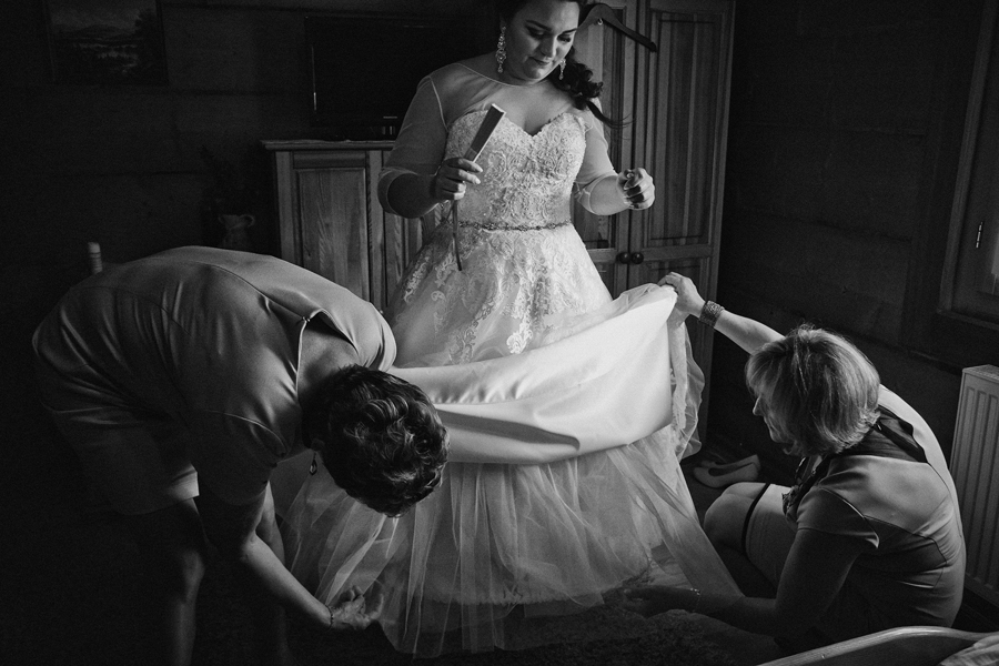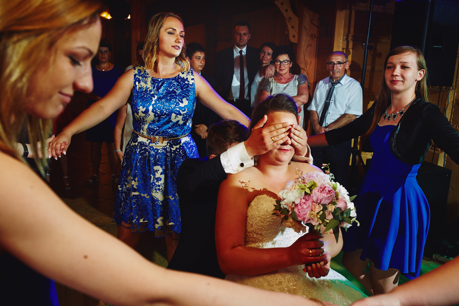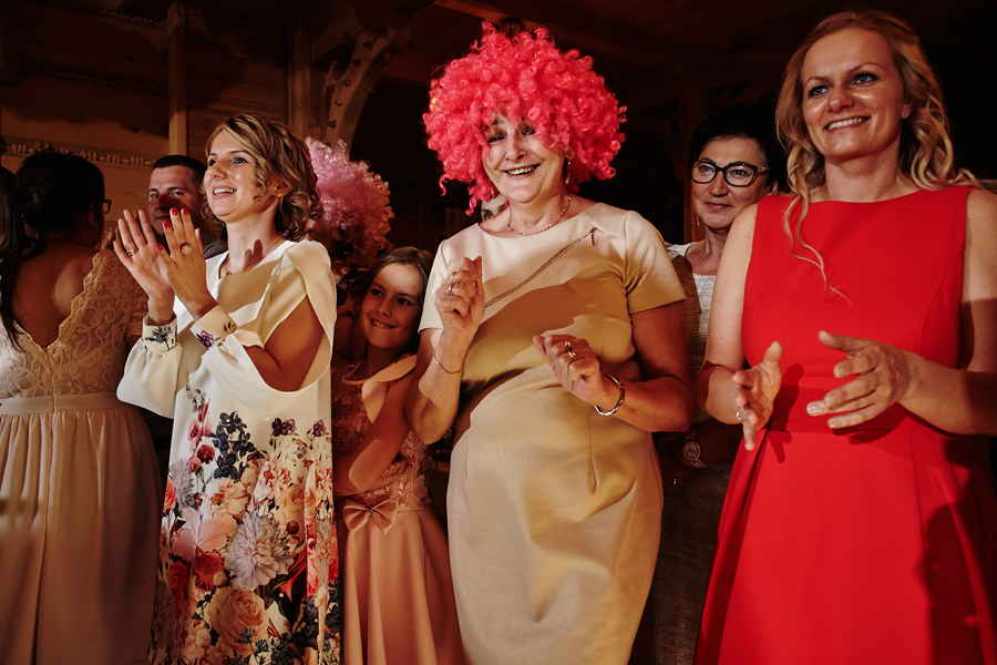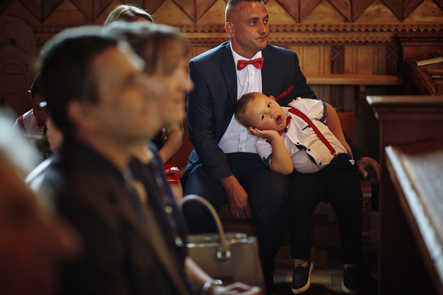 Nie było to jednak jedno z tych wesel typu slow, gdzie akcja rozgrywa się powoli, gdzie wszyscy przemieszczają się niespiesznie, gdzie detalami weselnymi i okoliczną przyrodą buduje się klimat. Tu jednak mieliśmy prawdziwie śląski temperament! Kasię poznaliśmy już wcześniej, gdyż jej ślub był trzecim, na którym byliśmy w tej rodzinie. Śmiało więc możemy powiedzieć, że naprawdę czuliśmy się jej częścią. Dwa poprzednie wesela pokazały nam wyraźnie, że w ich żyłach faktycznie płynie krew, nie woda i że potrafią bardzo głęboko się wzruszać, ale też bawić się do upadłego. Zapraszamy na dużą dawkę gęstych, reporterskich kadrów, intensywnie kolorowych i równie intensywnie czarno-białych.