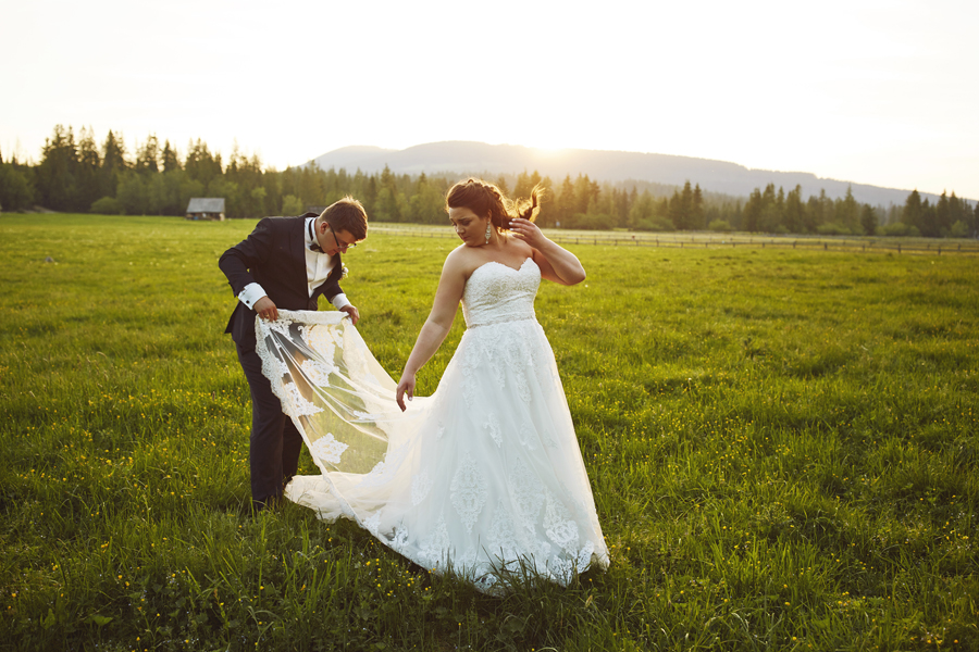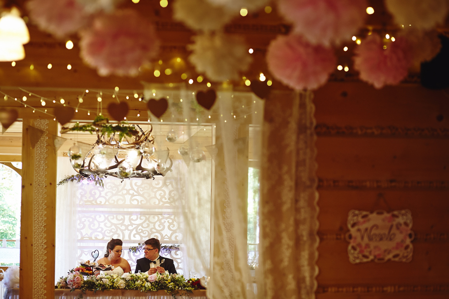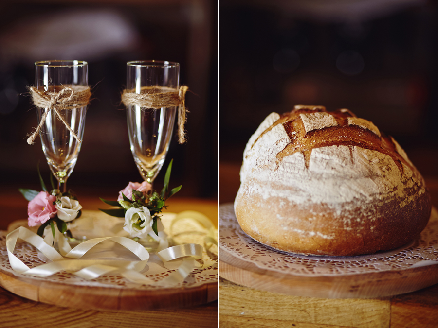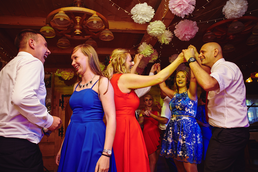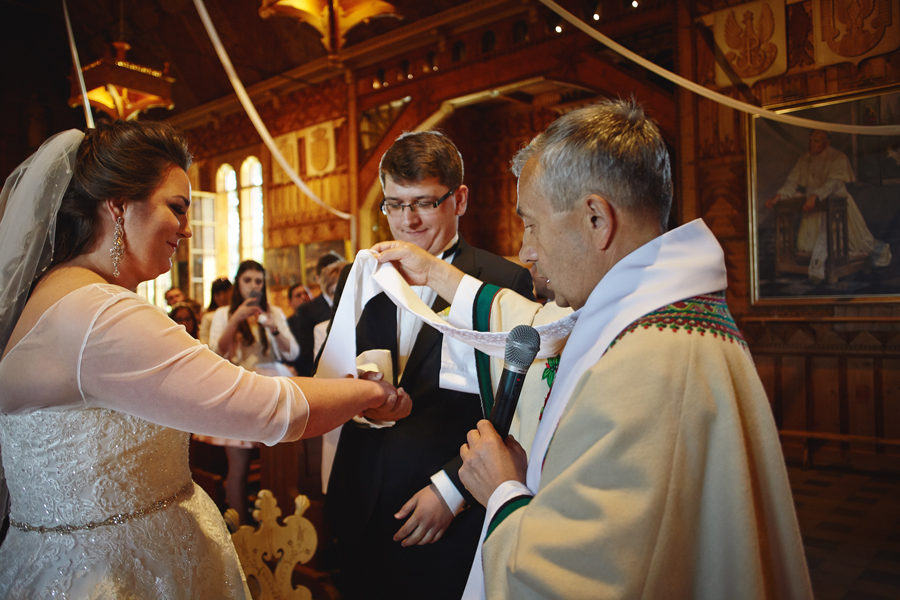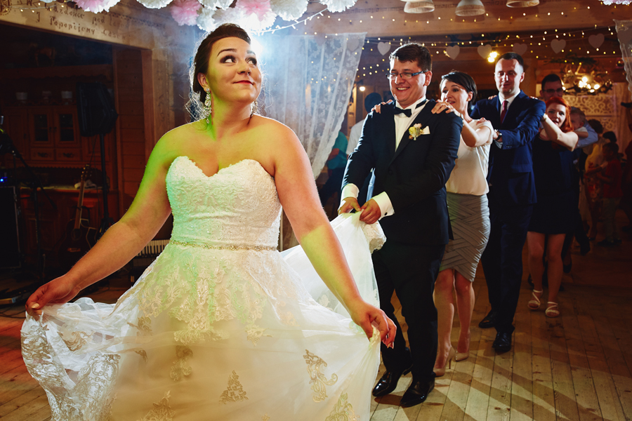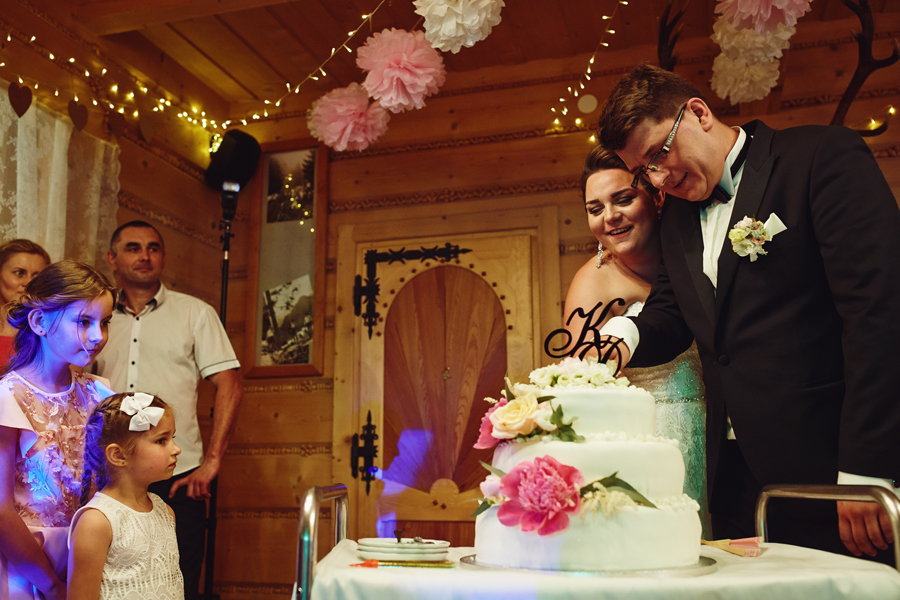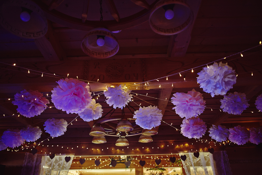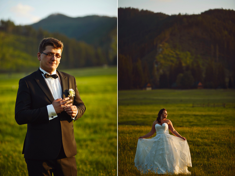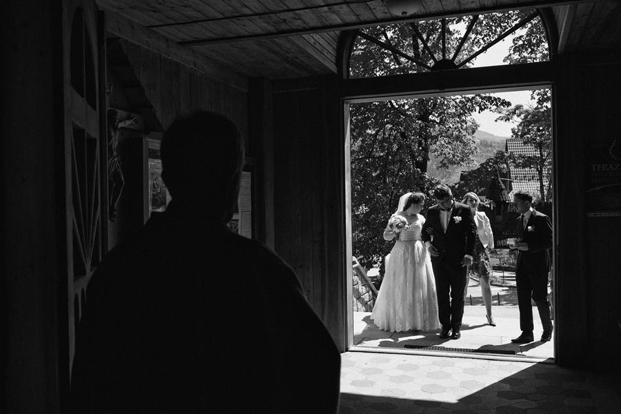 A gdyby tak rzucić wszystko i wyjechać… nie, nie w Bieszczady, w Tatry! Wyjechać po prostu nie oglądając się zupełnie na to, że jest się góralem… ale ze Śląska! Tak właśnie postanowili zrobić Kasia i Daniel. Zagrali va banque, nie pozostawiając rodzinie wyboru, ale fundując im w zamian weekend wrażeń u podnóży Tatr. Wybór położonej w Kościelisku Gazdówki pod Lasem na miejsce wesela oraz pięknego, zabytkowego, drewnianego kościółka na miejsce ceremonii ślubnej, był tyleż zaskakujący, co i niezwykle konsekwentny pod względem estetycznym. Zaskakujący oczywiście ze względu na odległość, którą musiała przebyć para młoda wraz ze swoimi gośćmi. Konsekwencja estetyczna zaś ujawniła się w drewnianej architekturze obu miejsc, zdobionej motywami kultury ludowej, zaś dekoratorzy dołożyli wszelkich starań, aby ślubne i weselne dekoracje pozostawały w klimacie górskiego wesela.