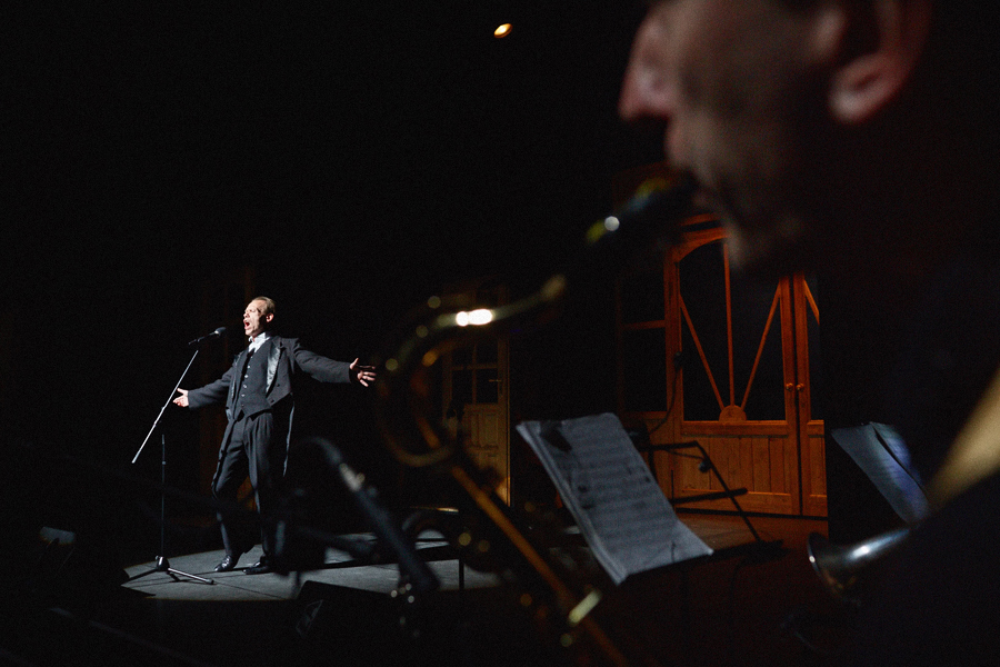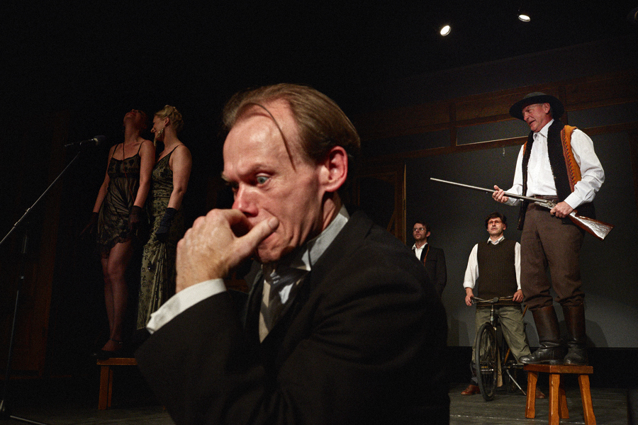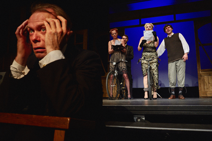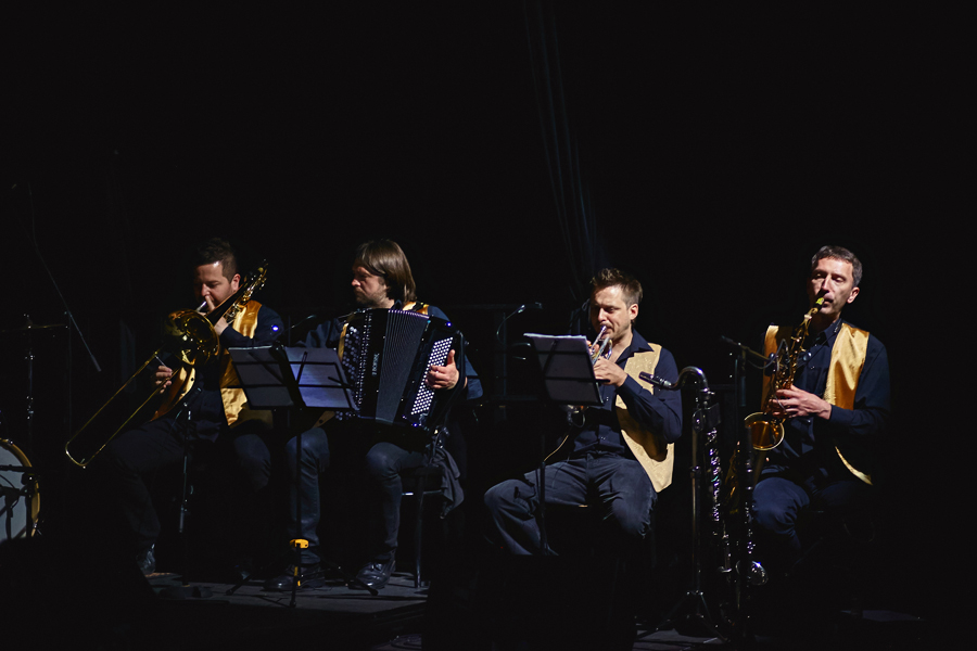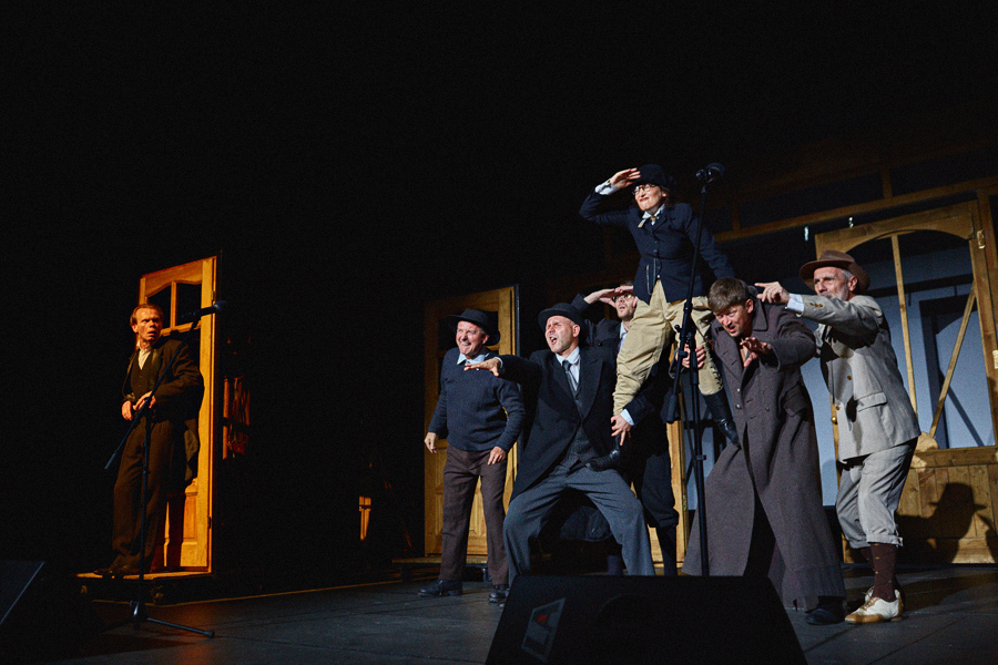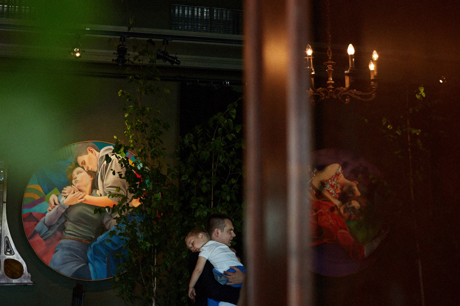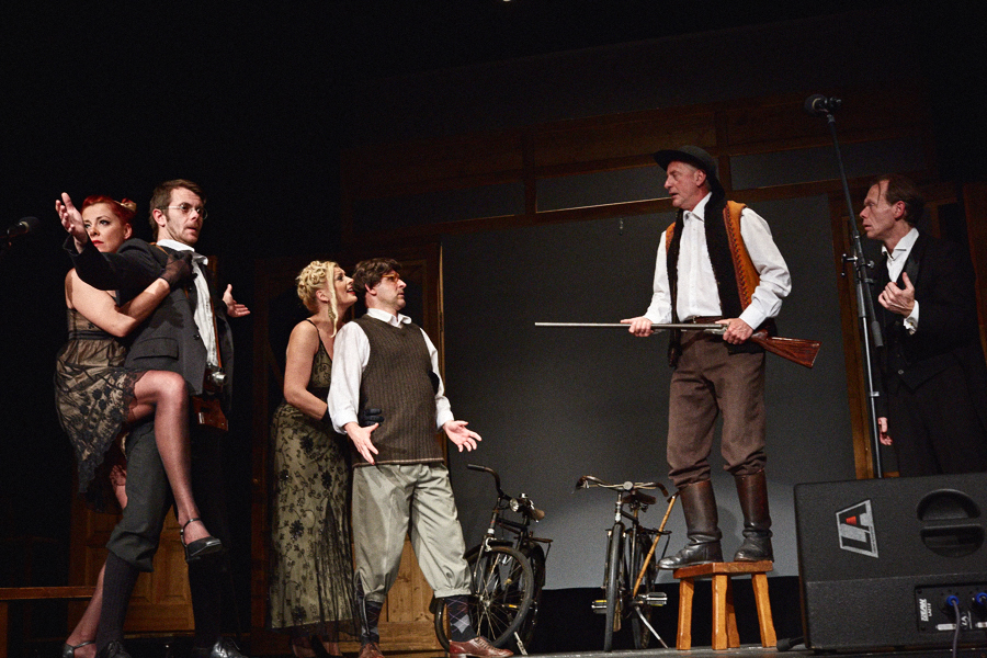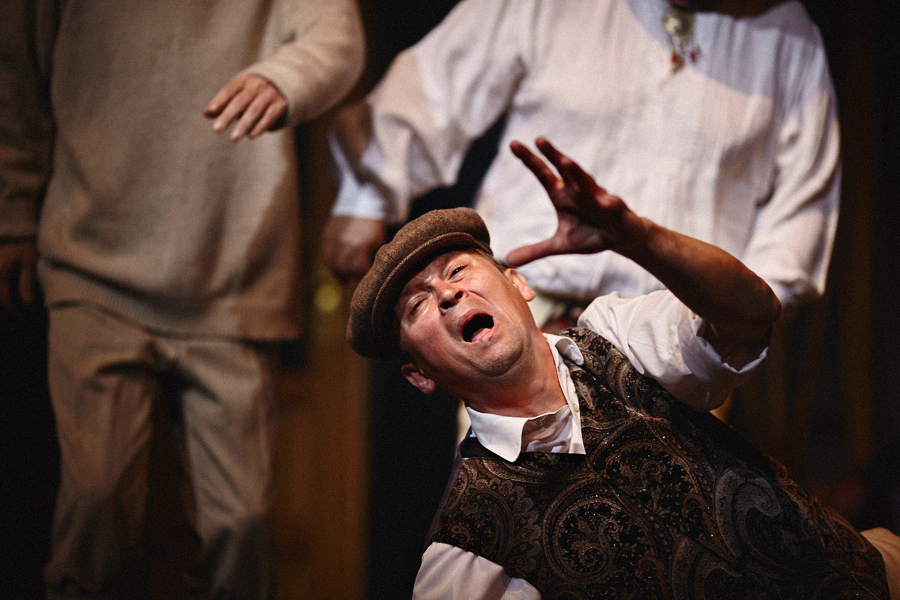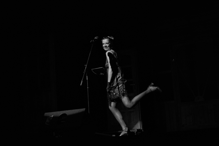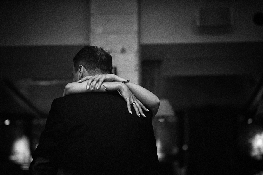 Do samego końca nie było wiadomo, jak to wszystko będzie wyglądało, kiedy dokładnie będzie ślub, jak będzie rozwiązana kwestia oświetlenia, jak my będziemy mogli się poruszać, aby zrobić dobre zdjęcia jednocześnie nie zakłócając sztuki. Kto nie widział tej sztuki – ogromnie polecam! Tymczasem my wiedzieliśmy tylko, że będzie tam nadprogramowa scena, scena ślubu pary, która przyjechała odwiedzić Zakopane. Zgromadzeni goście oglądali sztukę nie do końca świadomi, co się zaraz stanie. I wreszcie, ku niemałemu zaskoczeniu wszystkich, stało się. Po ceremonii ślubu Młodożeńcy zasiedli na widowni, by obejrzeć sztukę do końca. Myślę, że oglądając te zdjęcia wiele osób będzie sobie zadawało pytanie, czy to rzeczywiście był prawdziwy ślub. Sceniczna fikcja mieszała się z rzeczywistością, ale zapewniam, że ślub był najprawdziwszy.