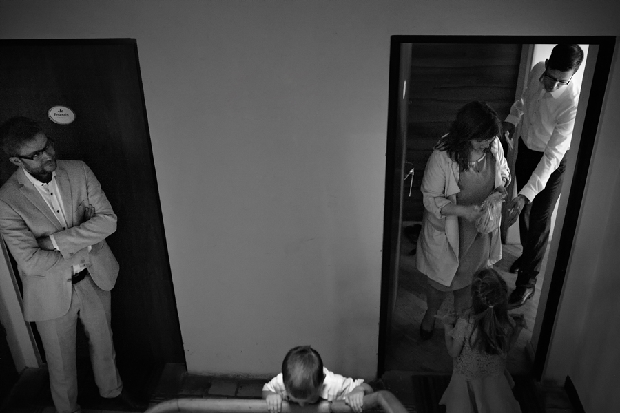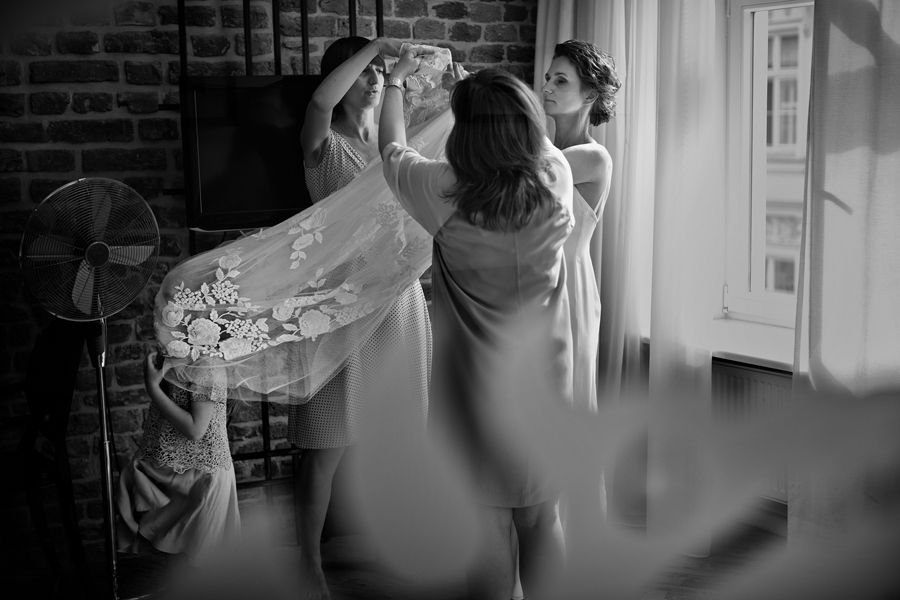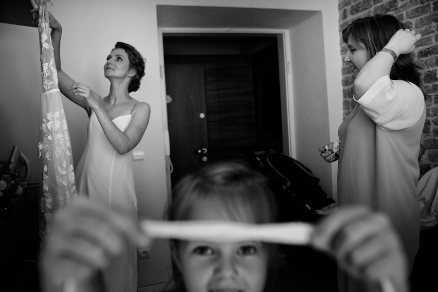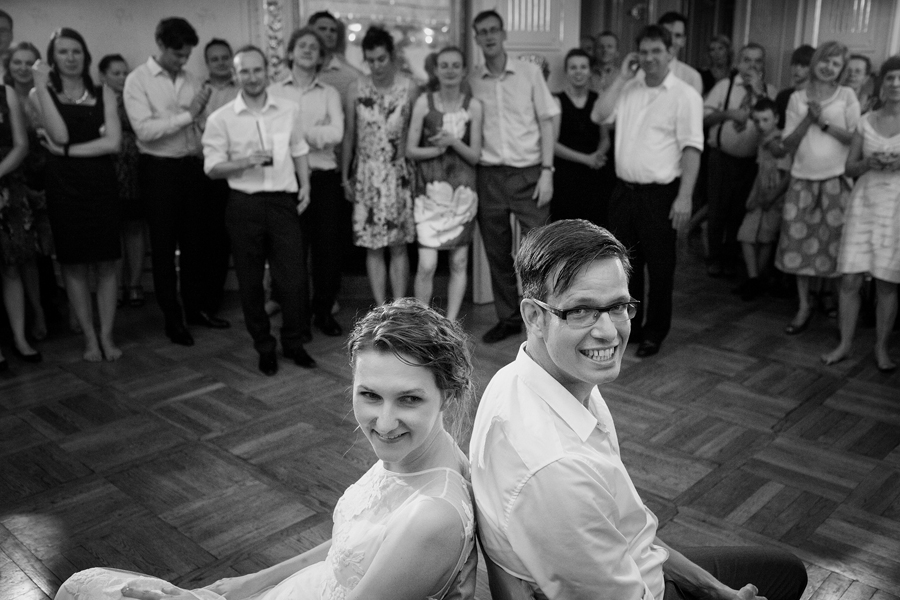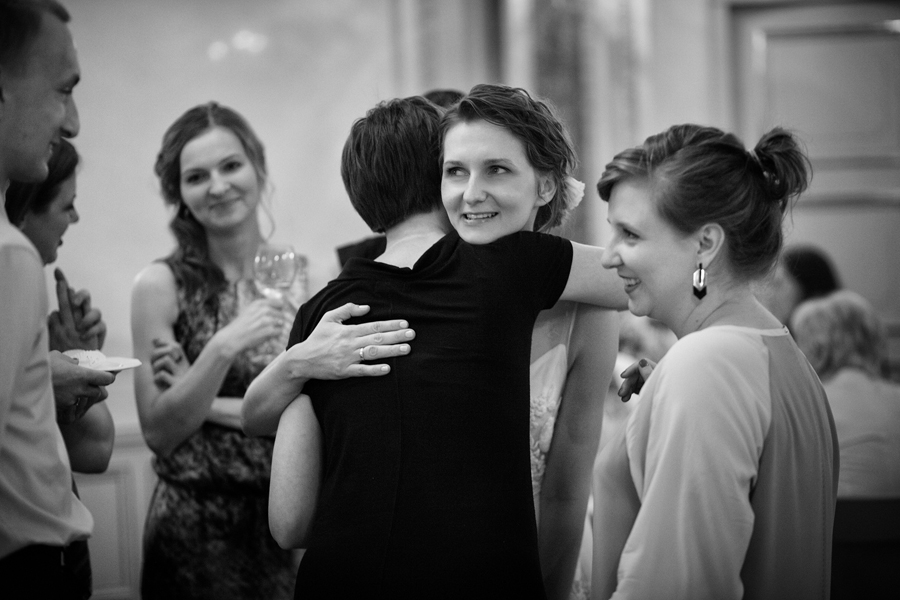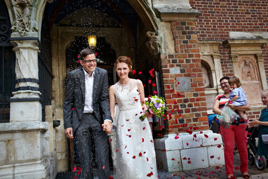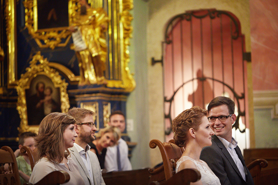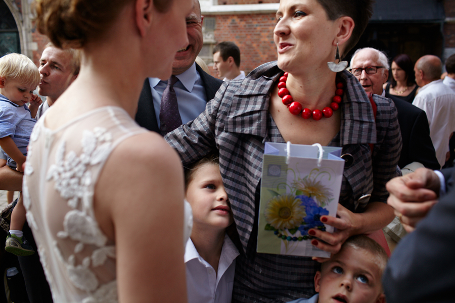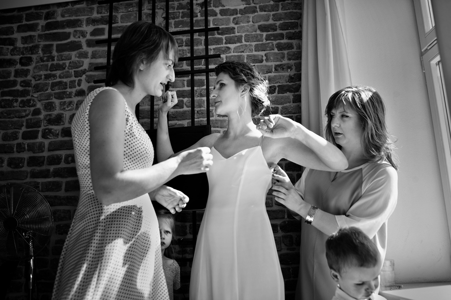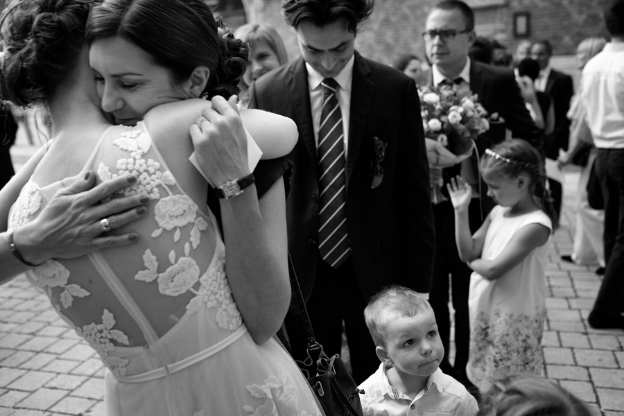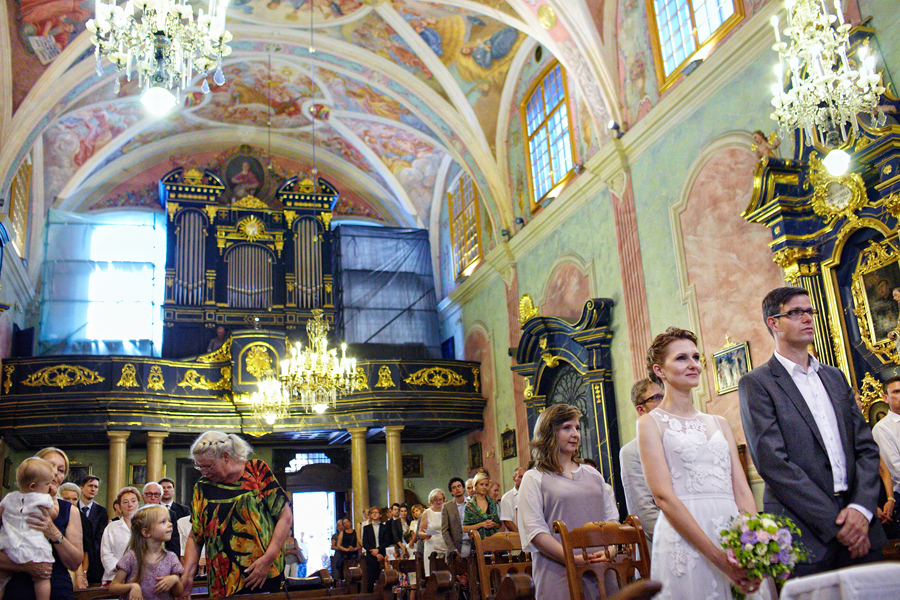 Zdjęcia ślubne są bardzo różnorodne, tak jak różne są gusta par młodych. Dla jednym ważniejsza będzie dokumentacja dnia ślubu, inni skupią się sesji poślubnej, jedni zapragną określonego typu obróbki, inni postawią na naturalność. Na ślub Magdy i Dirka, którzy trafili do nas z polecenia nieocenionego Jacka Tarana (dziękujemy!) bardzo czekaliśmy, z kilku względów. Przede wszystkim cieszyliśmy się na to, że jest to para, której w szczególnym stopniu zależy na reportażu, a w nim na zdjęciach, które będą w sobie niosły jak najwięcej treści – interakcji między ludźmi, emocji,energii, wielu zdarzeń na wielu planach. Cieszyliśmy się, ale z drugiej strony też byliśmy pełni obaw, czy te relacje, emocje, energia faktycznie będą nam towarzyszyły tego dnia – tego bowiem nie da się zrobić w photoshopie. Rodzina i przyjaciele Magdy i Dirka postarali się jednak, aby dzień ten był istną eksplozją wydarzeń. Zaś naszą jedyną troską było to, żeby być wszędzie na czas i wszystko, co się działo, zamknąć w dobrym kadrze. I, by zdjęcia z tego dnia opowiadały przede wszystkim o ludziach, i by mówiły o nich szczerze i z szacunkiem.