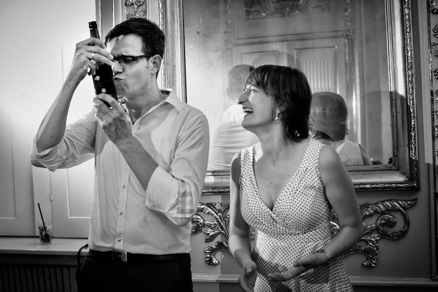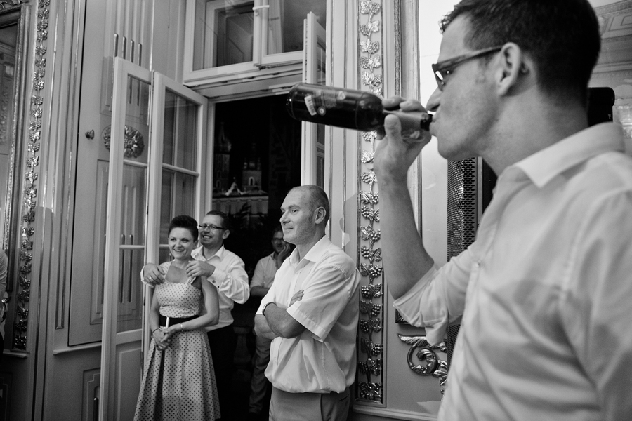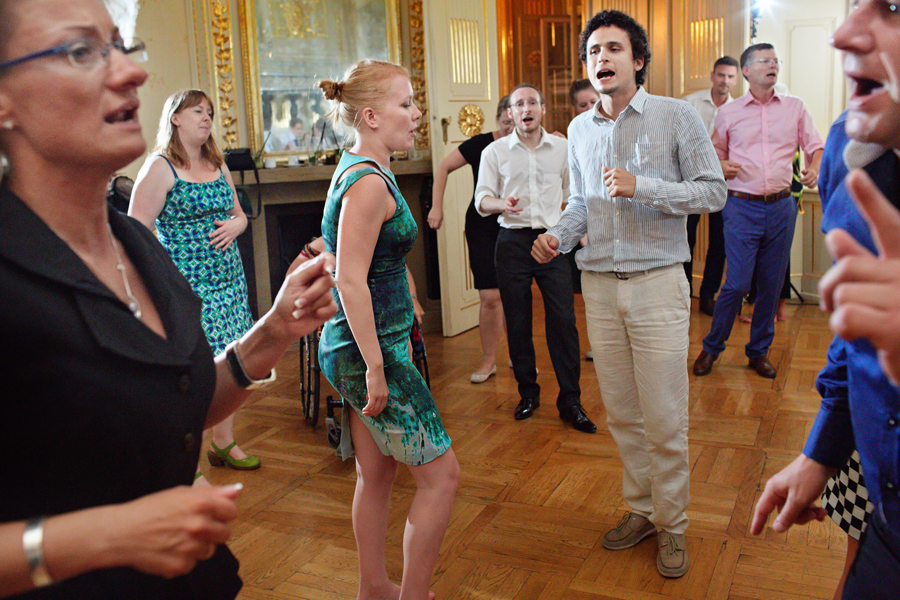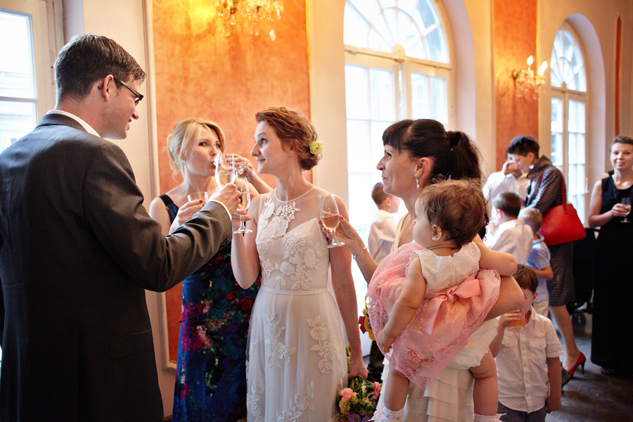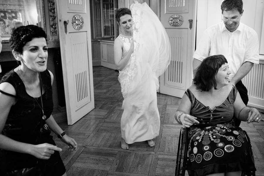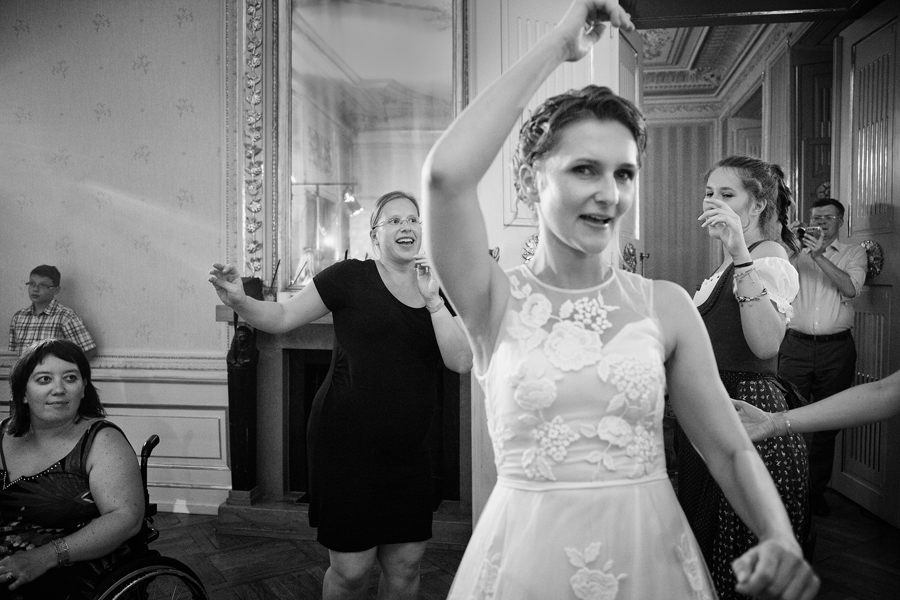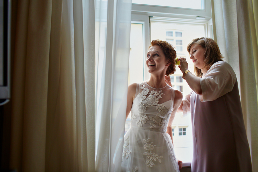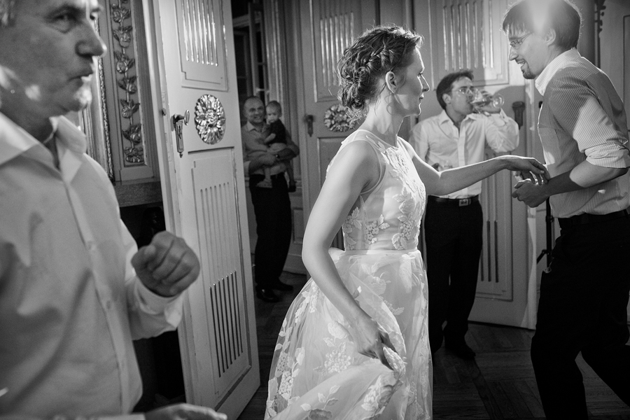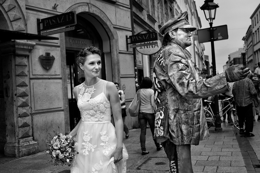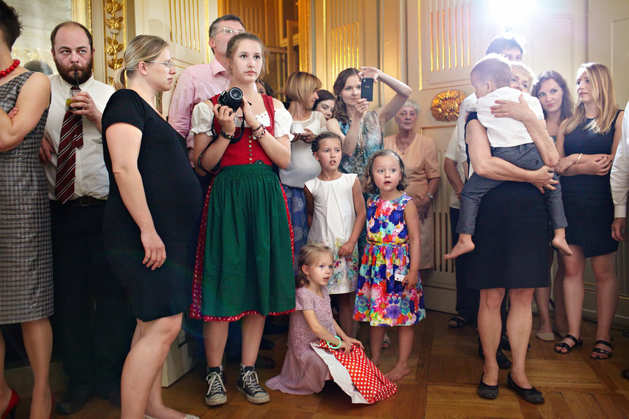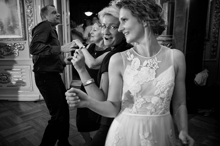 Zdjęcia ślubne są bardzo różnorodne, tak jak różne są gusta par młodych. Dla jednym ważniejsza będzie dokumentacja dnia ślubu, inni skupią się sesji poślubnej, jedni zapragną określonego typu obróbki, inni postawią na naturalność. Na ślub Magdy i Dirka, którzy trafili do nas z polecenia nieocenionego Jacka Tarana (dziękujemy!) bardzo czekaliśmy, z kilku względów. Przede wszystkim cieszyliśmy się na to, że jest to para, której w szczególnym stopniu zależy na reportażu, a w nim na zdjęciach, które będą w sobie niosły jak najwięcej treści – interakcji między ludźmi, emocji,energii, wielu zdarzeń na wielu planach. Cieszyliśmy się, ale z drugiej strony też byliśmy pełni obaw, czy te relacje, emocje, energia faktycznie będą nam towarzyszyły tego dnia – tego bowiem nie da się zrobić w photoshopie. Rodzina i przyjaciele Magdy i Dirka postarali się jednak, aby dzień ten był istną eksplozją wydarzeń. Zaś naszą jedyną troską było to, żeby być wszędzie na czas i wszystko, co się działo, zamknąć w dobrym kadrze. I, by zdjęcia z tego dnia opowiadały przede wszystkim o ludziach, i by mówiły o nich szczerze i z szacunkiem.