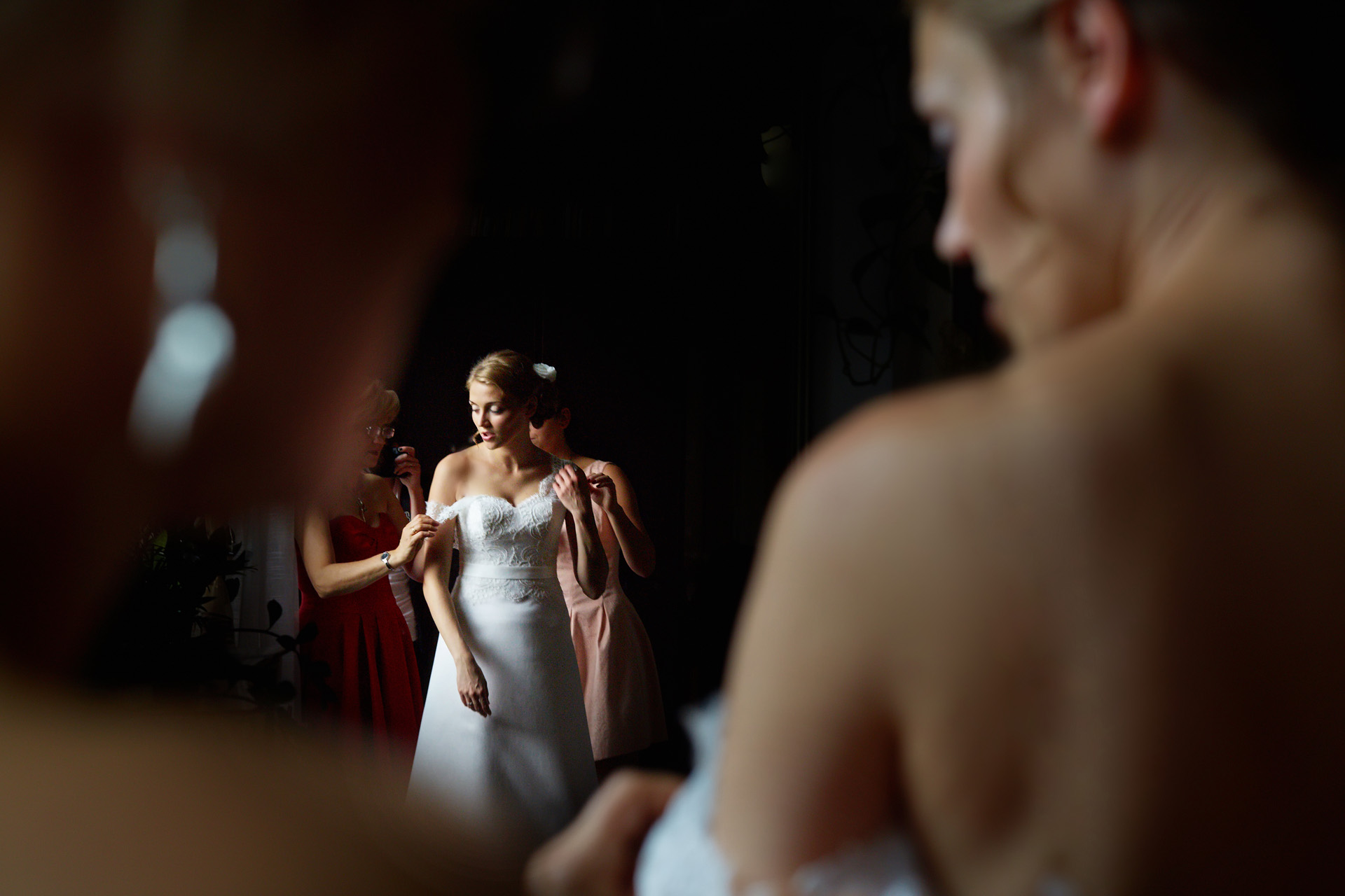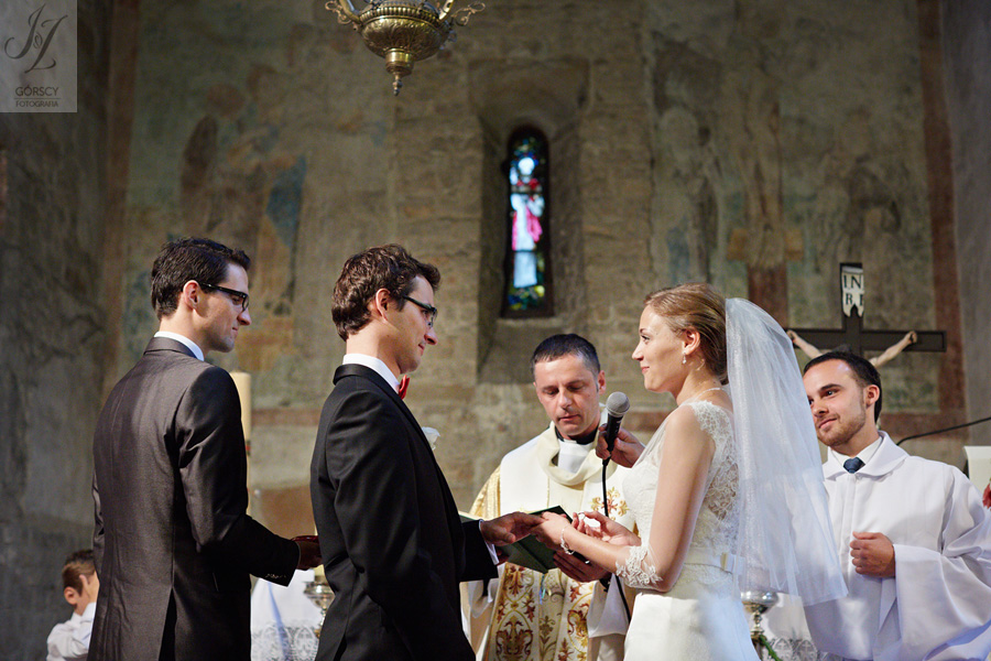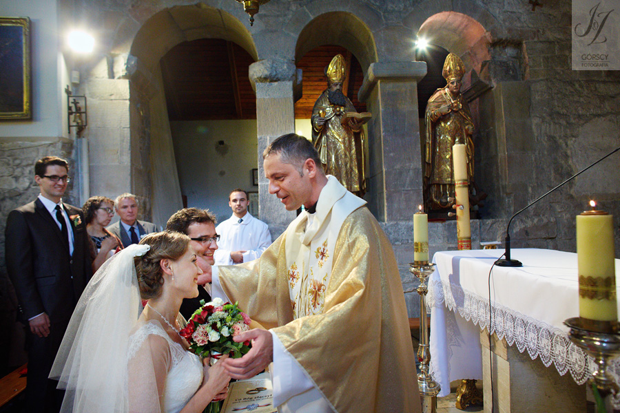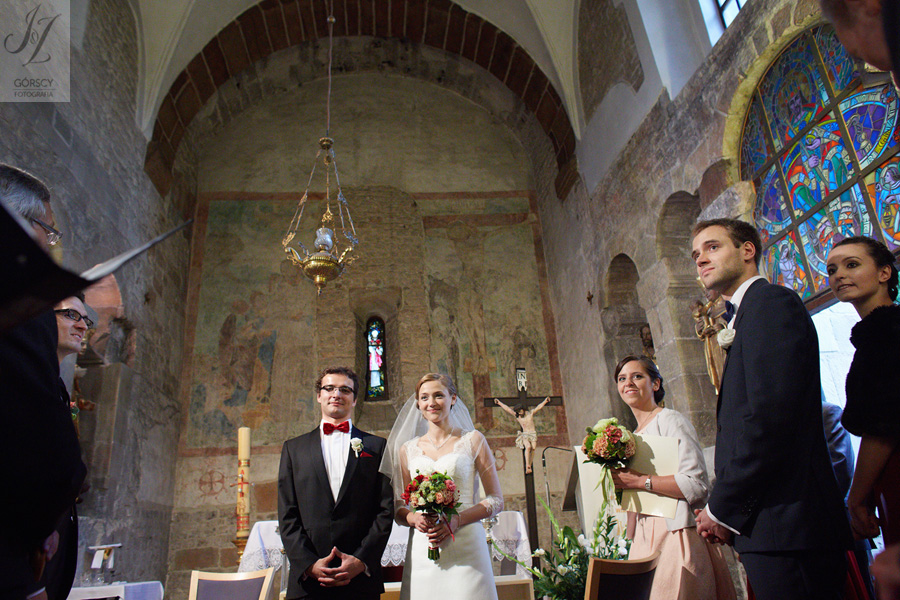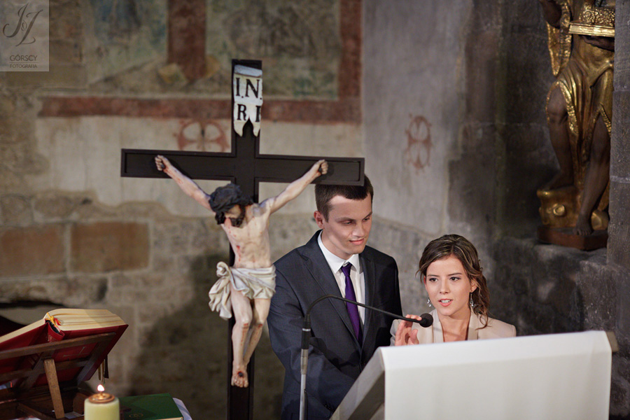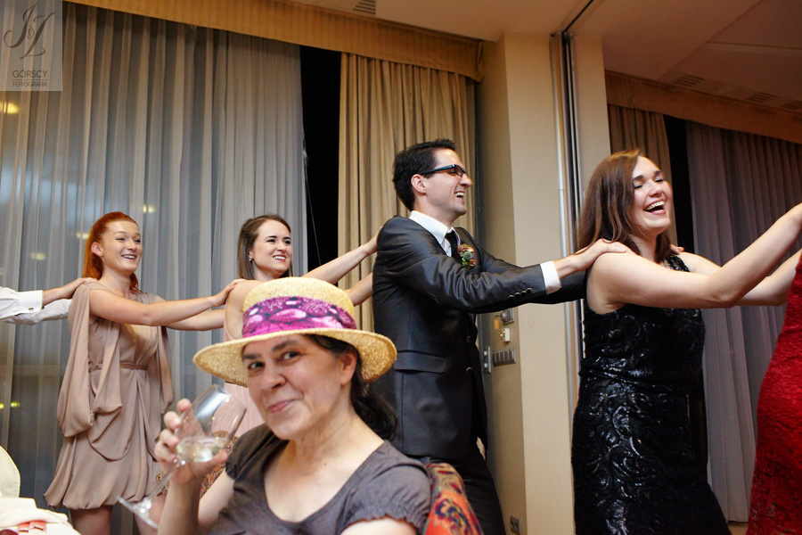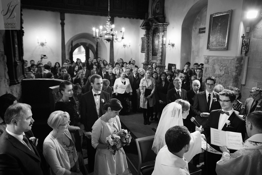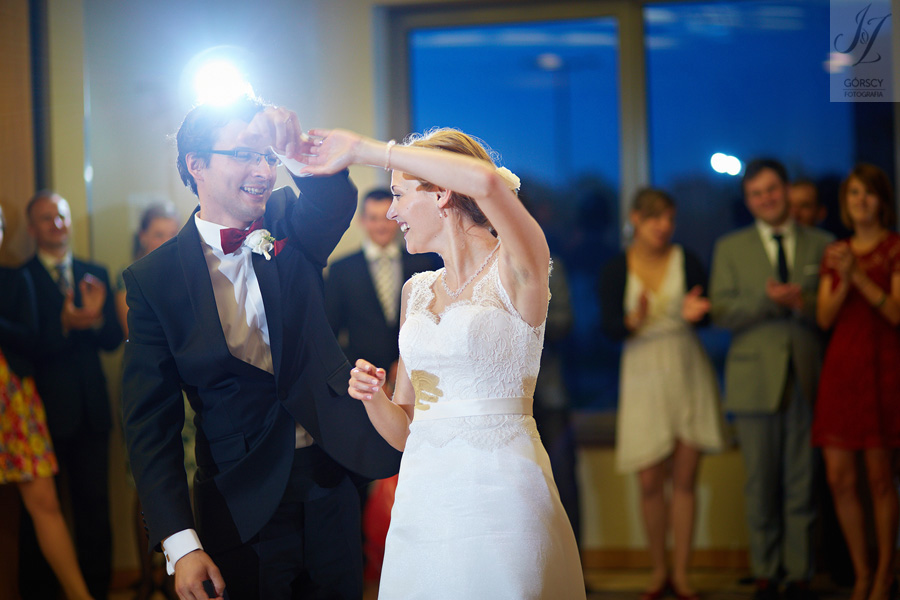 Lipiec. Deszczowy, bo, jak wiadomo, mamy w naszym kraju dwie pory roku: zimę i porę deszczową. No więc tak naprawdę wszystko zaczęło się zimą, kiedy fotografowaliśmy ślub Pauliny i Michała, który miał miejsce w Bazylice Mariackiej. Ślubu udzielał przyjaciel Młodej Pary – ksiądz Andrzej Jeleń, a nasza, jak się okazało, przyszła panna młoda, Magda, śpiewała w chórze. Na weselu Pauliny i Michała właśnie poznaliśmy bliżej Magdę i Kubę oraz całą, niezwykłą i pełną energii grupę przyjaciół. Ogromnie się ucieszyliśmy, że będziemy mieli okazję spotkać się ponownie na ich ślubie. Po raz kolejny uczestniczyliśmy w niezwykłej Mszy św. w kościele Najświętszego Salwatora, który na tamten moment zamienił się w dom. Mały dom, który musiał pomieścić ponad sto osób, trzeba go było więc nieco przemeblować, poprzenosić kościelne ławki, by zrobić miejsce dla chóru, w którym Panna Młoda po raz pierwszy nie zaśpiewała, bo tym razem miała przed sobą inne zadania. Ślubu znów udzielił ksiądz Andrzej Jeleń i po raz kolejny była to przepiękna ceremonia, pełna wzruszeń i serdecznej, rodzinnej atmosfery. Nawet ponura aura przestała mieć jakiekolwiek znaczenie, tym bardziej, że Młoda Para miała na nią specjalny sposób. W czasie życzeń rozdała gościom czerwone balony-serca, które ożywiły kolorem wszystko dookoła. A potem, tramwajem, pojechały z nami na energetyczne wesele.