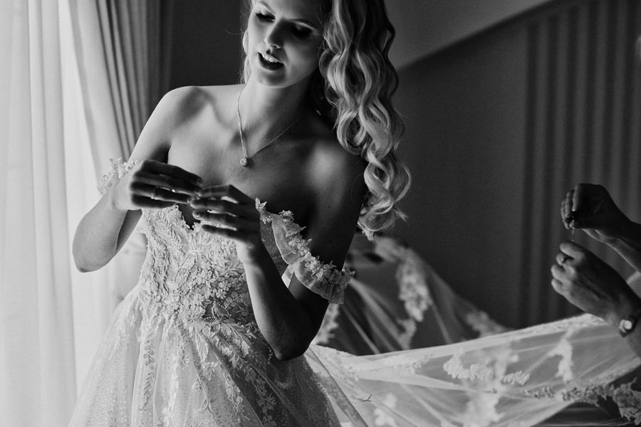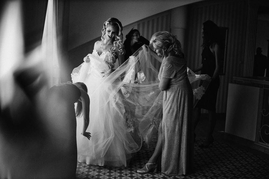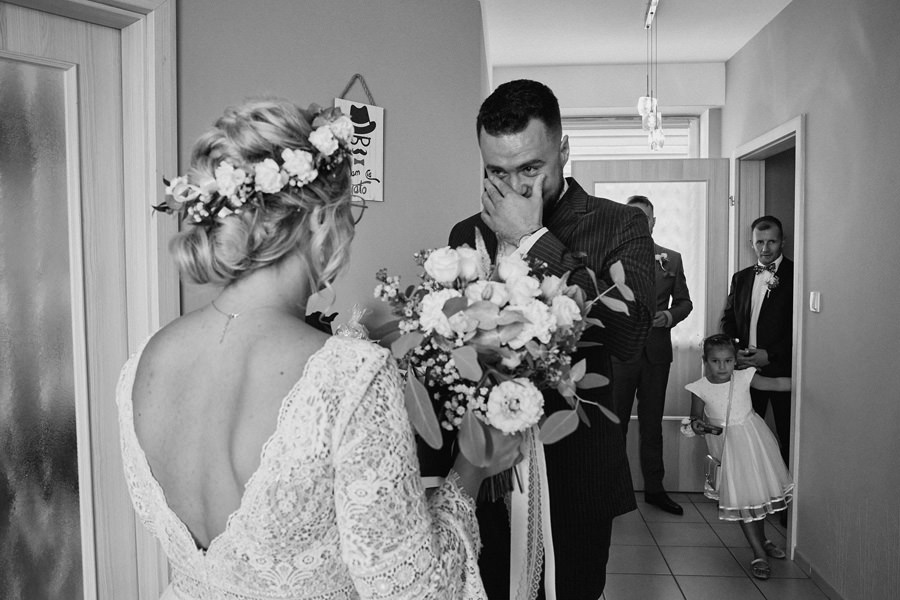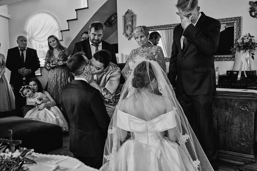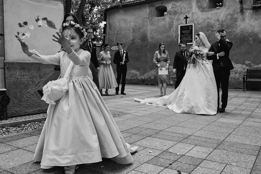 To jest dopiero ciekawy dylemat. Nigdy nie zapomnę, jak po którymś weselu żegnaliśmy się z parą młodą i ich rodzicami. Tata panny młodej mówi wesoło: „No, to mam nadzieję, że będą piękne zdjęcia”. Na co mój mąż, obdarzony angielskim poczuciem humoru mówi: „To teraz mi pan to mówi??”. Na twarzy ojca niepokój, reszta skonsternowana, ja też czekam w napięciu. A mój mąż kontynuuje: „Na pewno są dobre. Ale czy są piękne, to się okaże” ;). No właśnie – czasem zdarza się, że najlepsze są też przy okazji najpiękniejsze. Ale zdecydowanie to nie piękno decyduje o tym, czy dana fotografia jest dobra czy nie. Treść, światło, kompozycja, kadr – to są elementy decydujące o jakości zdjęcia. Idąc tym tokiem myślenia – najlepsze zdjęcia ślubne niekoniecznie wykonamy w najpiękniejszych okolicznościach.