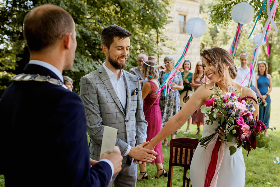 Moi drodzy, to jest fakt. Śluby i wesela ewoluują, stają się naprawdę coraz piękniejsze. Dbałość o stronę wizualną ogromnie nas cieszy, choć wiadomo, że nic nie zastąpi prawdziwych emocji, niecodziennych sytuacji i nietuzinkowych kadrów. To ostatnie zależy oczywiście już od fotografa. Niemniej jednak w pięknym otoczeniu wspaniale się pracuje. Dekoratorzy, floryści, obsługa lokali weselnych naprawdę spisują się znakomicie. Odwiedzenie takich miejsc jak Pałac Goetz, Zamek Kliczków, czy Impresja Zabrze jest zawsze miłe, ale w tym roku odwiedziliśmy też mnóstwo całkiem nowych miejsc. W nich również powstały nasze najlepsze zdjęcia ślubne 2021. Niektórych z nich nie ma na „mapie sal weselnych” – to same pary młode i ich bliscy zaaranżowali je tak, by stworzyć niezwykłe otoczenie dla wydarzeń ślubno-weselnych. Możemy zatem złościć się na Instagram, Pinterest czy inne miejsca z inspiracjami, ale to jednak działa. Zdecydowanie ubogaca wizualną stronę ślubów i wesel.