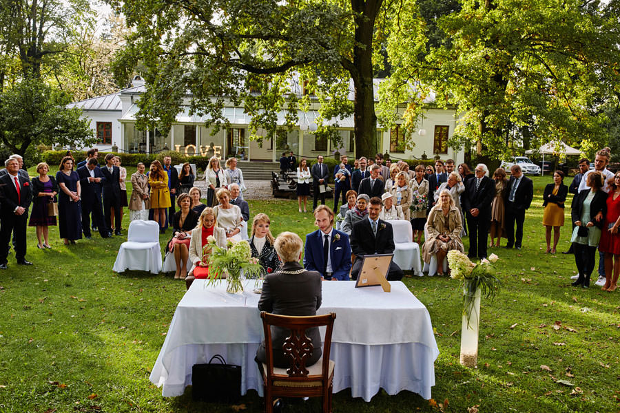 Jego niewątpliwą zaletą jest również piękny park, w którym można zorganizować ślub plenerowy. Obok znajdują się również przepiękne zabudowania gospodarcze, drewniane, pomalowane na zielono, które tworzą absolutnie zachwycające tło do zdjęć. Można tam z powodzeniem zrobić w krótkim czasie sesję w dniu ślubu.