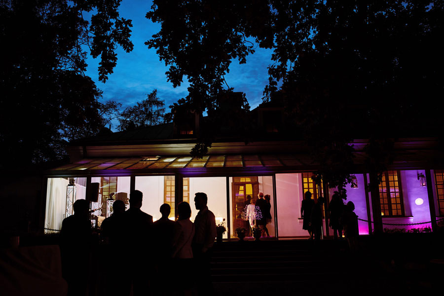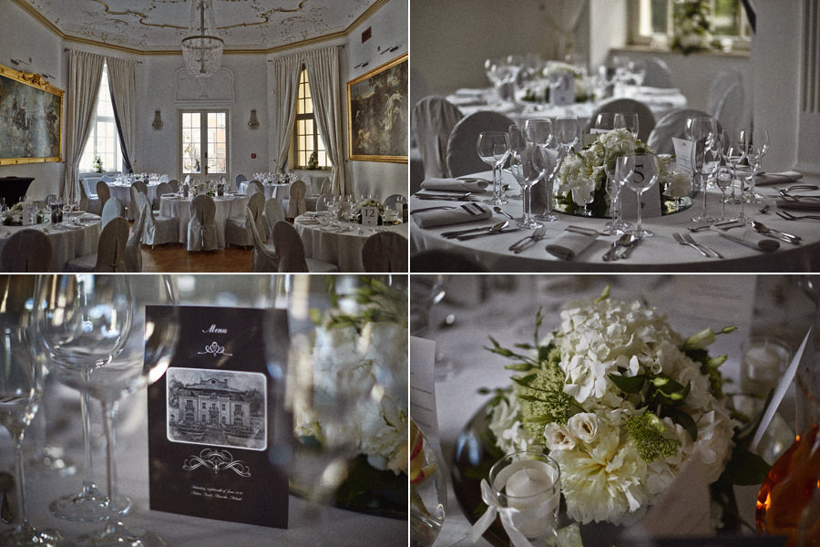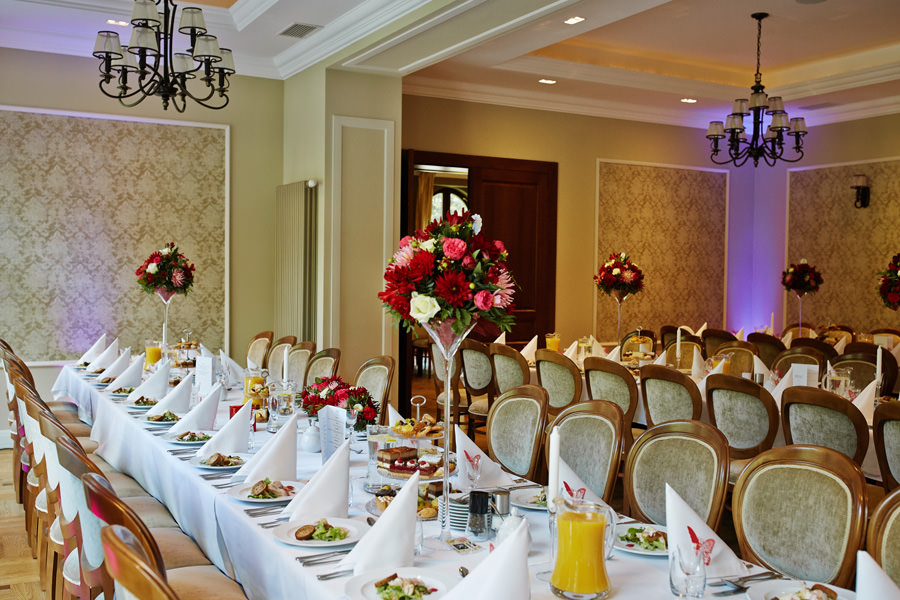 Otóż – moje doświadczenie pokazuje, że goście uwielbiają rozmawiać ;). I niczego tak sobie nie cenią, jak właśnie tej możliwości. A zapewnia im to intymna atmosfera komnat czy sal. Wielokrotnie na dużych salach, gdzie wszystko jest w jednym miejscu, słyszałam prośby starszych gości, by zespół ściszył instrumenty. No cóż – to nie zawsze jest możliwe. Za to rozmowa w mniejszych pomieszczeniach jest czystą przyjemnością. A jeśli ktoś będzie chciał popatrzyć na parkiet – to przyjdzie sobie potańczyć. Nie bójmy się i nie myślmy za naszych gości. Oni znakomicie poradzą sobie sami. Myślmy za to o sobie i w swoich wyborach kierujmy się własnym smakiem estetycznym. Dobrze wchodzić w nowe życie w zgodzie z samym sobą :).