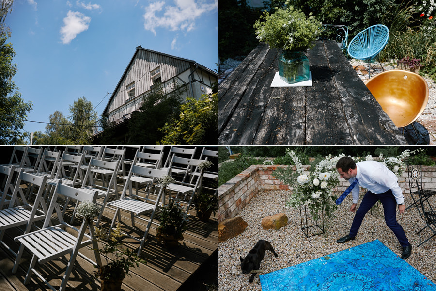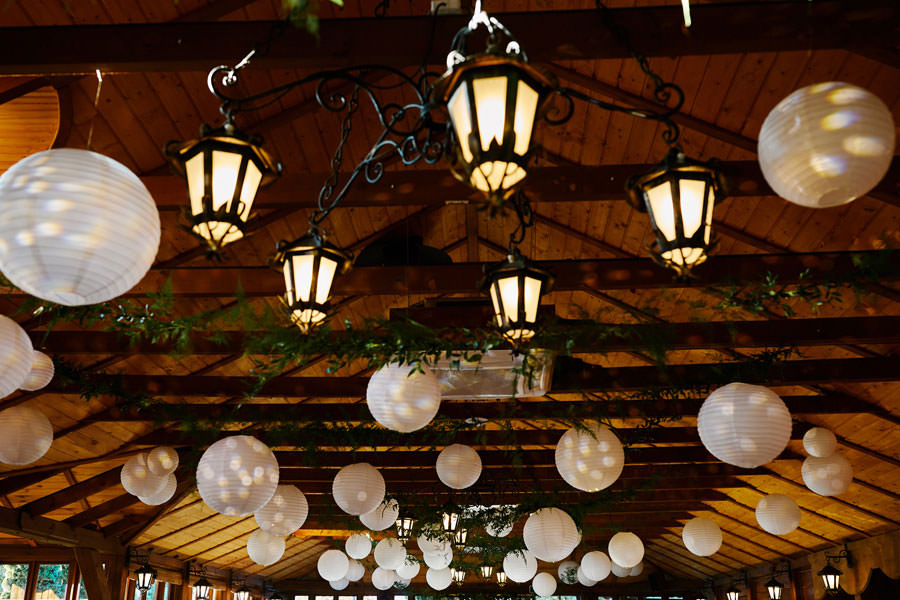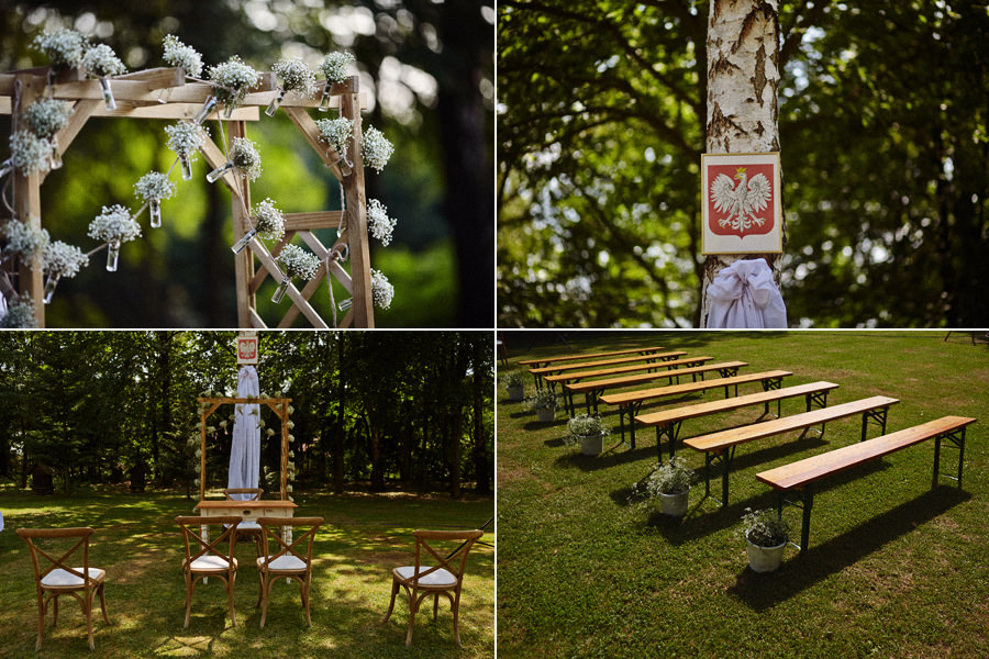 Jest jeszcze jeden wielki atut – mianowicie przepiękne otoczenie na zorganizowanie ceremonii ślubnej w plenerze. Obok chaty jest piękna, biała, drewniana altana. Jest konstrukcja również jest ażurowa, lekka i pasuje klimatem do chaty. Jeśli jednak Waszym marzeniem nie jest ślub w plenerze, bo pobieracie się w kościele, wówczas altanka posłużyć może zupełnie innym celom. Zdecydowanie sprawdzi się jako sceneria krótkiej sesji w dniu ślubu, a także jako tło pamiątkowych zdjęć rodzinnych.