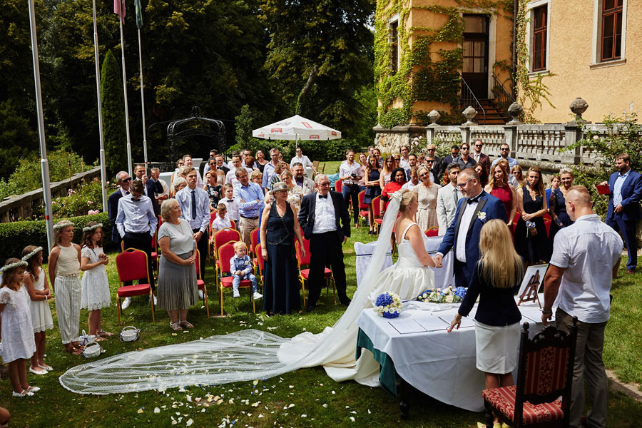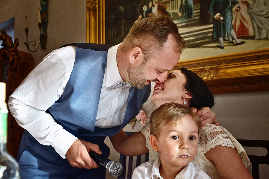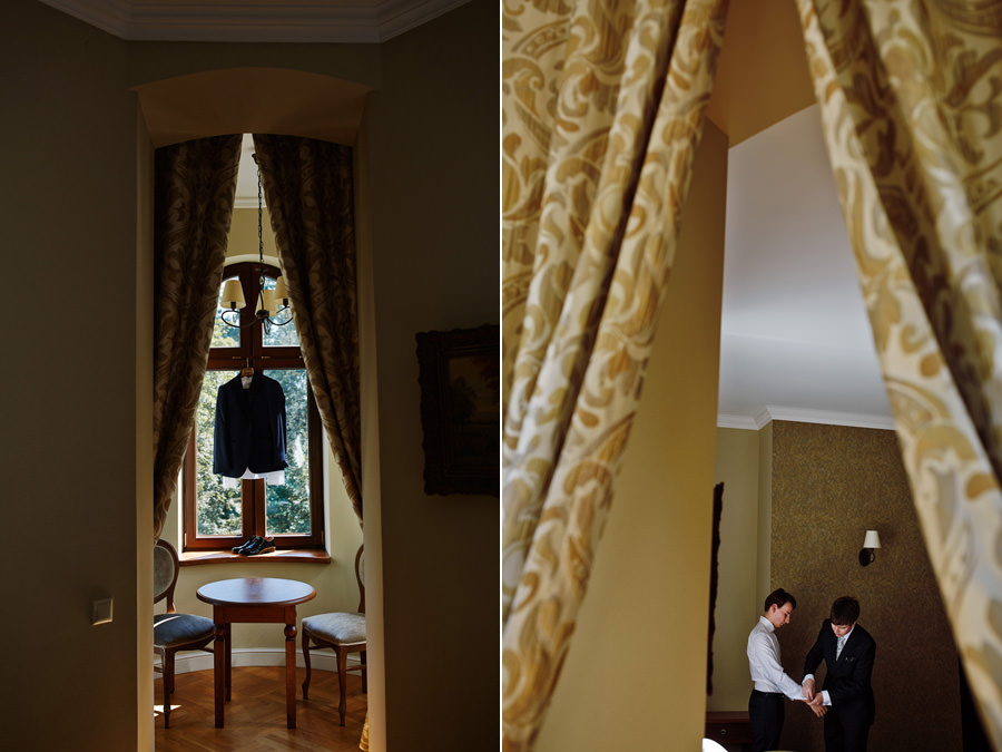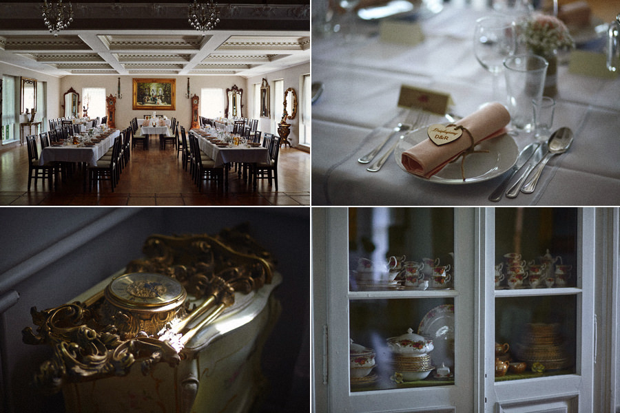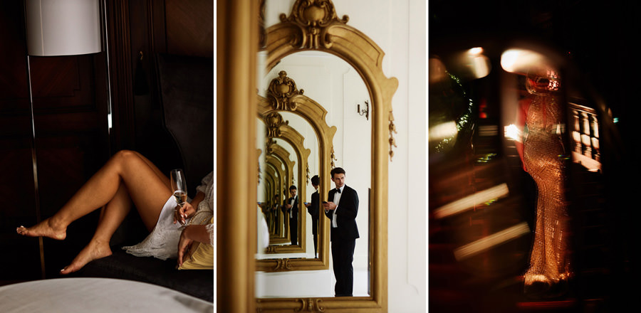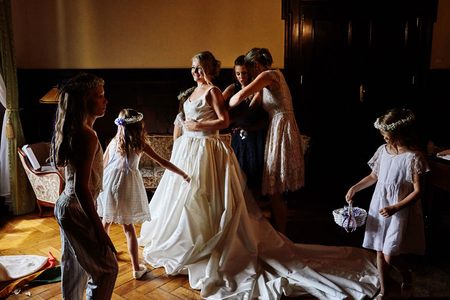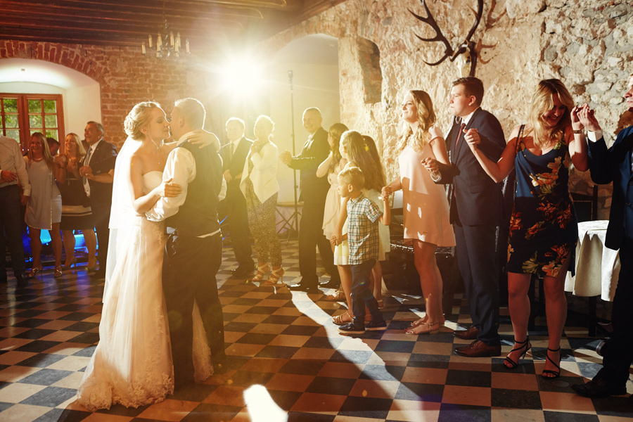 Tymczasem dzień ślubu na Zamku w Kliczkowie to piękne wydarzenie już od samych przygotowań. Przestronne komnaty zamkowe na przygotowania, a w nich to, co fotograf kocha najbardziej, czyli niezwykłe, modelujące, barokowe światło. Na dziedzińcu zamkowym jest możliwość zorganizowania ślubu plenerowego, co jest dodatkowym atutem. Natomiast wesele – trzeba to wprost powiedzieć – sala balowa na zamku w Kliczkowie po prostu zapiera dech.