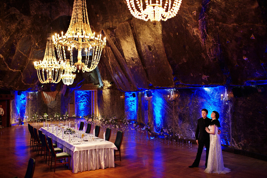 Na liście „najpiękniejsze miejsca na wesele” nie mogło zabraknąć właśnie jego. To jest miejsce ze wspaniale wykorzystanym potencjałem. Kopalnia Soli „Wieliczka” ma swoje miejsce na Liście Światowego Dziedzictwa Kulturowego i Przyrodniczego UNESCO. Co rok odwiedzają ją rzesze turystów. Nie każdy jednak wie, że można tu również zorganizować niezapomniane przyjęcie weselne. A nawet ślub! Śluby najczęściej organizowane są w reprezentacyjnej Kaplicy św. Kingi, która mieści się 101 metrów pod ziemią. Mowa oczywiście o ślubach kościelnych. Jeśli jednak organizuje się ślub cywilny lub humanistyczny, doskonałym miejscem jest Komora Jana Haluszki II.