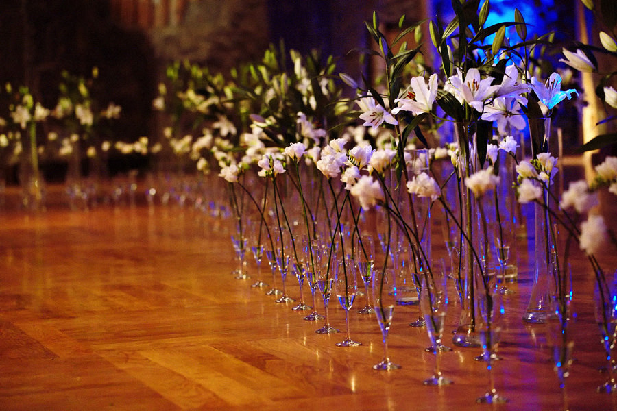 Poniższe zdjęcia to realizacje konsultantek z Raz w Życiu. Na jednym z tych wesel dziewczyny wyczarowały łąkę w środku zimy – 300 kwiatów w delikatnych wazonach w kształcie kieliszków ozdobiło podłogę komory Jana Haluszki, tworząc przepiękną łąkę i niezapomniany klimat.