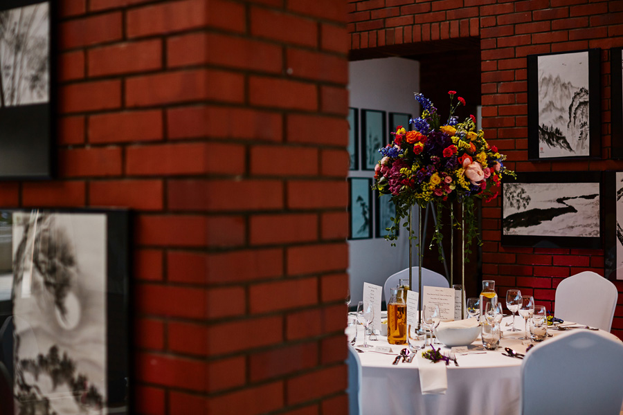 Niemożliwe? Ależ zupełnie możliwe. Skoro można było nawet pobrać się na scenie teatru Witkacy, można również urządzić wesele w muzeum. Podobnie było zresztą w przypadku wpisu z Kopca Kościuszki, choć tu charakter muzeum jest oczywiście zupełnie inny. Nowoczesna bryła muzeum, w środku cegła, szkło i wysoki połysk. Nowocześnie i niezwykle stylowo. Ściany przyozdabiają piękne ryciny, a niezwykle kolorowe kwiatowe kompozycje ocieplają wnętrze.