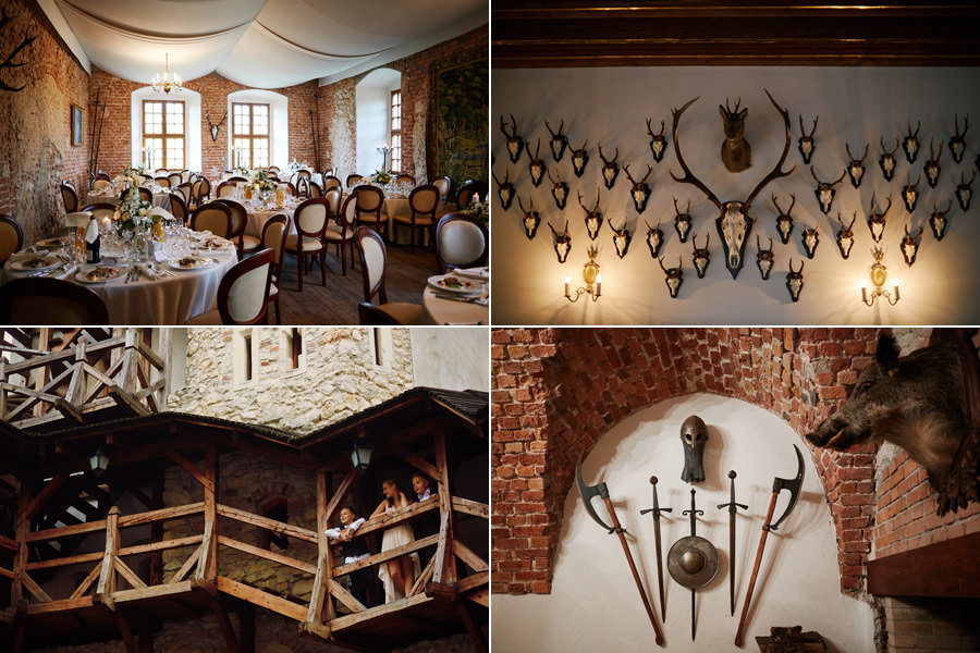 Mam wrażenie, że najpiękniejsze miejsca na wesele w Polsce to niekończąca się lista, bo piszę i piszę, a końca nie widać :). Kolejnym niezwykłym miejscem, które swoją historią sięga do XIV wieku, jest położony pod Krakowem Zamek Korzkiew. Miejsce to niezwykle fotogeniczne. Malowniczo położone, na wzgórzu, w otoczeniu drzew, posiada dziedziniec zewnętrzny i położony wyżej dziedziniec wewnętrzny. Do dyspozycji gości oddaje wszystkie sale, położone na parterze i na piętrze zamku. Sale na piętrze to Sala Królewska i Sala Łowczego – jedna z nich przeznaczona jest na stoły dla gości (mieści 90 osób przy okrągłych stołach), druga zwykle jest bufetem. Ale jeśli gości na przyjęciu jest więcej, również ta druga sala mieści w sobie stoły.