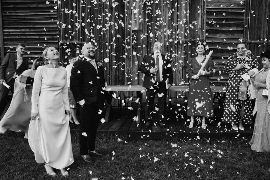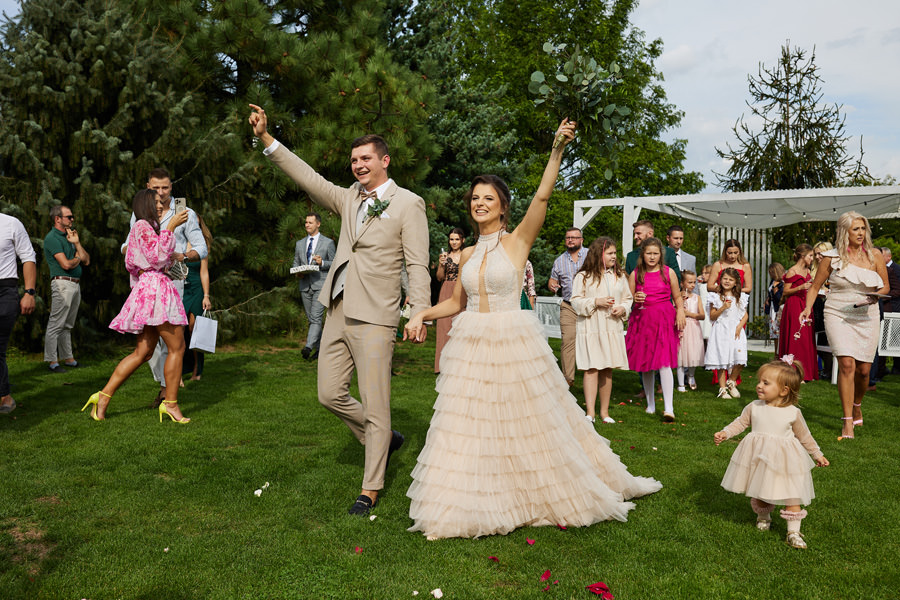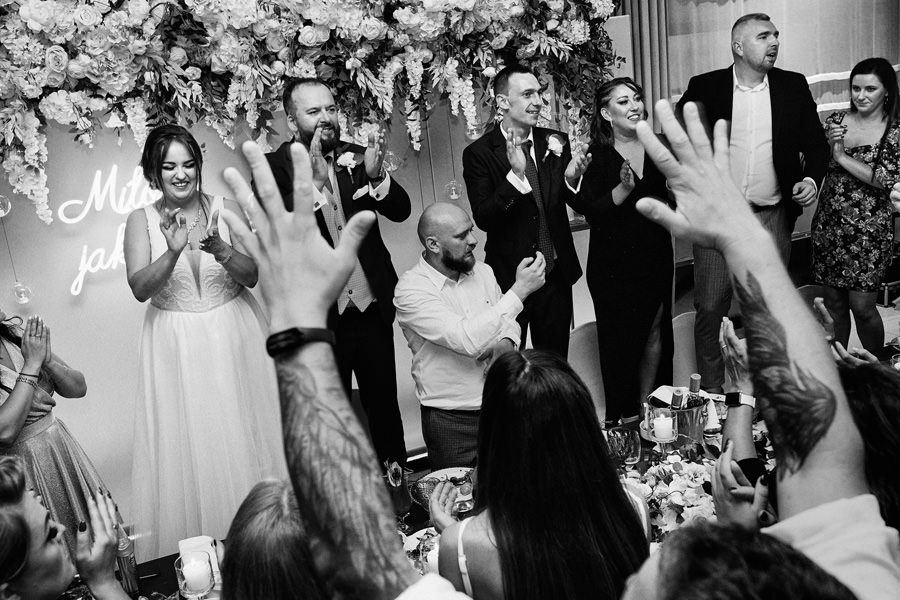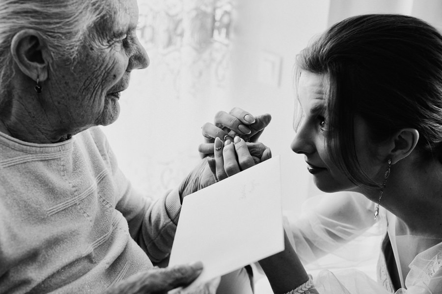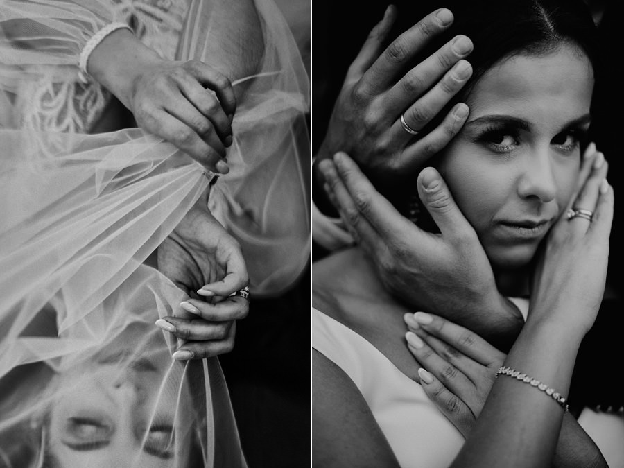 Skoro to podsumowanie, czyli coś, co z założenia pojawia się nie częściej niż raz do roku – przypomnimy, co jest dla nas w tej pracy najistotniejsze. Reportażem ślubnym przywykliśmy nazywać całokształt fotograficznej relacji, która powstanie w dniu ślubu. Mamy więc obszerną kategorię, w której próbuje się pomieścić wszystko. Dokumentowanie wydarzeń, wykonanie zdjęć detali, portretów, zdjęć grupowych. Czasem nawet całych aranżowanych scen. Im dłużej jesteśmy w branży, im większe mamy doświadczenie – tym częściej nachodzi nas myśl, że reportaż ślubny odchodzi do lamusa. Naturalne zdjęcia ślubne, szczere, niepozowane, niestylizowane – rzadko przebijają się przez algorytm social mediów. Zdecydowanie wygrywają sesje stylizowane, portrety, zdjęcia pozowane. Dlatego w naszym podsumowaniu postawiliśmy na naturalność. I dokładnie na to stawiamy też w naszej pracy :).