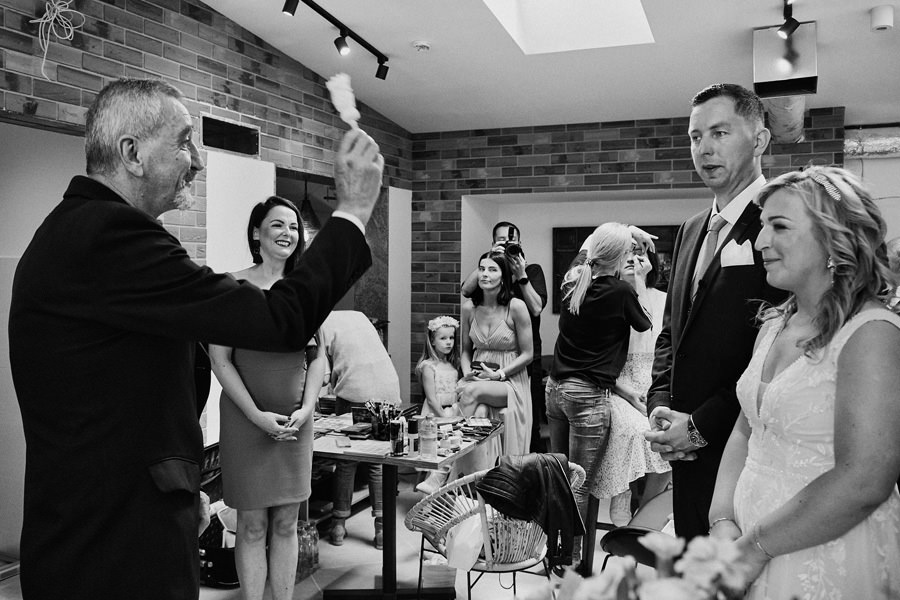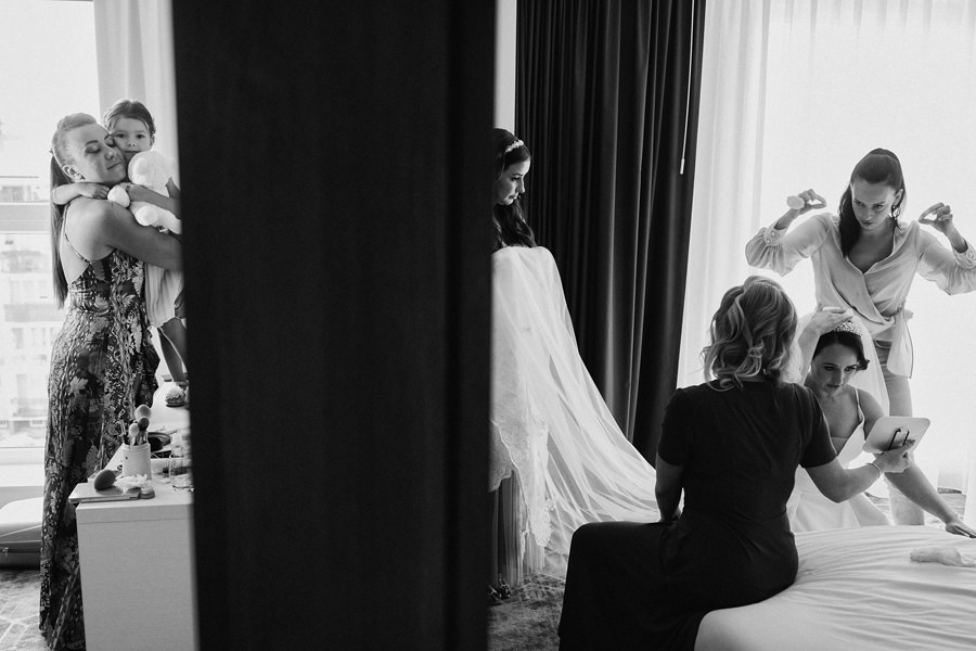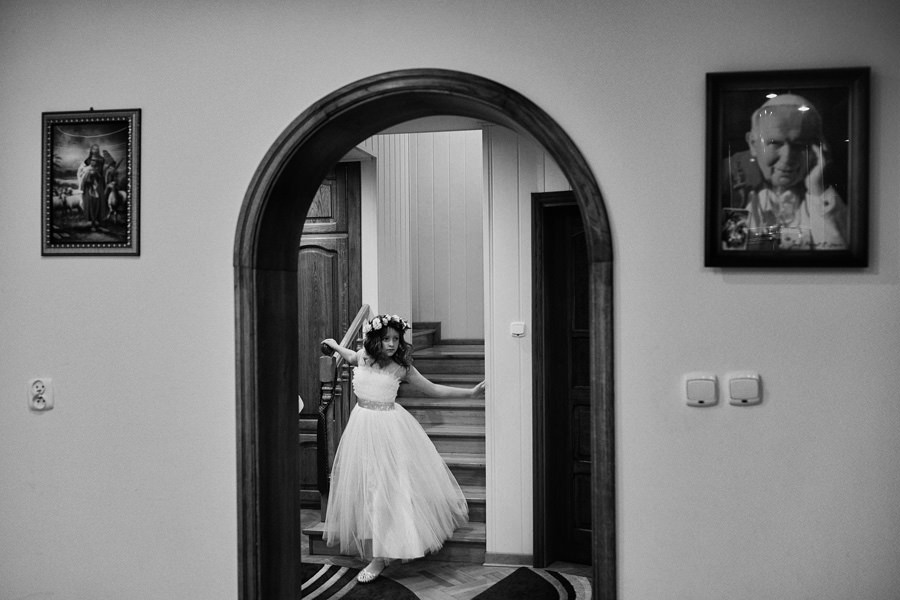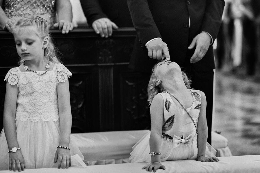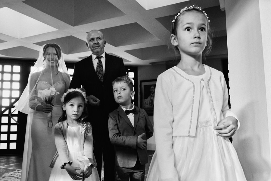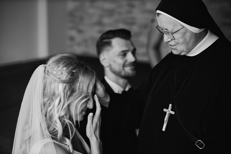 Takie pytanie zadała nam wczoraj nasza przyszła para młoda. Gdzie jesteśmy – czy będziemy blisko ludzi, czy przyglądamy się z dystansu? Czy będziemy podążać za wydarzeniami, czy aranżować sytuacje? Kreować rzeczywistość? Jest to znakomite pytanie. Odpowiedź na nie od razu zasugeruje parze młodej, czy jesteśmy fotografami dla nich. Zdecydowanie nigdy nie narzucamy swojej wizji dnia ślubu. Staramy się być bardzo czujnymi obserwatorami. To jeden z najbardziej emocjonalnych dni w życiu, dzieje się zatem mnóstwo rzeczy. Im bardziej wyostrzone zmysły, im bardziej wytrenowany zmysł obserwacji, tym więcej możemy zauważyć. I tym prawdziwszy jest reportaż. Zatem podążamy za wydarzeniami. Czy natomiast jesteśmy widoczni? Na to pytanie nie do końca umiem odpowiedzieć :). Podobno nie :). Choć często jesteśmy naprawdę blisko. W myśl zasady Roberta Capy, że „jeśli twoje zdjęcie nie jest wystarczająco dobre, znaczy, że nie jesteś wystarczająco blisko”. Bliskość to dynamika i wprost podane emocje. Lubimy energię płynącą z bycia blisko.