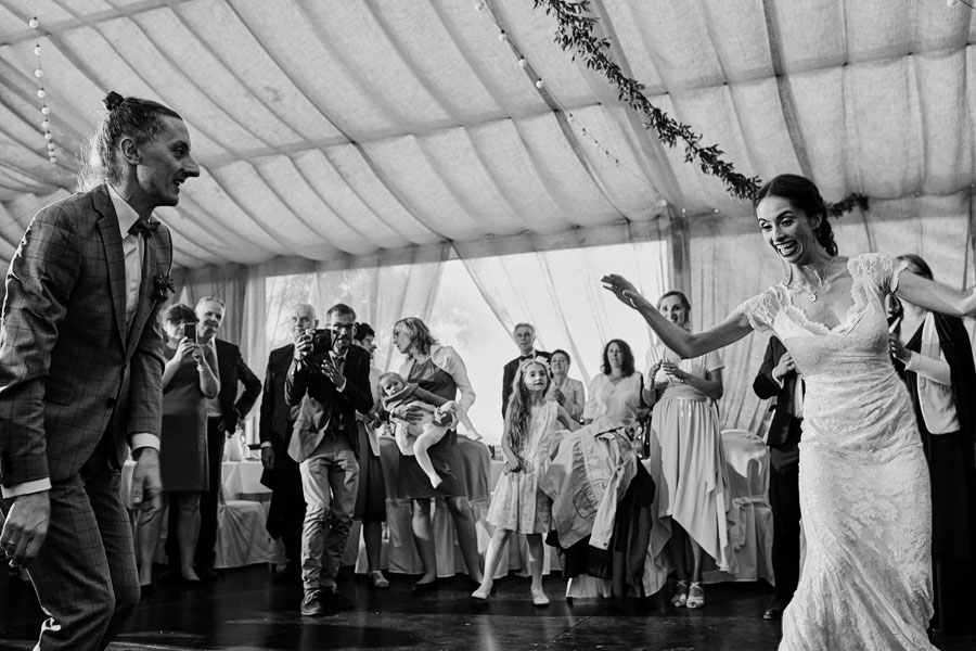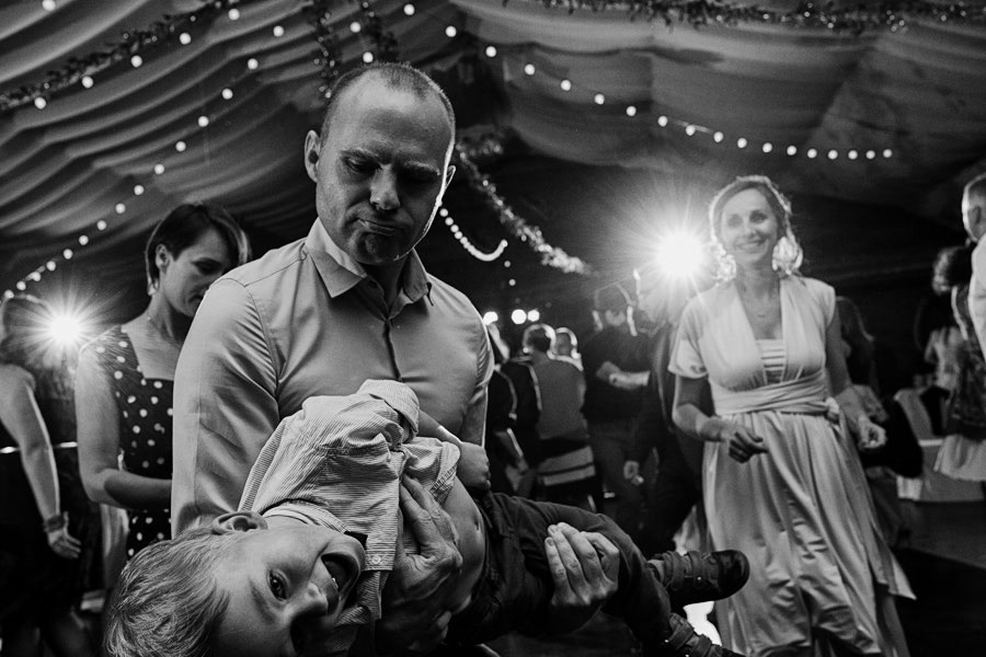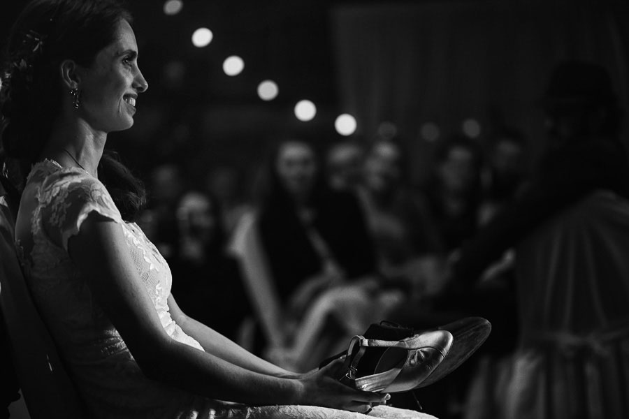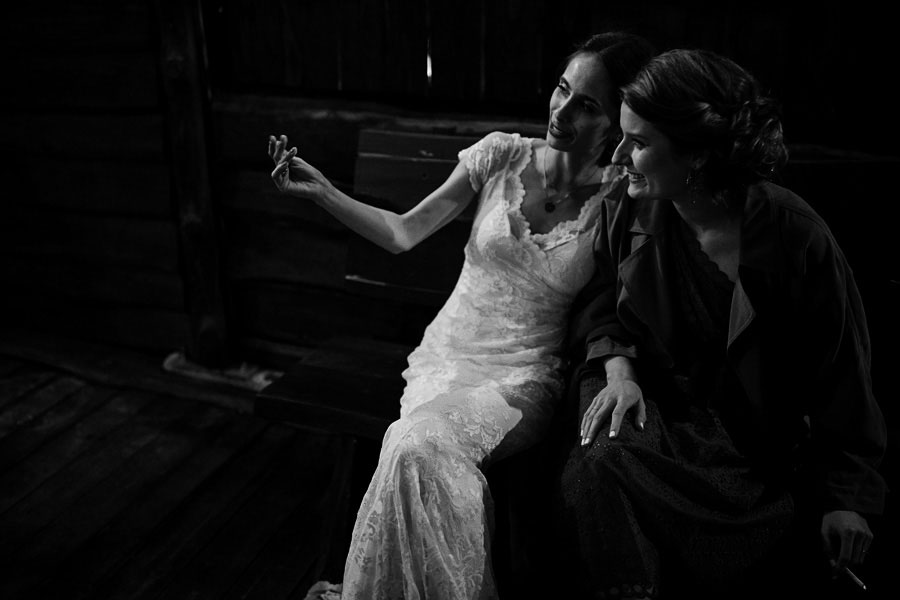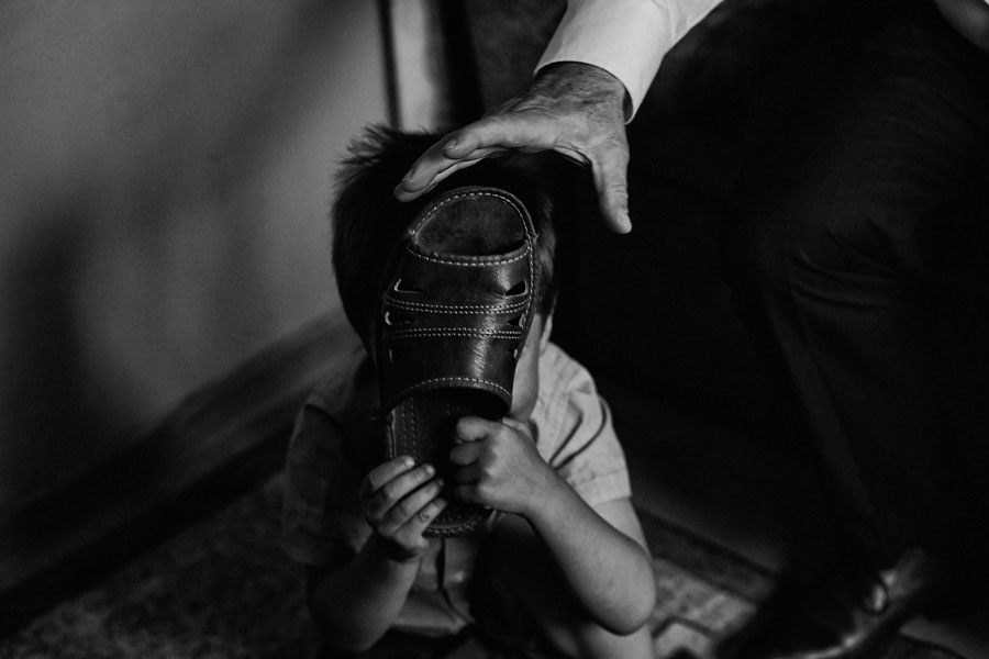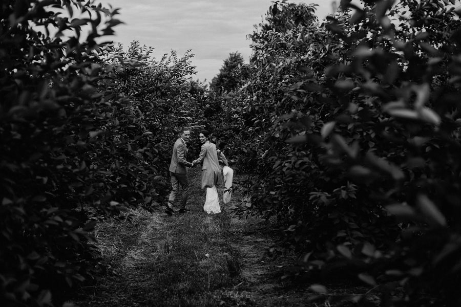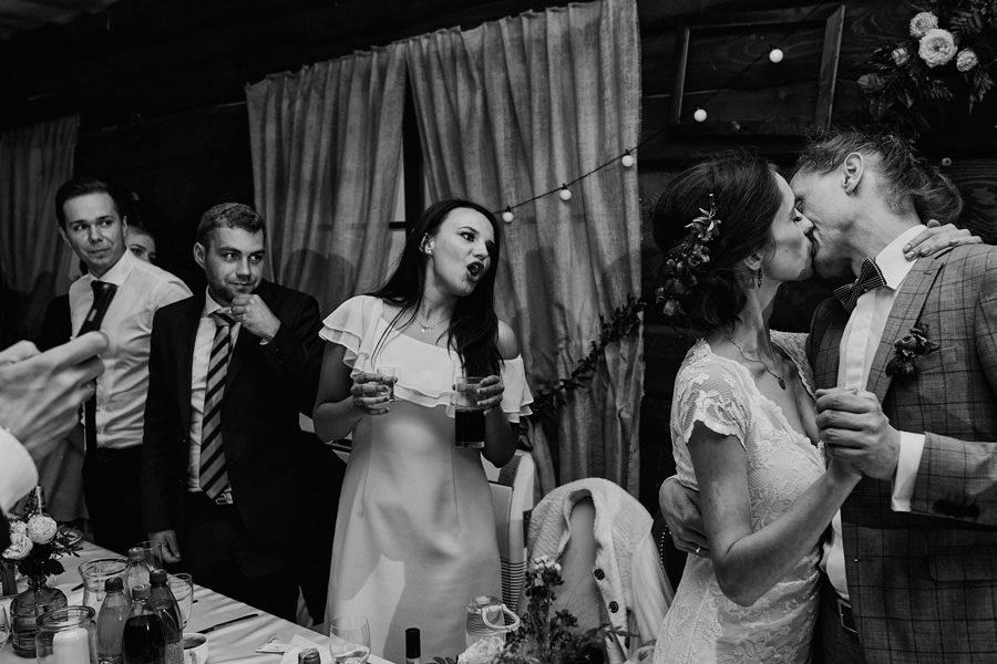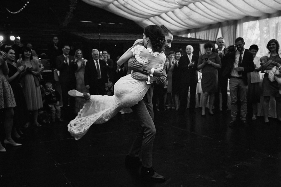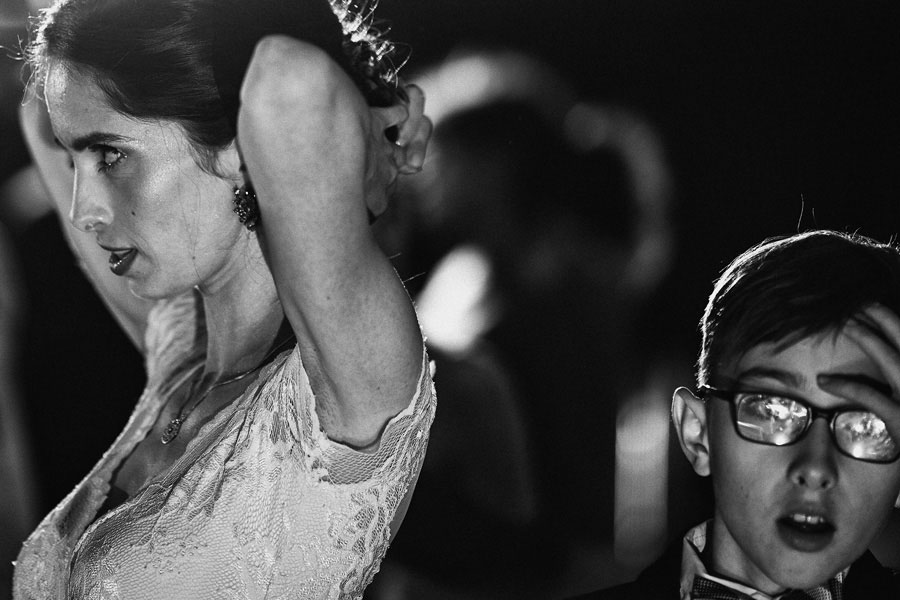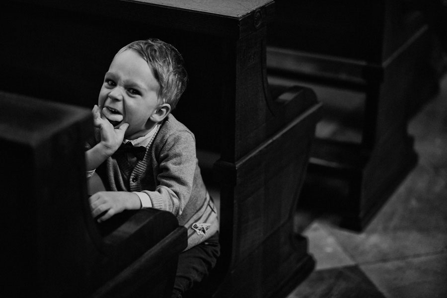 Przyjęło się w fotografii ślubnej, że w reportażu miesza się zdjęcia kolorowe z czarno-białymi. Prawie zawsze wyższość daje się tym pierwszym. Dzieje się tak ze względu na fakt, że obecność czarno-białych zdjęć w fotografii ślubnej jest dość kontrowersyjna. Powszechna jest opinia, iż czarno-białe zdjęcia są smutne i nie pasują do radosnego wydarzenia, jakim jest ślub. Nie krytykuję tego podejścia. Niemniej jednak tym, przez pryzmat czego patrzę na ich wartość, nie jest kolor lub jego brak, ale treść. Ogromne znaczenie ma też forma. Reportaże ślubne są długie, ponieważ nie jest to wyłącznie dokument o wydarzeniu. To przede wszystkim historia o ludziach. W związku z tym ważne są ich emocje, wzajemne interakcje. Wymieszanie koloru z czarno-bielą stwarza wrażenie różnorodności. Pozwala naszym oczom i mózgowi na chwilę się oderwać, odpocząć.