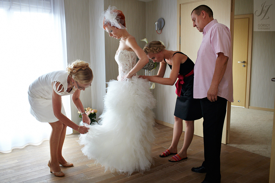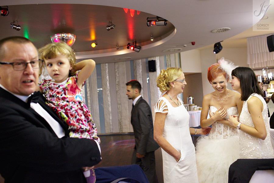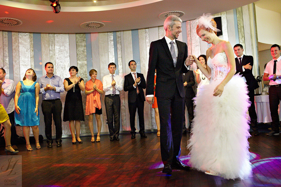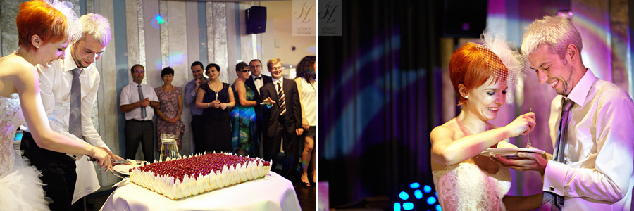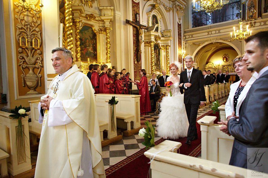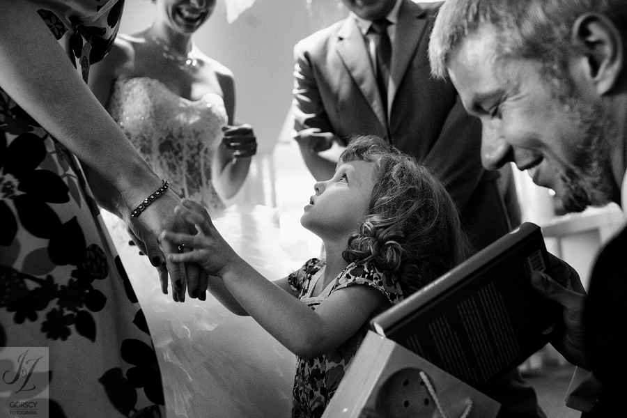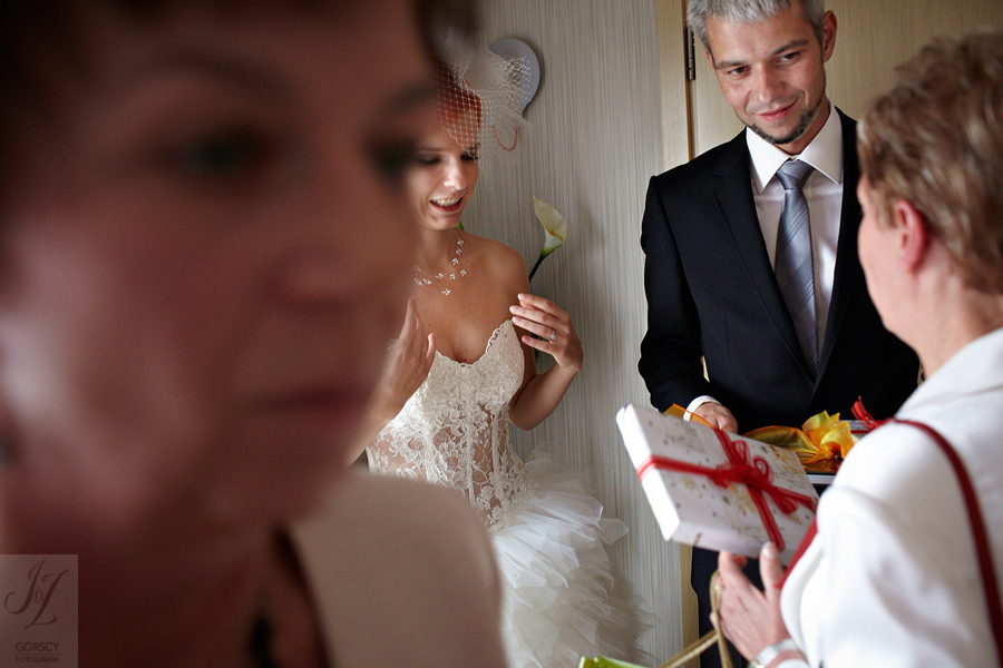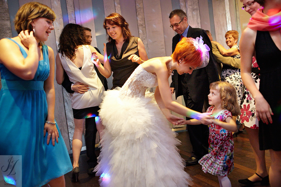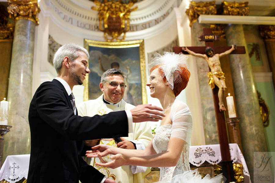 Olę i Marcina poznaliśmy już wcześniej, gdyż we wrześniu 2011 mieliśmy ogromną przyjemność fotografować ślub siostry Oli – Agaty. Już wtedy czuliśmy, że świetnie nam się współpracuje z całą rodziną, ale gdy tym razem w ramach powitania usłyszeliśmy od rodziców Oli – „Szkoda, że nie mamy już więcej córek” – wiedzieliśmy, że przed nami bardzo dobry dzień. Padało trochę, owszem, ale w żaden sposób nie ostudziło to entuzjazmu naszej energetycznej pary i ich gości. Światło słoneczne tymczasem bardzo miło dopomogło nam w czasie sesji, nasycając kolory, by zdjęcia były tak barwne, jak te dwa charaktery, czyli Ola i Marcin :).