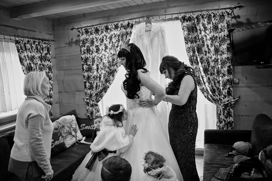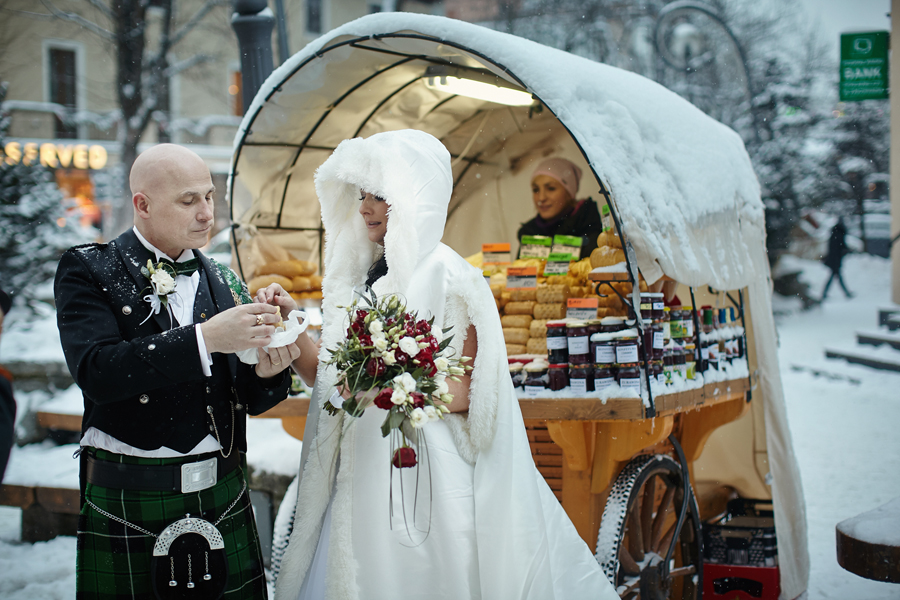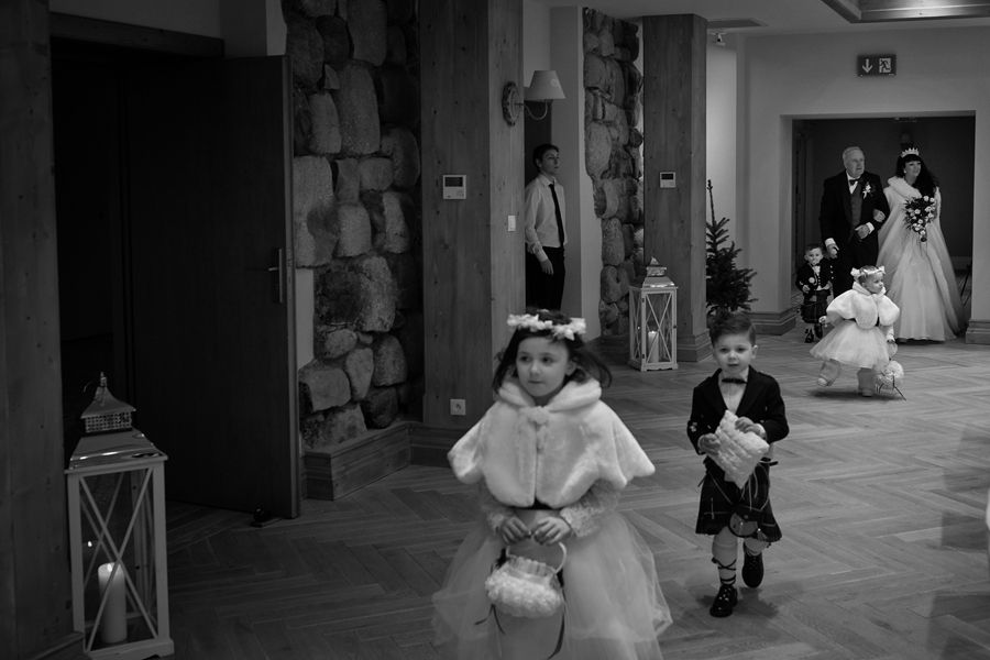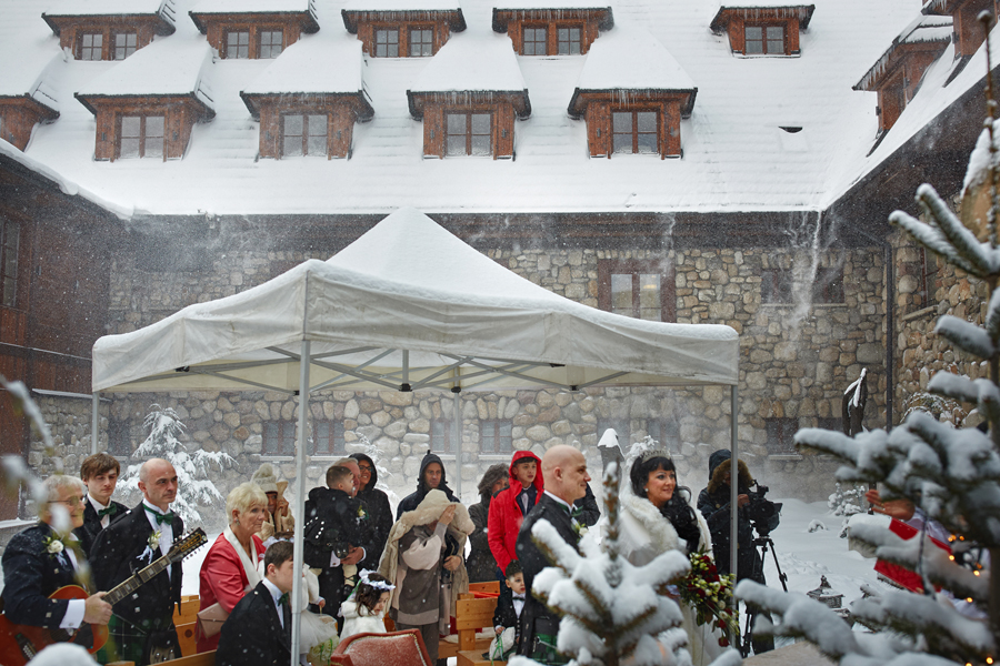 Spring is about to come at any moment soon, but still we keep in our hearts this special winter wedding. Photographing brides and grooms in this season in Poland is quite uncommon, especially when the ceremony is held outdoors during icy cold weather and heavy snow. We love challenges, nevertheless, so we happily jumped at the opportunity of documenting this ceremony. Racheal and Ian dreamt about wintry setting resembling that from the fairy tale “Snow Queen” by Andersen. Therefore, they decided to invite the whole Irish family to the Polish capital of snow, Zakopane. The climax of the day was, of course, the outdoor wedding ceremony, but as it turned out, there were many more highlights. We were surprised by the fact that our couple had four charming, lively and cute kids who definitely enriched our photographic adventure. We invite you to an unusually unique story of their BIG DAY. ENJOY!!!