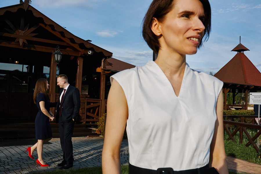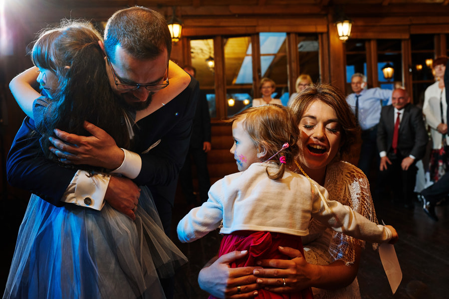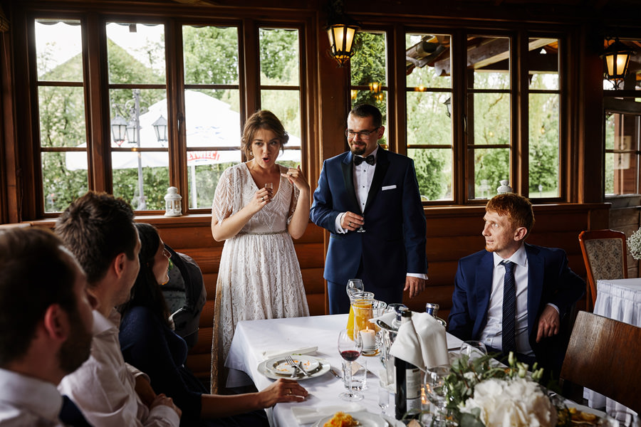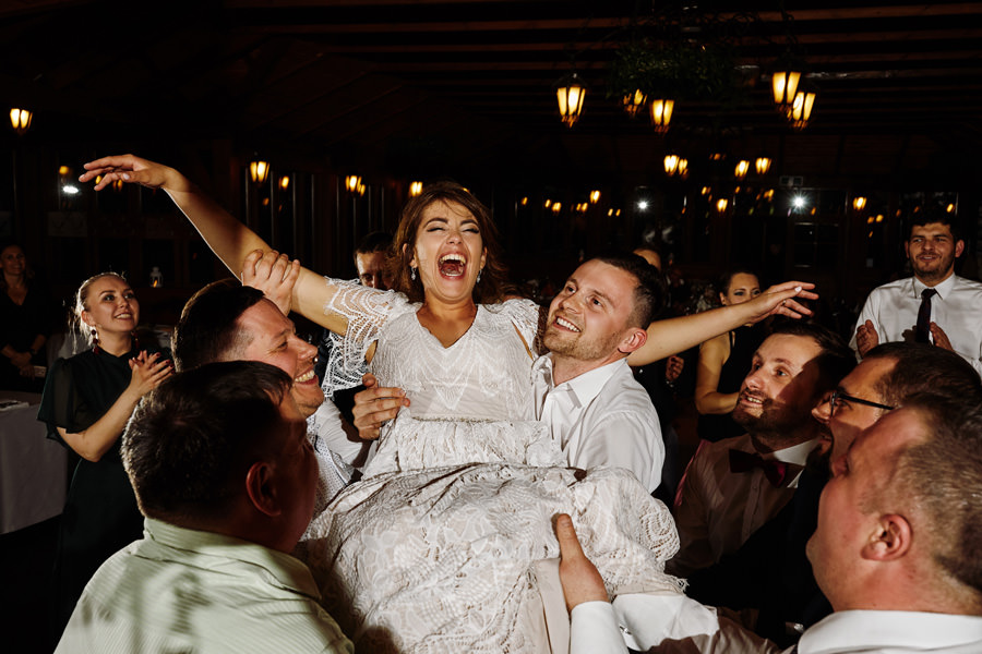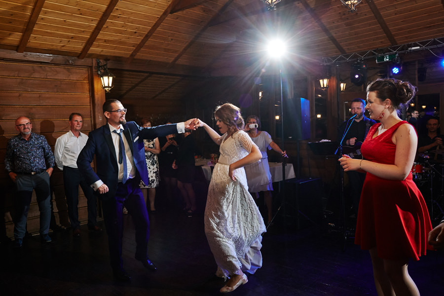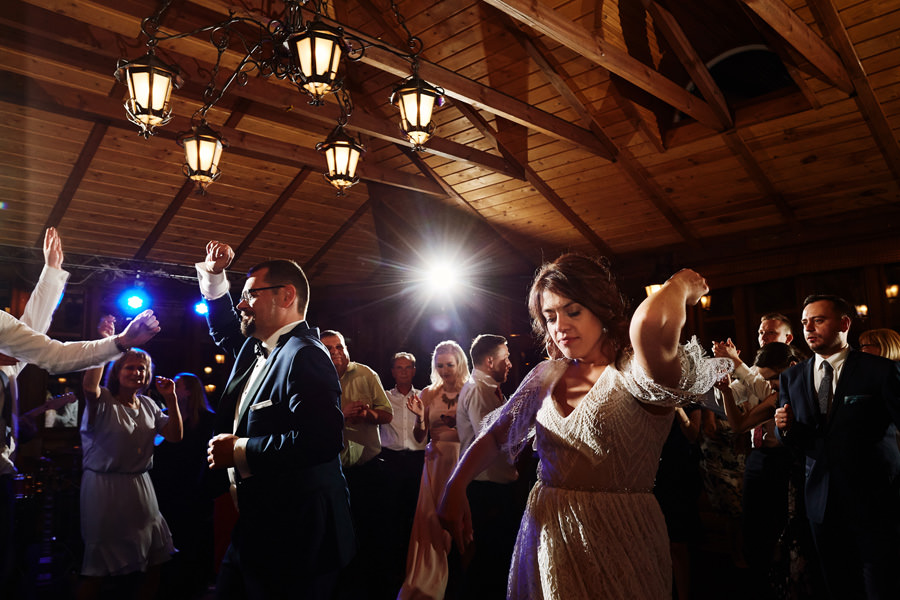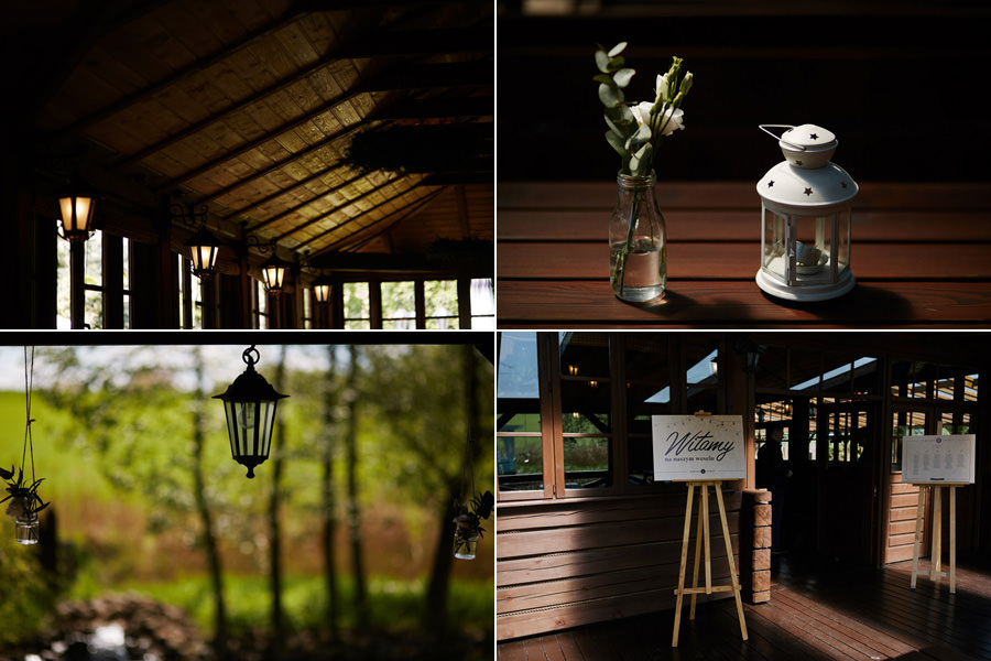 Człowiek jedzie sobie północną obwodnicą Krakowa i widzi Hotel Witek. Miejsce raczej z tych bardzo nowoczesnych – szkło, beton, wszystko błyszczy. Nikt by się nie spodziewał, że nieopodal stoi sobie ukryta wśród drzew Witkowa Chata. Hotel Witek, poza salami konferencyjno-bankietowymi, posiada rustykalną chatę, idealną na imprezy w stylu boho. Chata sprawia wrażenie niewielkiej, ale bez trudu pomieści 120 osób, a to już wcale nie jest małe wesele. Na dodatek spełnia (przynajmniej na ten moment, wymogi GIS – nie sposób tam zorganizować zbyt dużego wesela ;)). Szczególny klimat chata zawdzięcza nie tylko temu, że jest drewniana. Jej piękno tkwi również w dużej ilości okien, niemal na całej długości ścian. Dzięki nim chata sprawia wrażenie ażurowej konstrukcji, pełnej światła. Dodatkowo ekspozycja okien na południe sprawia, że w momencie rozpoczęcia przyjęcia weselnego w chacie mamy najpiękniejsze światło. Zatem wesele w Witkowej Chacie to zdecydowanie uczta dla fotografa.