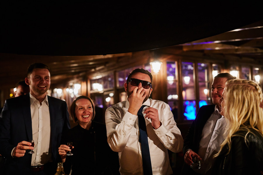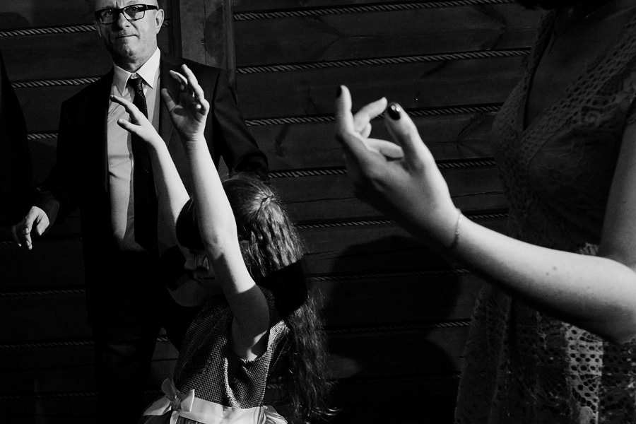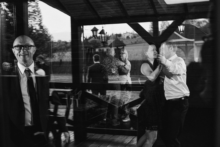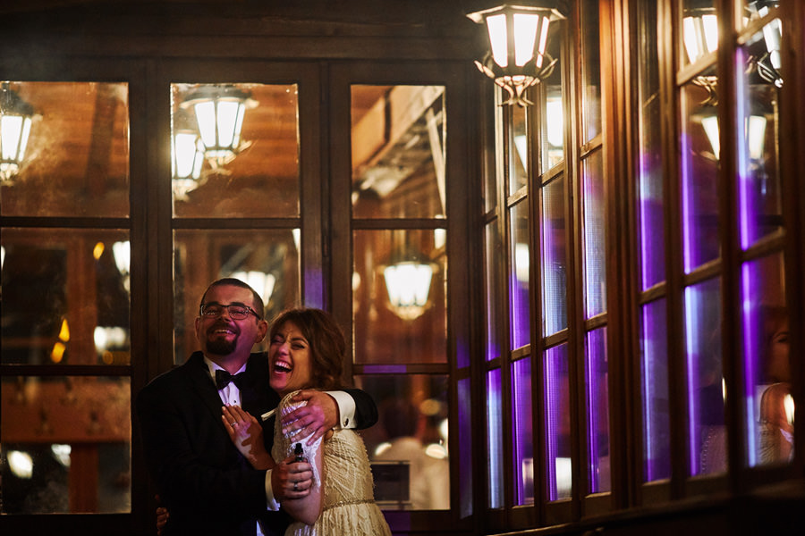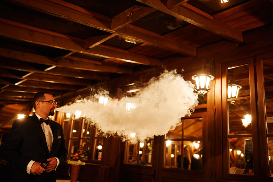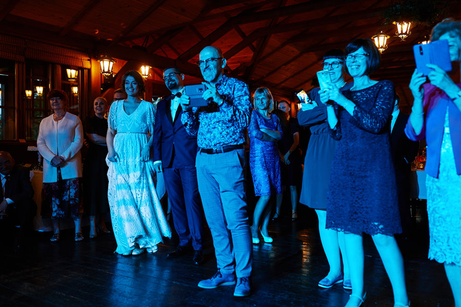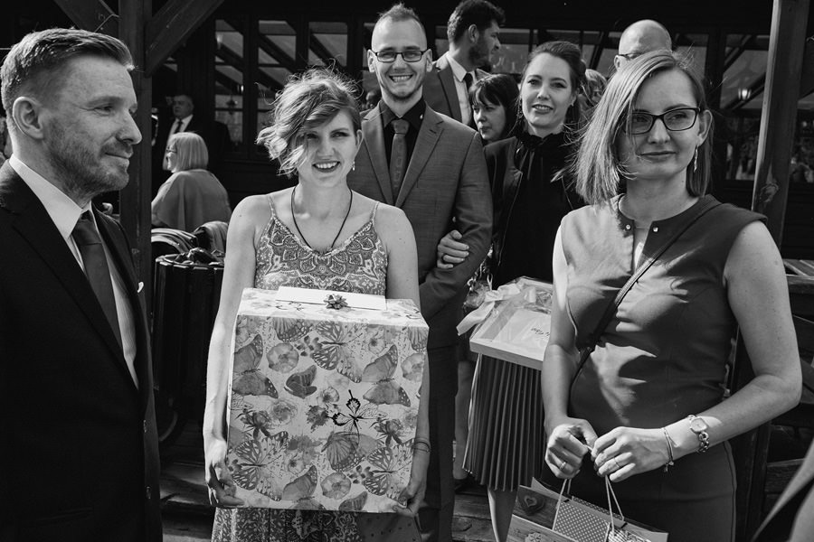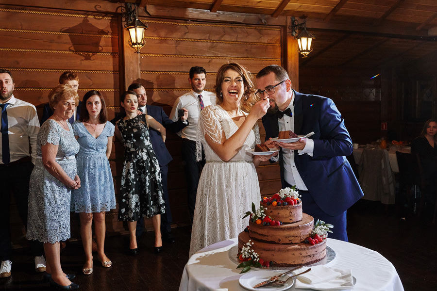 Początek był raczej raczej kameralny, niewielkie grono, spokój. Nagle pojawia się Szymon w koszulce z Hitchcockiem. Przez myśl przebiegło nam – „swój człowiek”, zapowiada się nieźle. Skupiam się na detalach – na dodatkach panny młodej, gdy nagle widzę naszyjnik, a na nim zawieszkę w kształcie mózgu. Przepiękny srebrny mózg! Wtedy już wiedzieliśmy, że to będzie ogień. Impreza zdecydowanie w naszym stylu i taka, jakie kochamy najbardziej :).