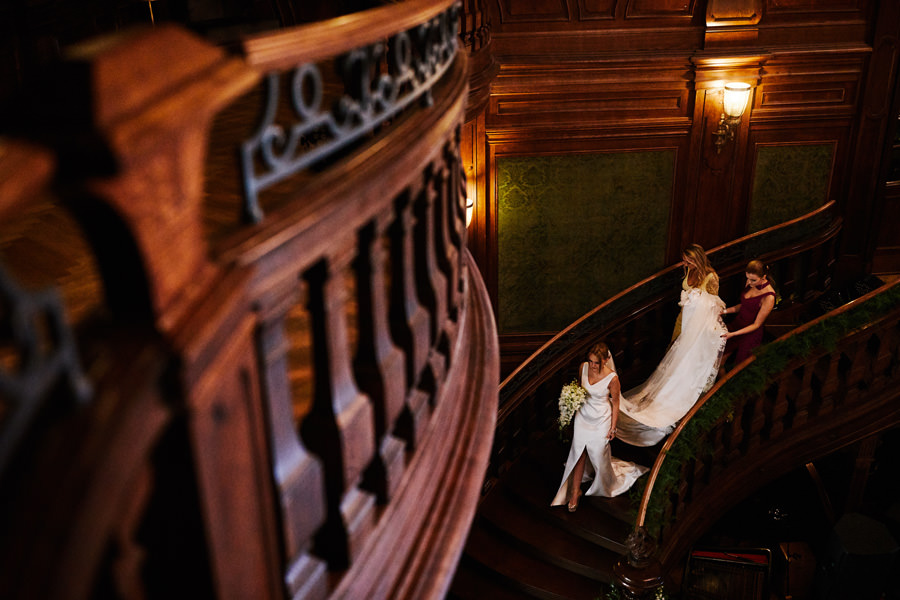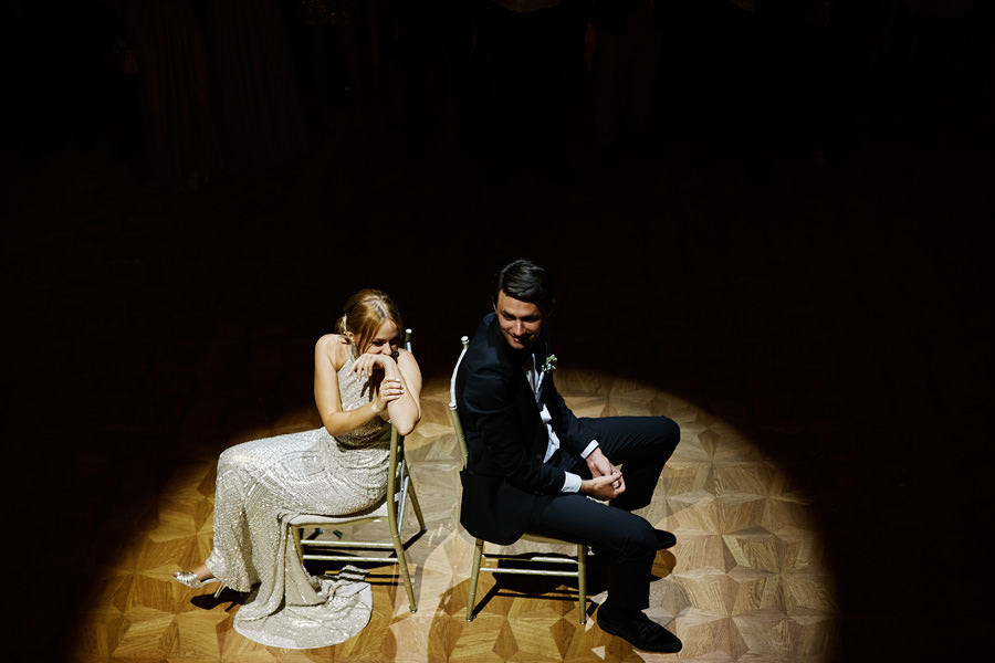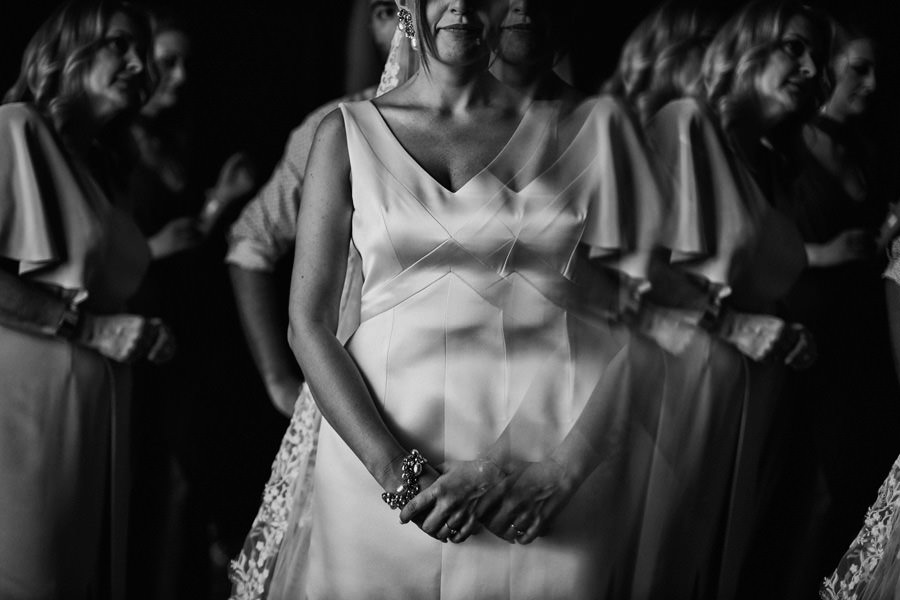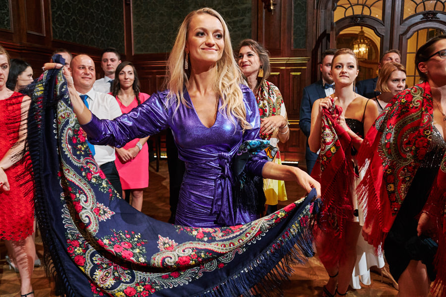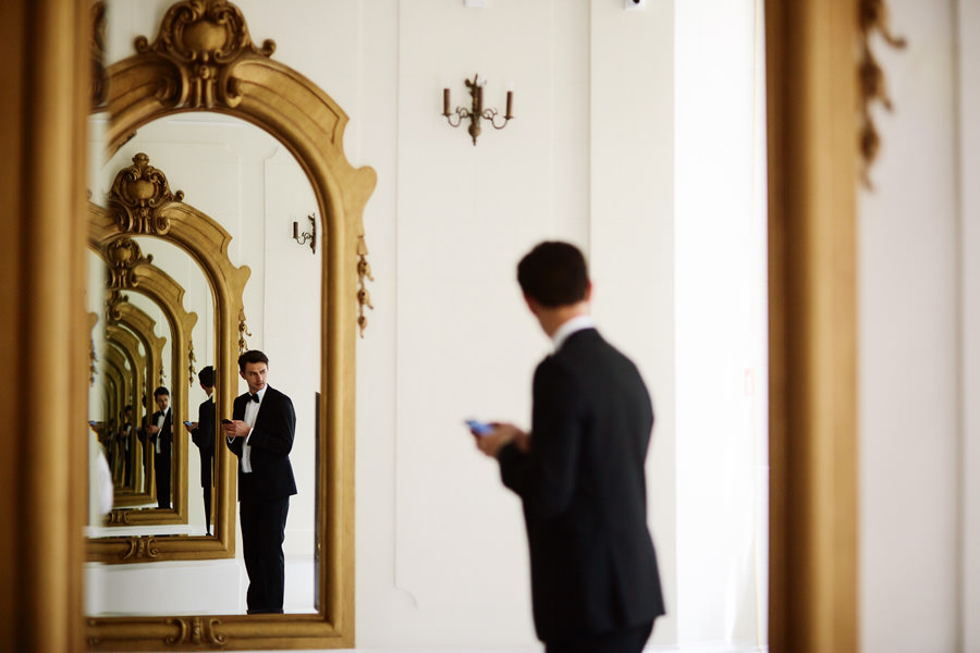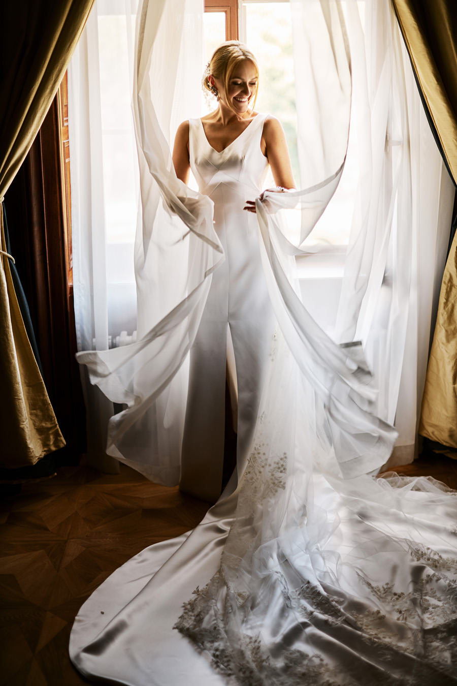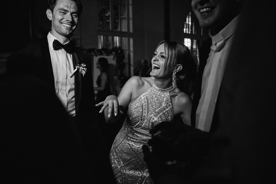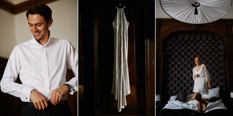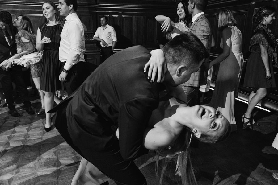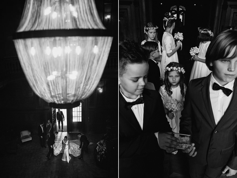 Przygotowania do ślubu odbywały się w pałacowych komnatach. Dość ciemne wnętrza, skąpe, ale pięknie modelujące światło zastane – dało klimat jak z obrazów Caravaggia. Ostry światłocień – prawdziwie barokowy styl, więc nawet zdjęcia są jak obrazy. Do tego niezwykłe detale. Na każdy moment dnia inne. Były dwie suknie ślubne, a jedna z nich, wyszywana kryształami, powstawała 360 godzin (to dopiero „slow wedding” DRESS, nie?) i ważyła kilkanaście kilogramów. Ale warto było ponieść ten ciężar, dlatego że wszystkim odebrało mowę. Dosłownie. Było sporo par butów, bo tego przecież nigdy za wiele. Więc było tam „coś nowego”.