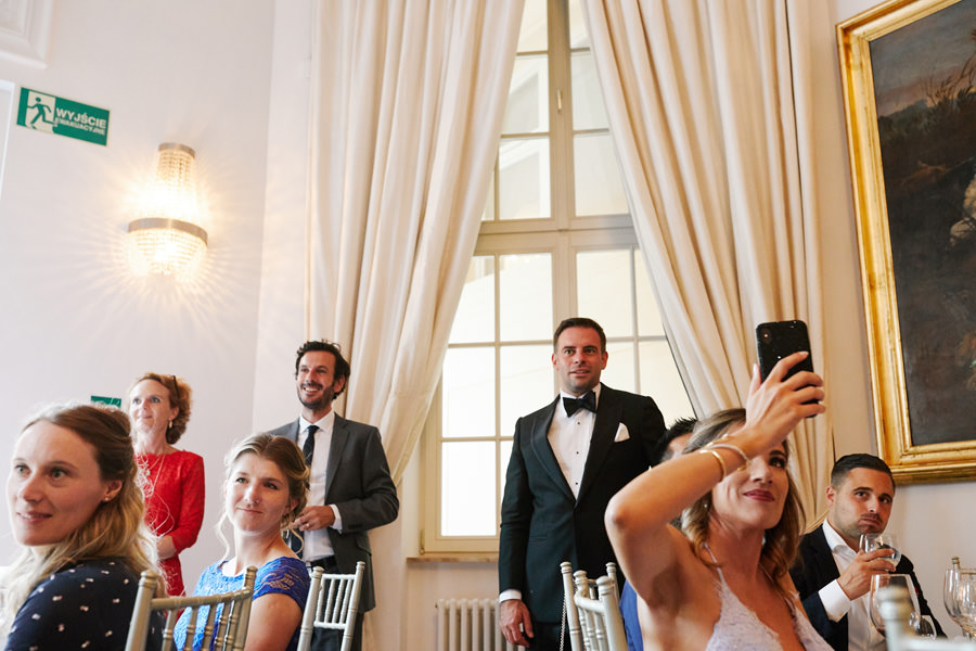 Wiem, że na blogach fotografii ślubnej pisze się raczej o zdjęciach ślubnych. O reportażu ślubnym i wszystkich elementach składowych. No i może jeszcze o venue. Co też oczywiście uczyniłam. Ale Pałac Goetz to nie tylko zjawiskowe miejsce. To są przede wszystkim genialni ludzie, którzy to miejsce stworzyli. Ich kuchnia to orgia zmysłów, z kolei każde danie to dzieło sztuki. Swoich gości traktują z najwyższym szacunkiem. Również nas – fotografów, a także muzyków, animatorki zabaw – i wiele osób będących tam po prostu w pracy. Nigdy nie zapomnę rozmowy przy stole, kiedy wszyscy się przedstawialiśmy: Cześć! Jesteśmy Iza i Zygmunt – fotografowie. Hej, jestem Kasia, animatorka. Cześć, Piotrek, wokalista. Cześć, Krzysiek, nagłośnienie trawnika :D. No więc – towarzystwo doborowe. Z dystansem i poczuciem humoru.