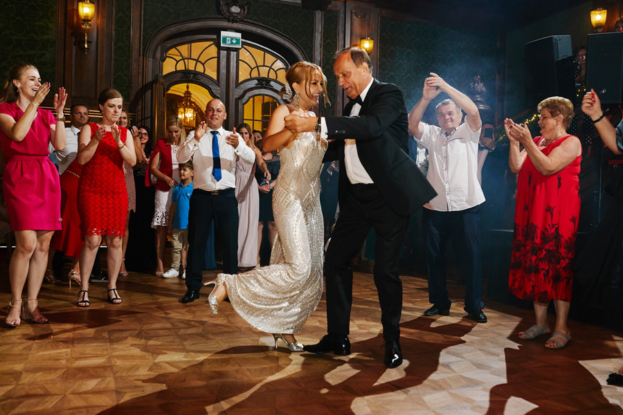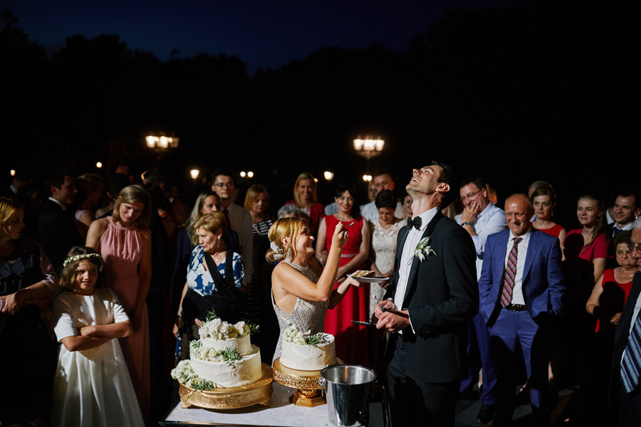 Zdecydowanie. Naprawdę. Niesamowity pierwszy taniec, który podziwialiśmy z wielu perspektyw. Jako duet mamy dwa razy więcej możliwości. Ale też trochę jesteśmy Batmanami i po prostu szybko się przemieszczamy :). Potem atrakcji było sporo: pokaz sztucznych ogni, tort podany na zewnątrz, zespół góralski, który nie tylko grał, ale też przygotował znakomite show i zabawy dla gości. Krótko mówiąc – niesamowity był to dzień. Mam nadzieję, że Was nie zanudziłam i macie jeszcze siłę pooglądać zdjęcia! 🙂