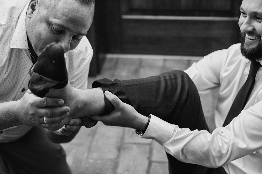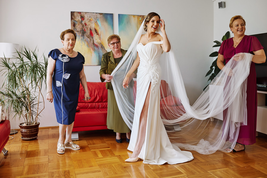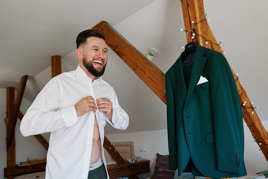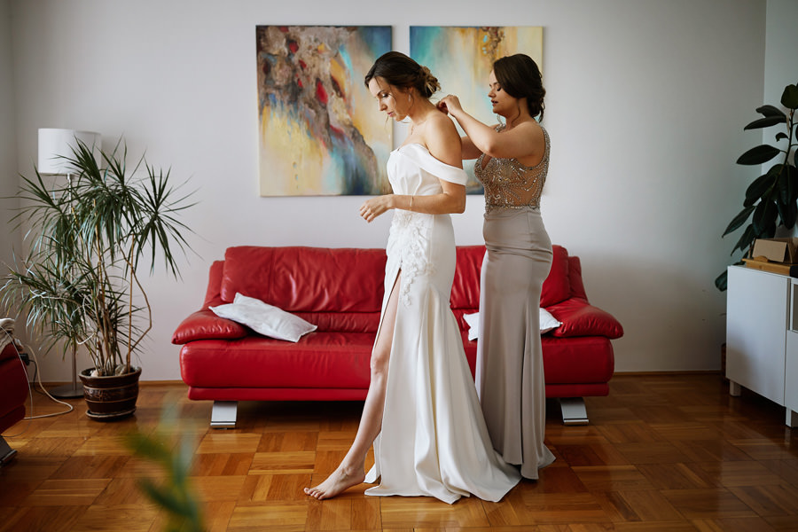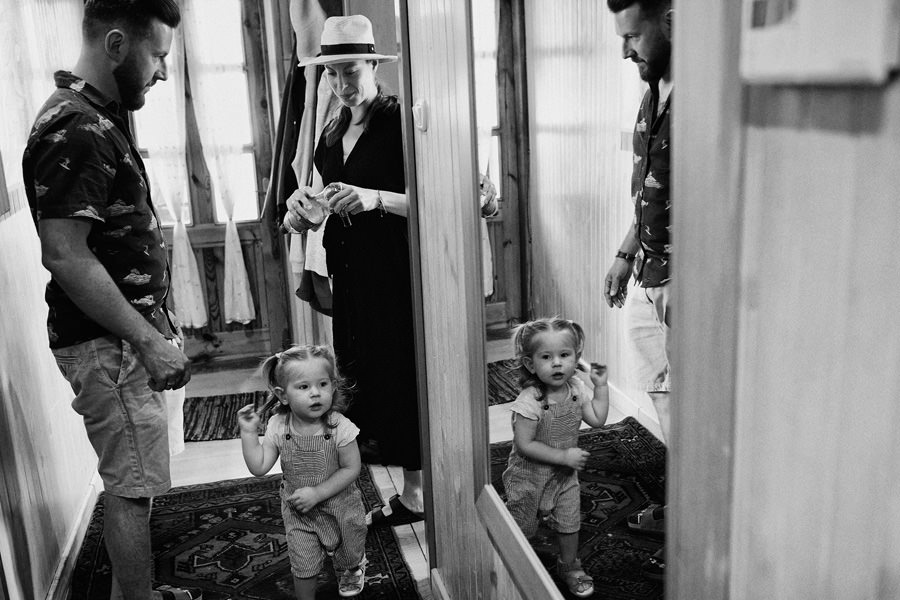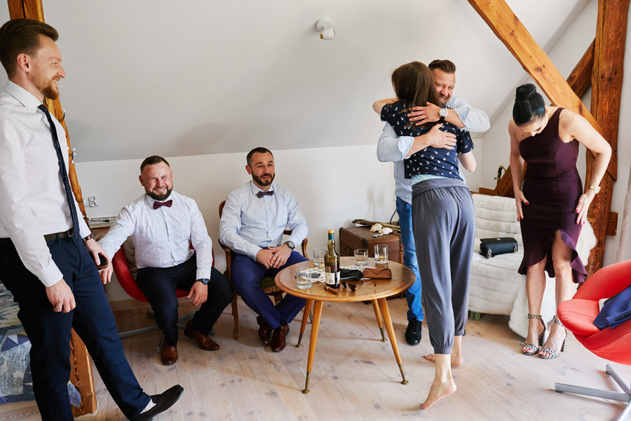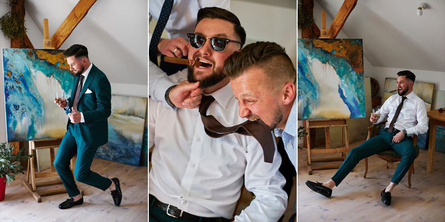 Każdy reportaż tak się zaczyna, nie inaczej było i tym razem. Trafiliśmy do dwóch niezwykłych domów, bardzo gościnnych i serdecznych, a na dodatek niebywale pięknych. Mama Karola jest malarką i w jej pracowni odbywały się przygotowania, co nadało im niepowtarzalny klimat. Przygotowania Kasi odbywały się w ich wspólnym domu, w którym również znajdowały się prace mamy Karola, stanowiąc efektowny element łączący.