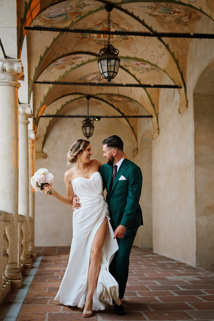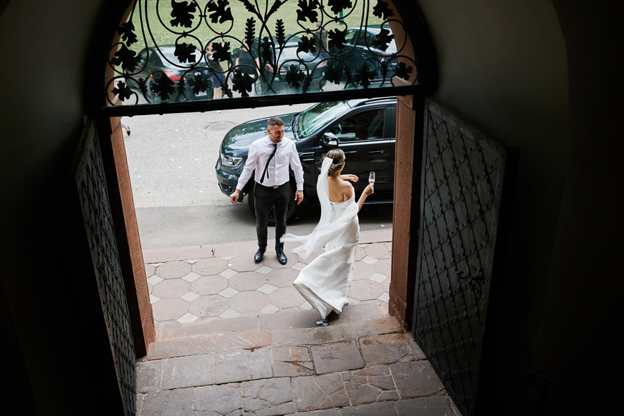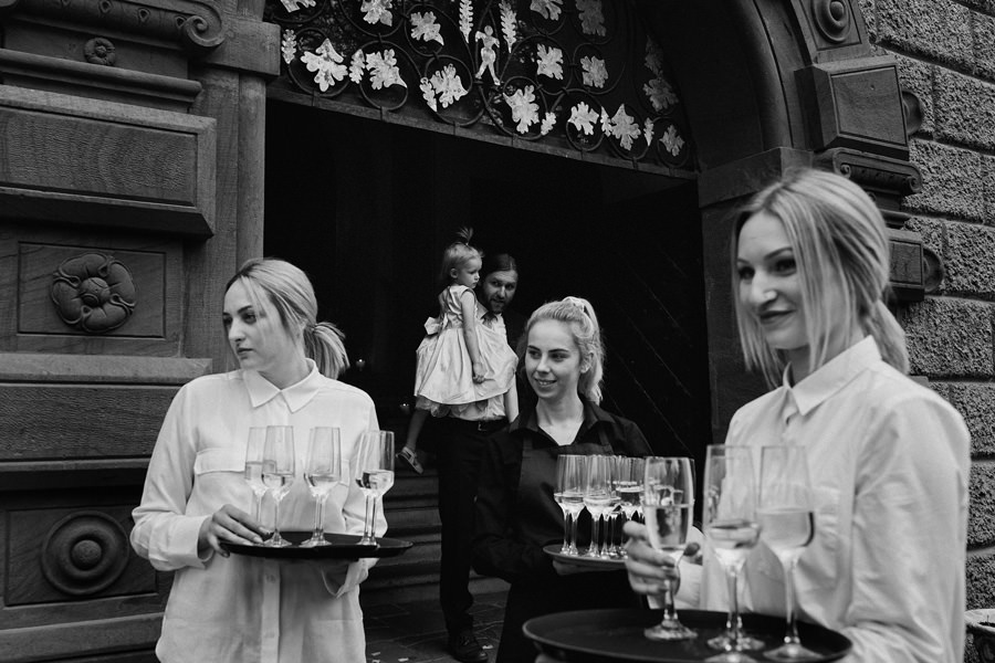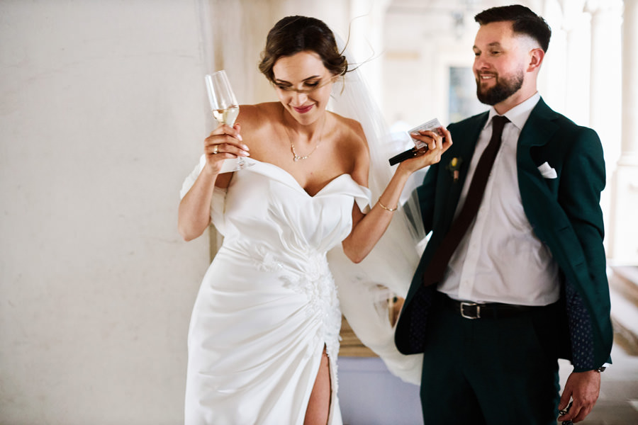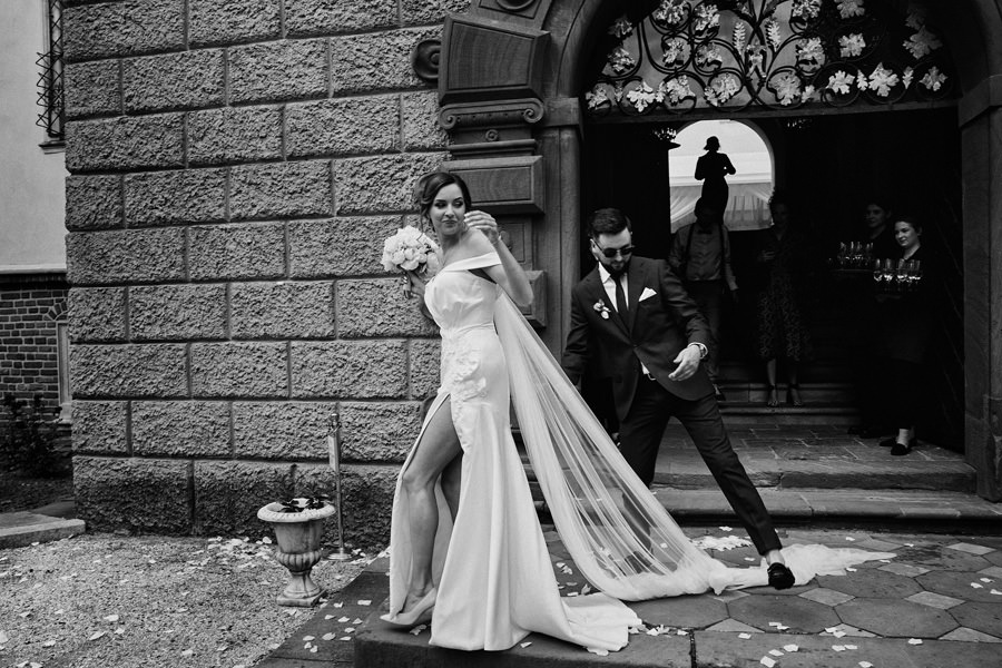 Wcale nie trzeba być królewną, żeby mieć królewskie wesele, a z kolei królewskie wesele wcale nie oznacza przesady. Kasię i Karola poznaliśmy dopiero w dniu ich ślubu. Wcześniej rozmawialiśmy tylko przez telefon. W zasadzie dopiero w tej rozmowie telefonicznej na dwa dni przed ślubem wyklarował się mniej więcej plan dnia. Od razu pomyśleliśmy, że to jedna z najbardziej spontanicznych par, z jakimi będziemy współpracować w tym sezonie. Dla takich właśnie par, które nie chcą nadmiernie stresować się organizacją, dekoracjami, itp. – rekomenduję na wesele miejsca z historią. Zamki, pałace, dwory – już same w sobie będą stanowiły atrakcyjne tło, nie wymagają zbytniego przystrajania.