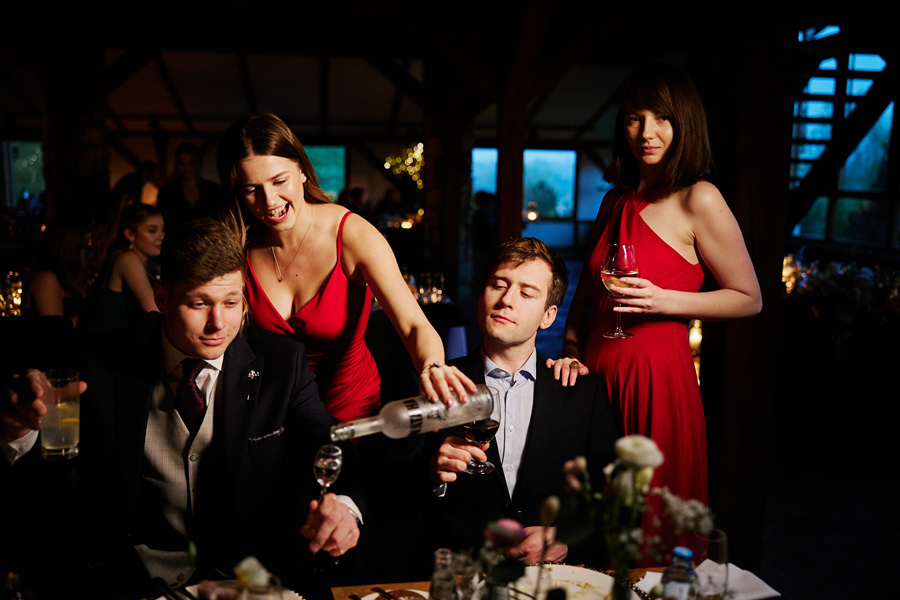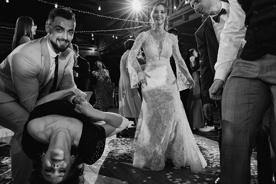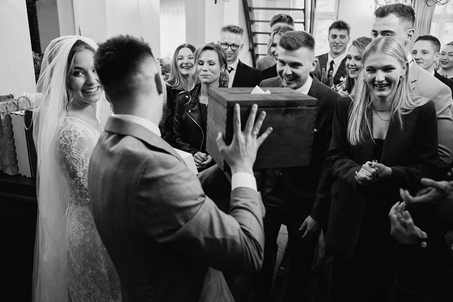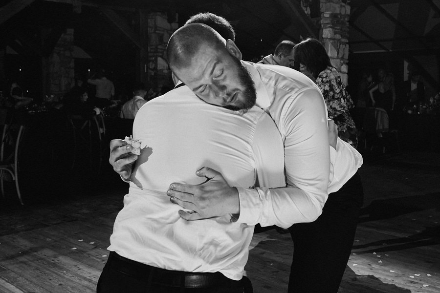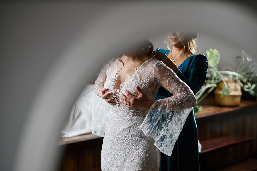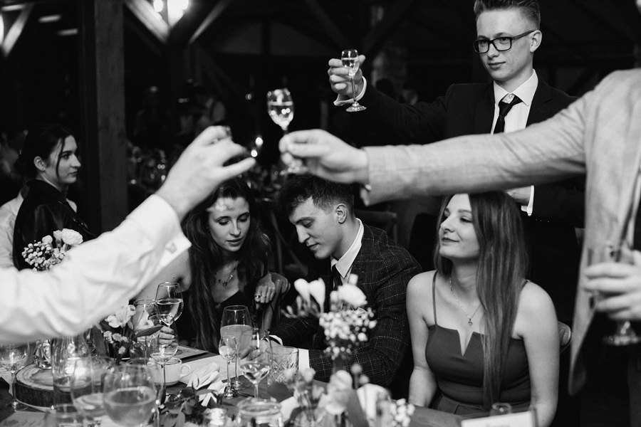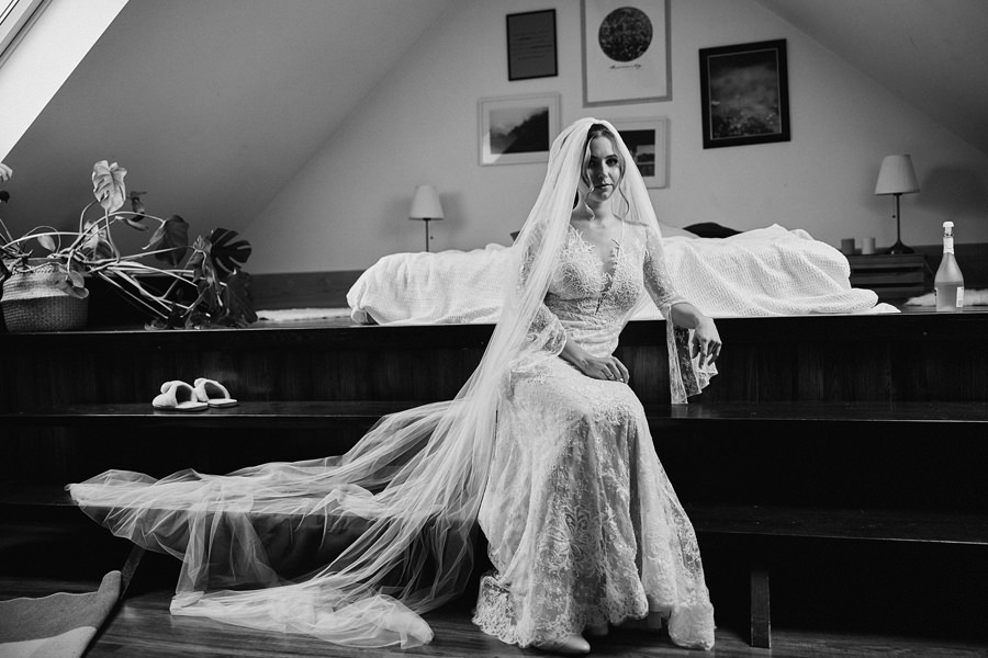 Kiedy przyjechaliśmy tu pierwszy raz, byliśmy absolutnie urzeczeni tym miejscem. Położone z dala od zgiełku miasta, ale jednocześnie na tyle blisko, że dojazd nie jest problemem. Otoczone łąkami i polami ma prawdziwie sielski klimat. Budynek wzniesiony z cegły, kamienia i drewna jest jednocześnie rustykalny w swoim charakterze. Ale z kolei wielkie przeszklenia sprawiają, że ma w sobie też nowoczesność. Na swoje wesele w Dworzyszczu Wola zaprosili nas w pewien kwietniowy dzień Laura i Aleksander. Choć padał deszcz i nie mogliśmy w pełni wykorzystać dobrodziejstw tego miejsca, udało się stworzyć bardzo intensywny reportaż :).