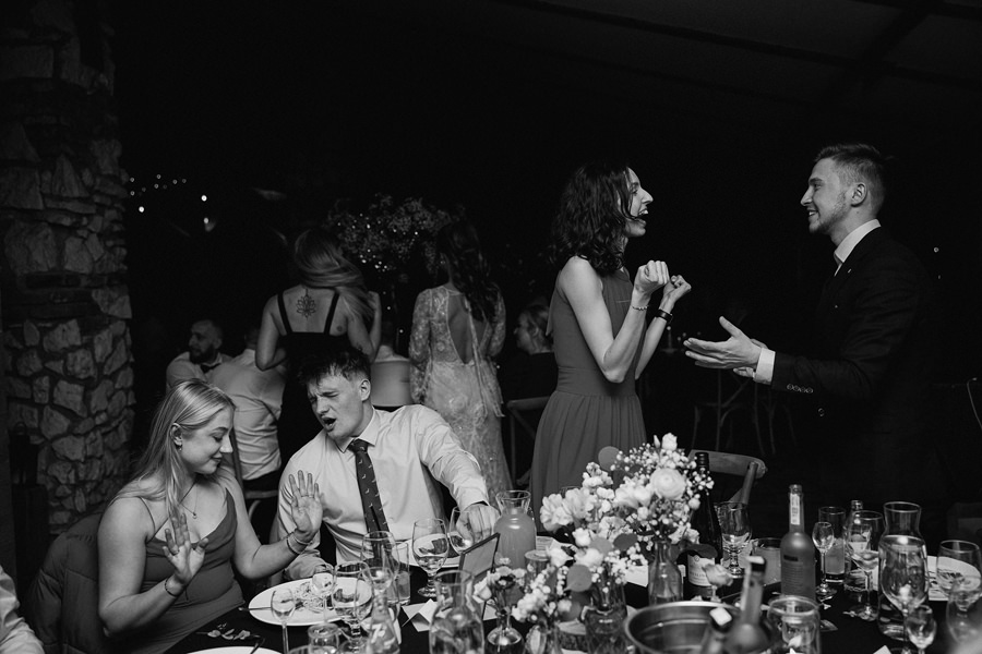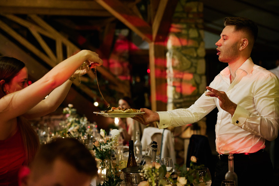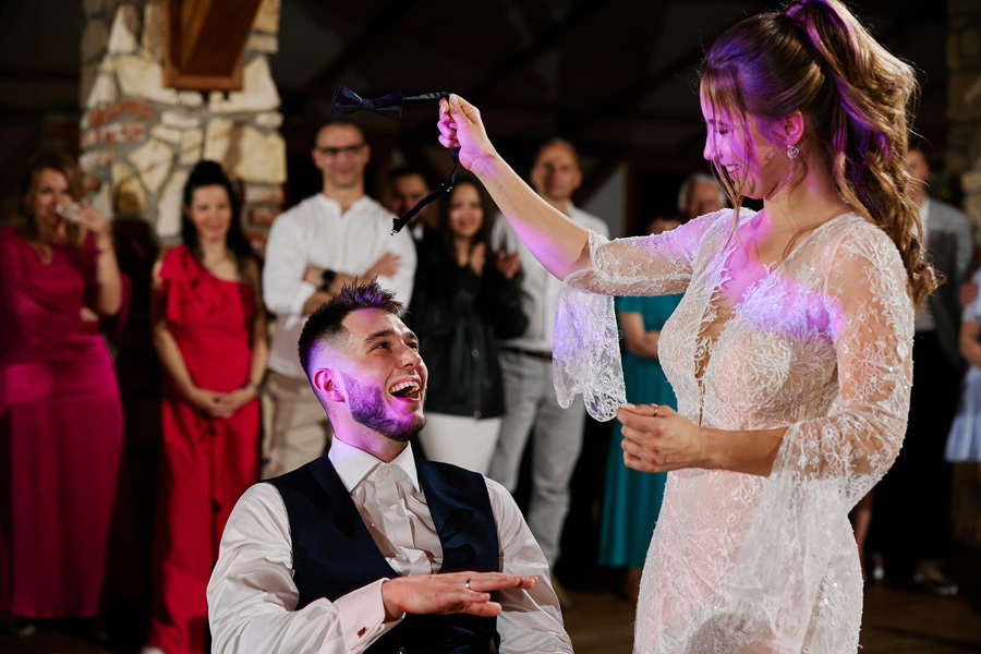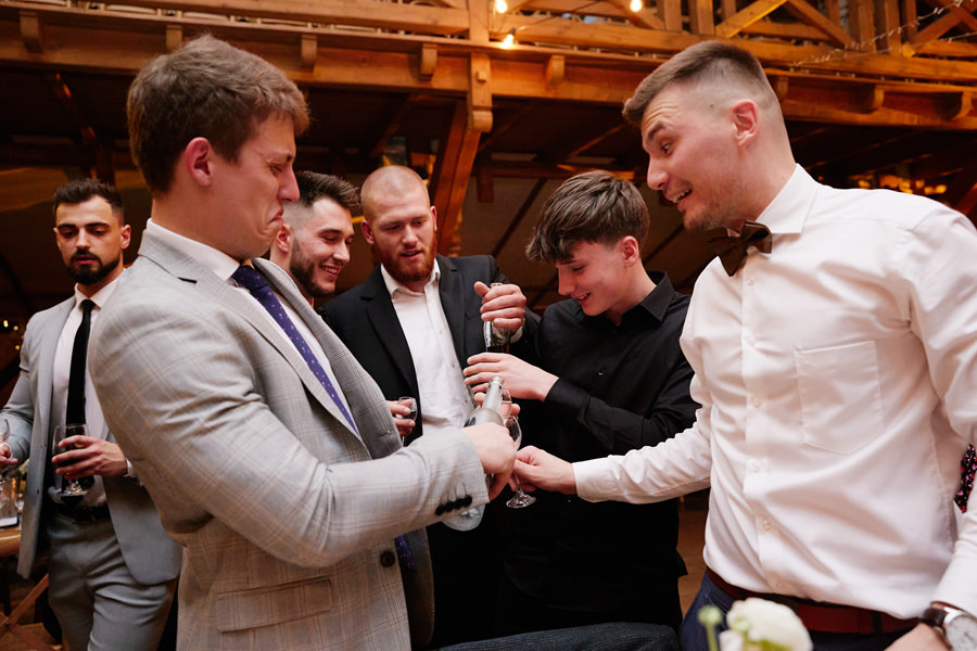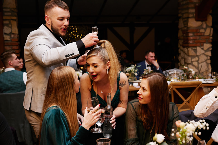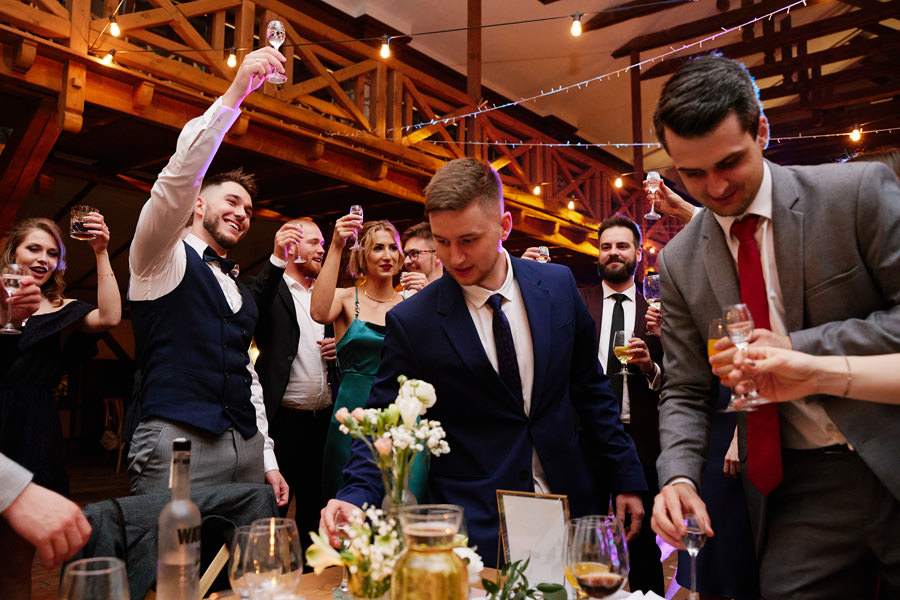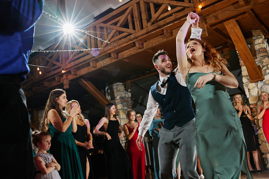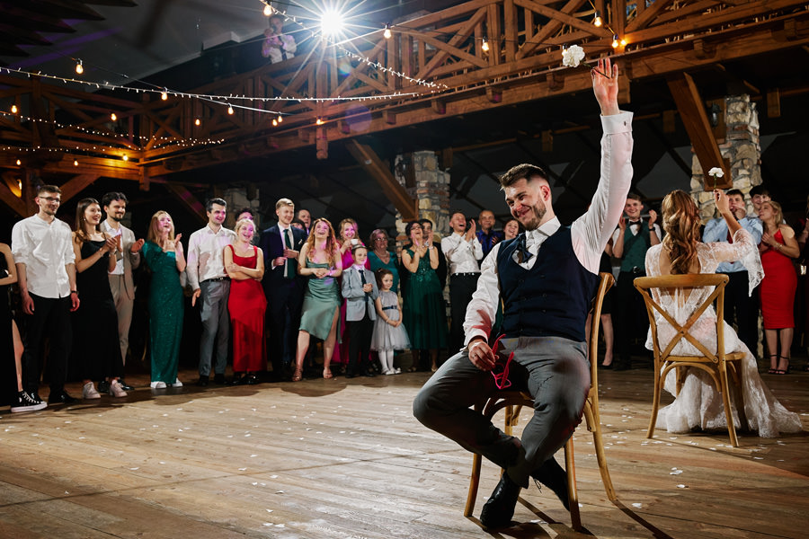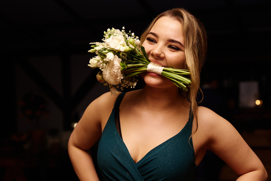 Przede wszystkim miejsce to oferuje również pokoje gościnne i apartament małżeński, dzięki czemu pary młode urządzające wesele w Dworzyszczu Wola, mogą przygotować się na miejscu. Tym samym unikają stresu związanego z logistyką przejazdów. Mogą również osobiście nadzorować prace nad przygotowaniem dekoracji sali. Na tym weselu przepiękne kompozycje kwiatowe i aranżacja wystroju sali są autorstwa prawdziwej mistrzyni florystyki Agnieszki Błaszczyk, czyli ABkwiaty.
