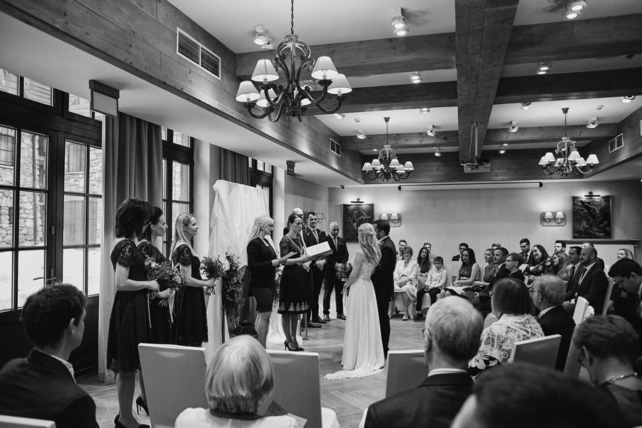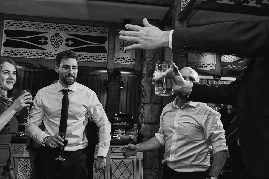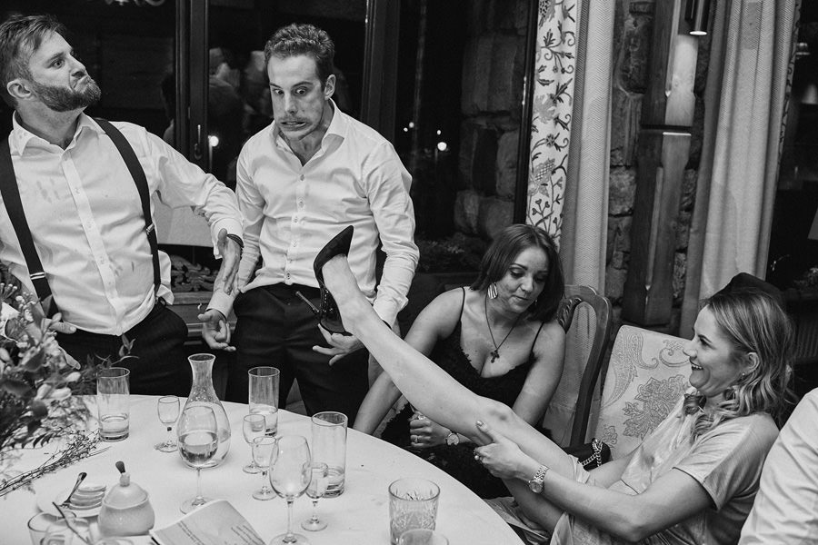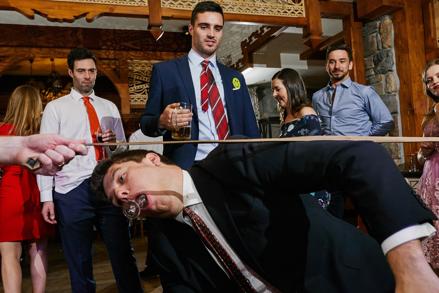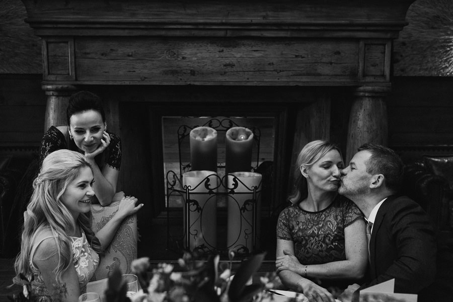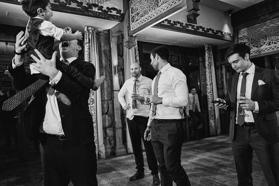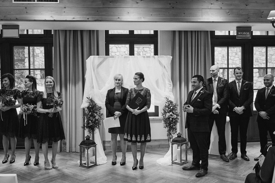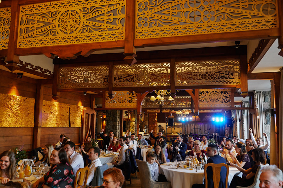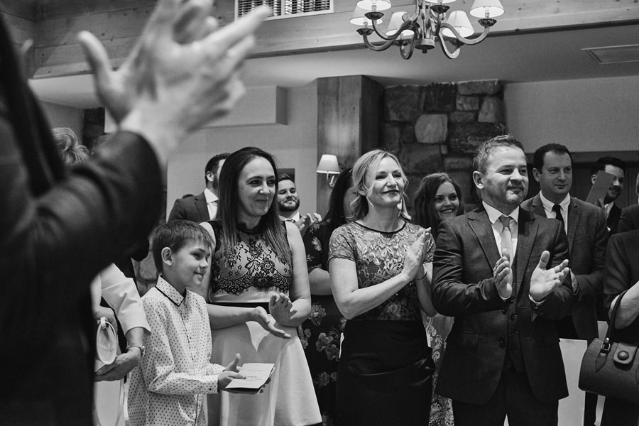 Fotograf ślubny skupia na wielu aspektach wykonując reportaż ślubny. Na głównych bohaterach, czyli Parze Młodej i najbliższych. Na istotnych wydarzeniach, których opisywać nie trzeba. Ale również na rzeczach – detalach, miejscach, krajobrazach, którymi buduje klimat. Ta historia jest jednak inna. Bardzo mocno skupia się na ludziach. Brak widokówek z Tatr, bo lutowa aura pozbawiła nas ich widoku. Nie ma zbyt wielu detali pokazujących miejsce, dekoracje, itp. Jest za to wulkan emocji i absolutna petarda jeśli chodzi o sytuacje i relacje między ludźmi. Każde zdjęcie to mikroopowieść. Nie było tu wytchnienia od „dziania się” :).