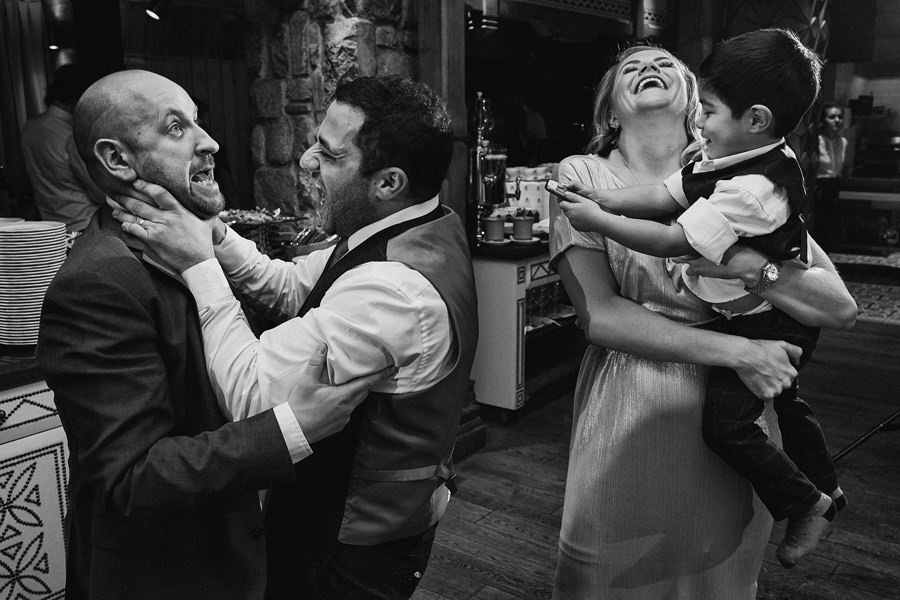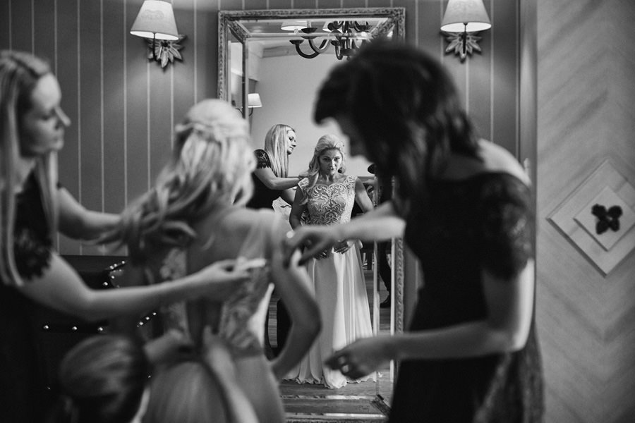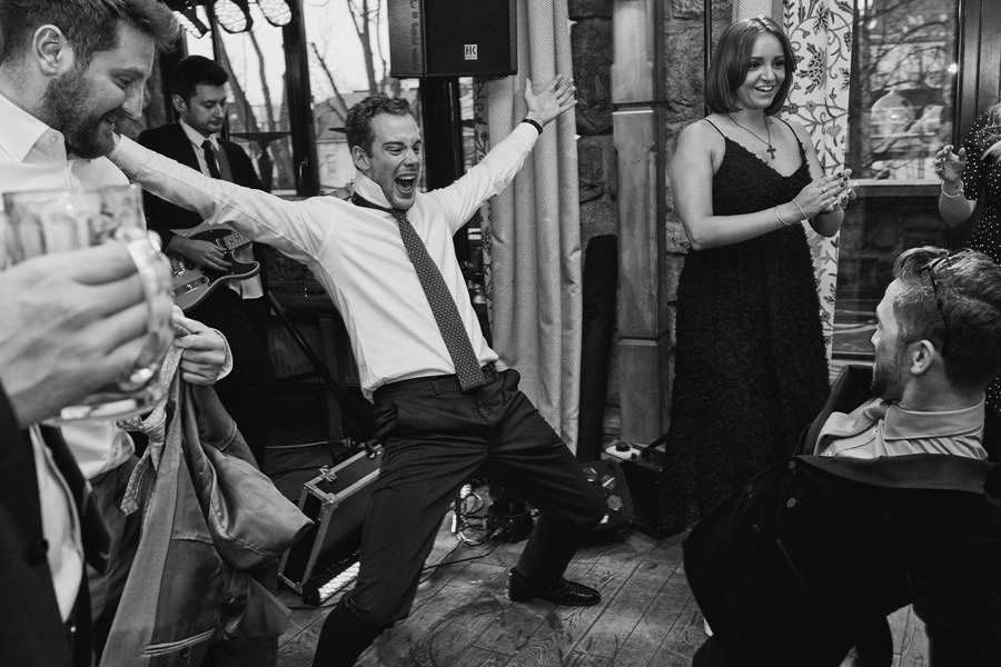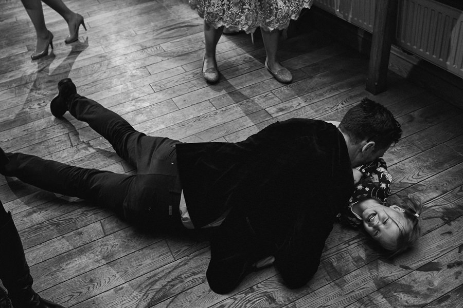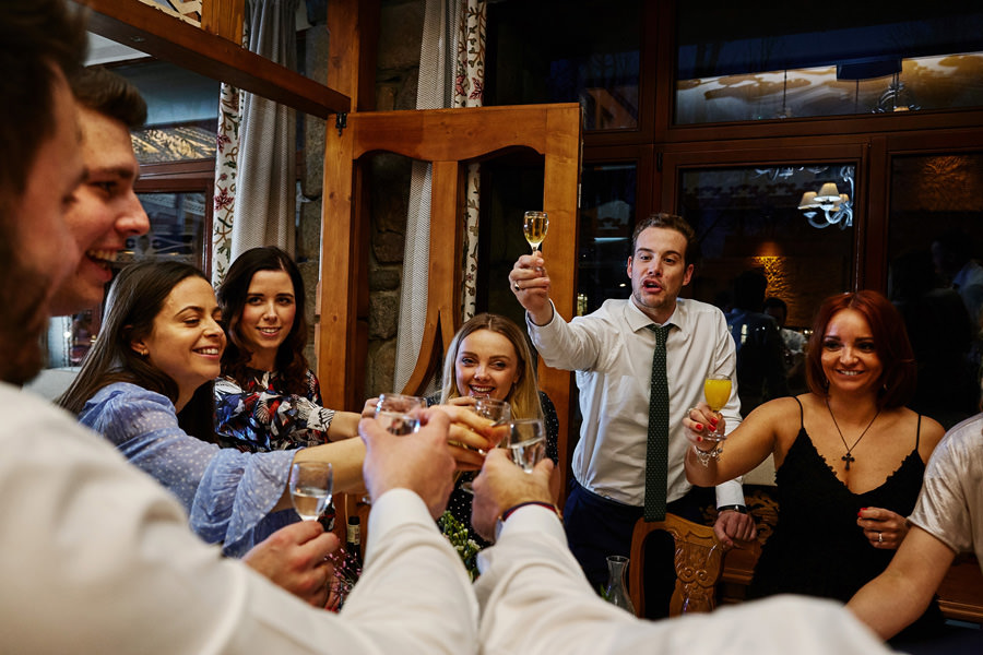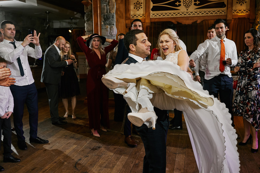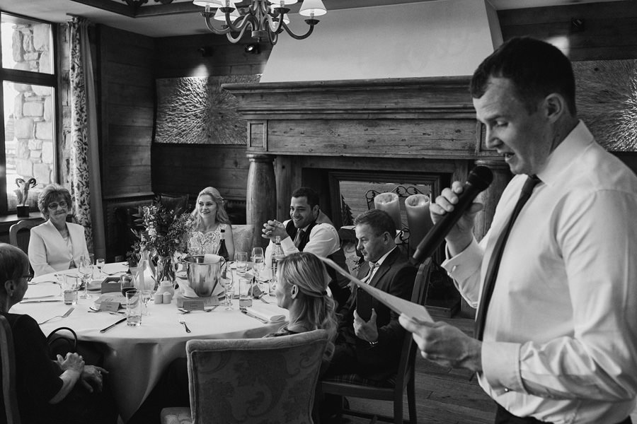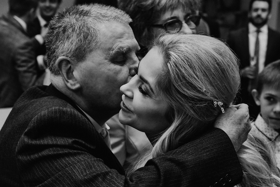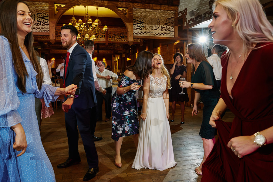 Fotograf ślubny skupia na wielu aspektach wykonując reportaż ślubny. Na głównych bohaterach, czyli Parze Młodej i najbliższych. Na istotnych wydarzeniach, których opisywać nie trzeba. Ale również na rzeczach – detalach, miejscach, krajobrazach, którymi buduje klimat. Ta historia jest jednak inna. Bardzo mocno skupia się na ludziach. Brak widokówek z Tatr, bo lutowa aura pozbawiła nas ich widoku. Nie ma zbyt wielu detali pokazujących miejsce, dekoracje, itp. Jest za to wulkan emocji i absolutna petarda jeśli chodzi o sytuacje i relacje między ludźmi. Każde zdjęcie to mikroopowieść. Nie było tu wytchnienia od „dziania się” :).