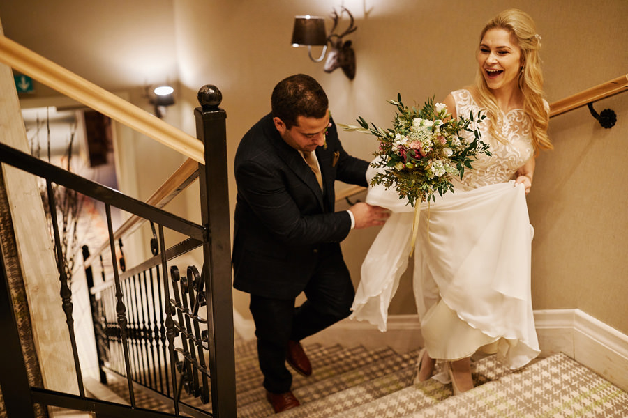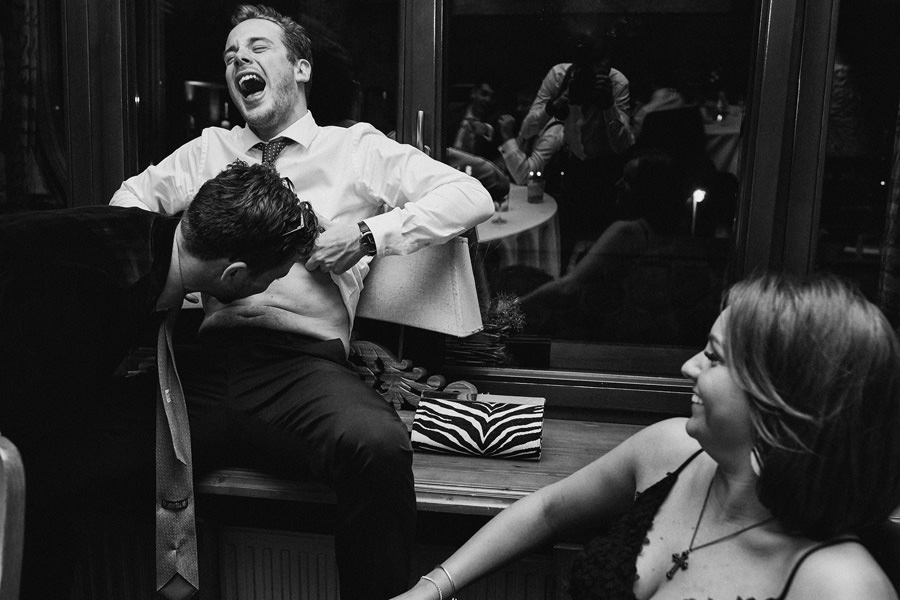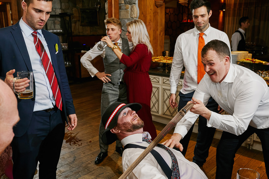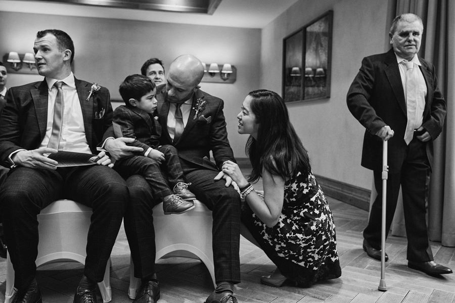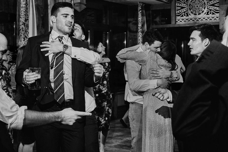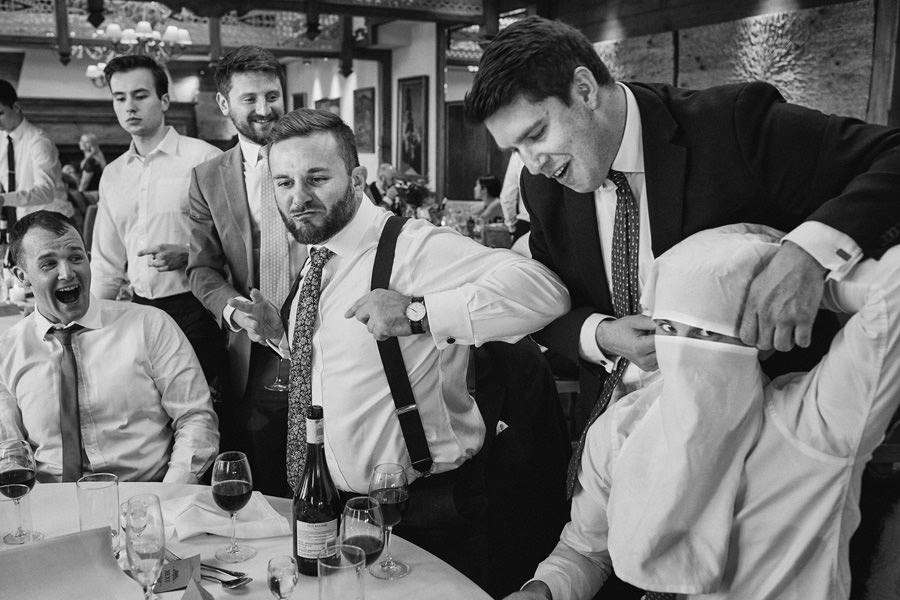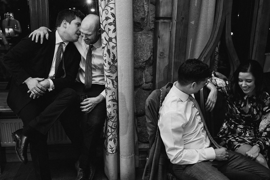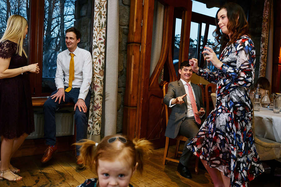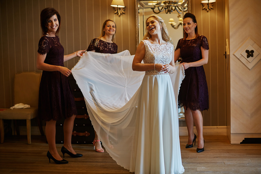 Fotograf ślubny skupia na wielu aspektach wykonując reportaż ślubny. Na głównych bohaterach, czyli Parze Młodej i najbliższych. Na istotnych wydarzeniach, których opisywać nie trzeba. Ale również na rzeczach – detalach, miejscach, krajobrazach, którymi buduje klimat. Ta historia jest jednak inna. Bardzo mocno skupia się na ludziach. Brak widokówek z Tatr, bo lutowa aura pozbawiła nas ich widoku. Nie ma zbyt wielu detali pokazujących miejsce, dekoracje, itp. Jest za to wulkan emocji i absolutna petarda jeśli chodzi o sytuacje i relacje między ludźmi. Każde zdjęcie to mikroopowieść. Nie było tu wytchnienia od „dziania się” :).