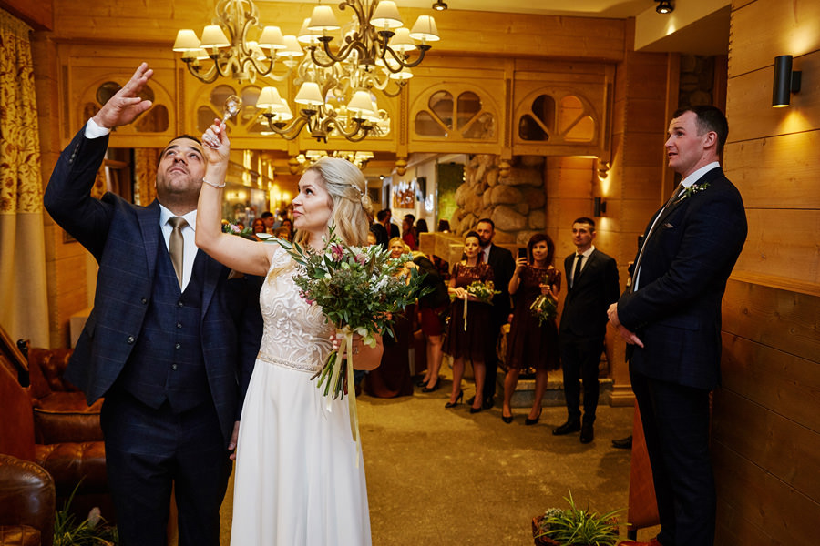 Najciekawsze w pracy fotografa ślubnego jest bycie obserwatorem rozmaitych obyczajów. Polskie obyczaje ślubne i weselne znamy całkiem dobrze. Zwłaszcza te związane z naszym regionem. Ponieważ jednak dużo podróżujemy, również obyczaje w innych częściach Polski nie są nam obce. Jeszcze ciekawiej jednak robi się, kiedy na weselu można obserwować fuzję kultur i obyczajów. Kiedy np. panna młoda od lat mieszka za granicą. Tam buduje przyjaźnie, tam się zakochuje. Jednak sercem związana jest z Polską i tu pragnie wziąć ślub. Chce też pokazać swój kraj wybrankowi i przyjaciołom. Polskę – w jednym z jej najbardziej charakterystycznych regionów – czyli Tatry i Zakopane. Dlatego właśnie zdecydowali się na wesele w Hotelu Aries w Zakopanem.